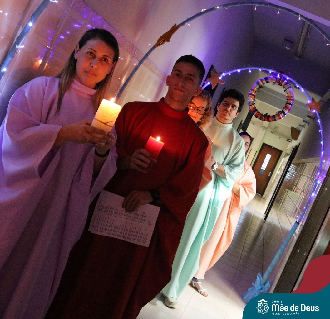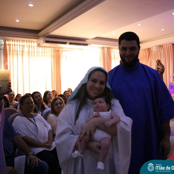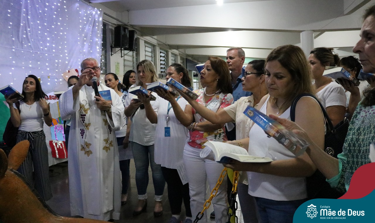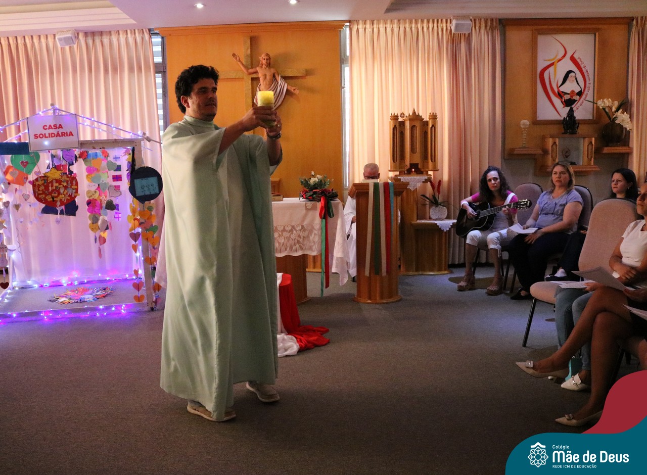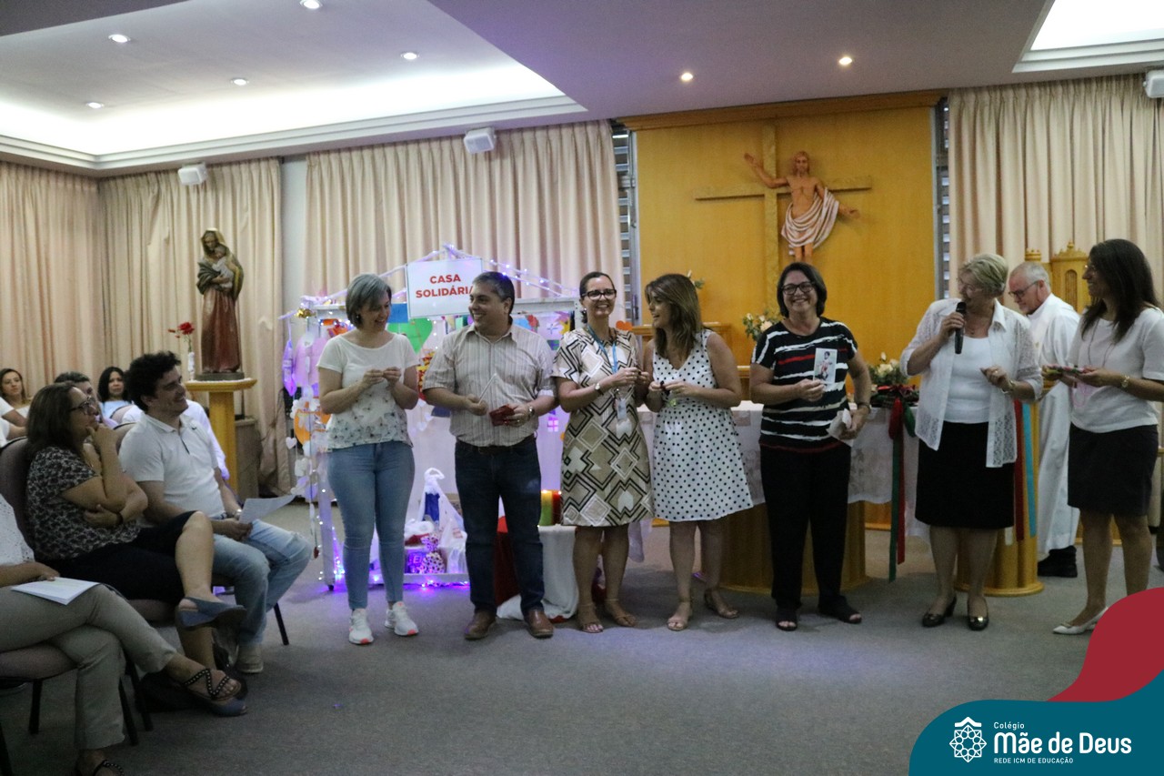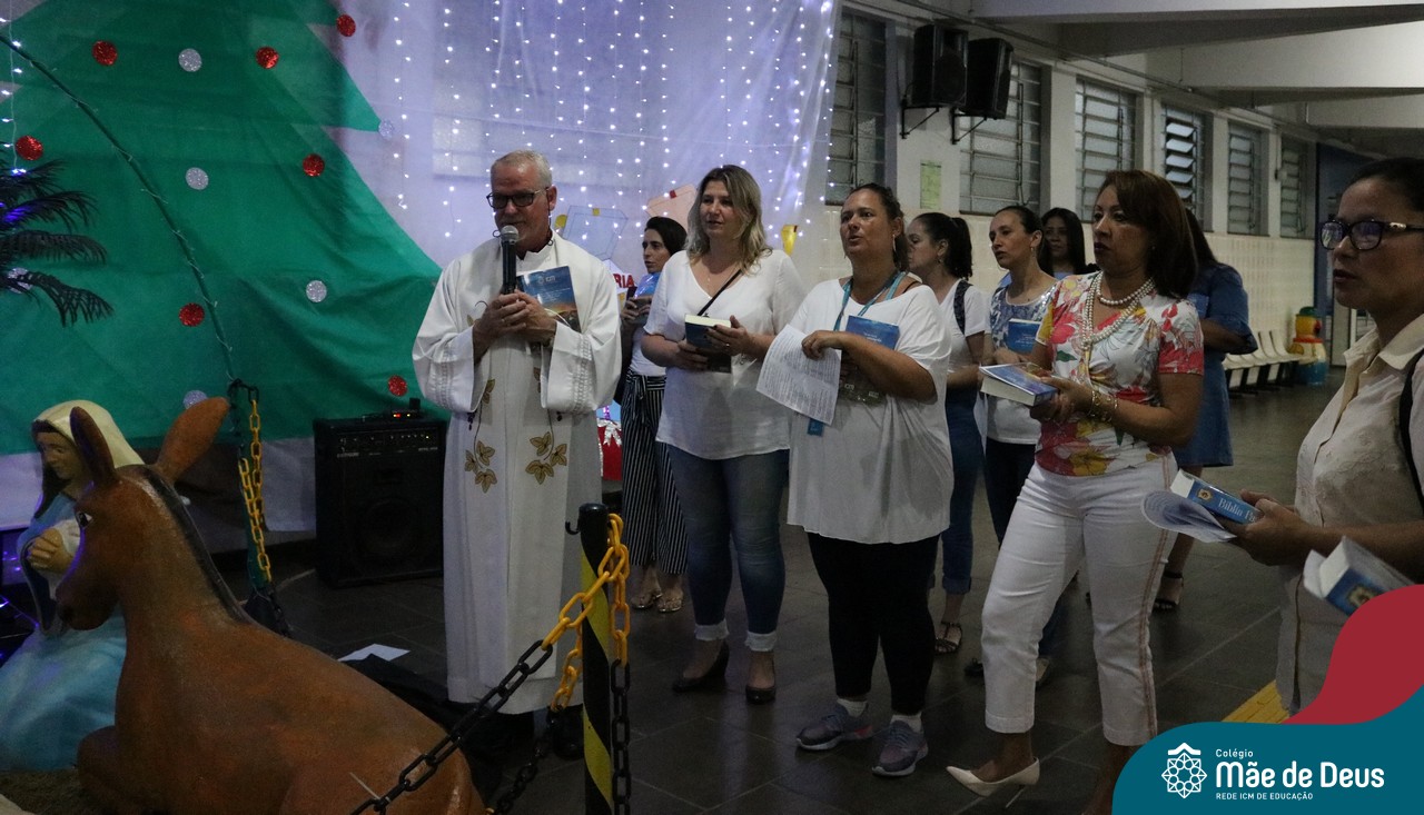 Foi com este espírito de acolhida alegre e generosa ao Deus Meninos que vem até nós, fazendo-se Luz, que no dia 11 de dezembro a comunidade dos educadores do Colégio Mãe de Deus celebrou a preparação para o Natal. Foi um momento de gratidão pelo ano vivido e pelas pessoas que são luz no nosso caminhar. A celebração foi presidida pelo Pe. Edson, que recordou as palavras do Papa Francisco, destacando 03 atitudes: para o passado gratidão, para o futuro esperança e para o presente paixão. A presença de uma família, representando a família de Nazaré,  recordou a fragilidade de Deus encarnado na humanidade e emocionou a todos. Os educadores também ofertaram , como gesto solidário de Natal, produtos de higiene pessoal, que serão doados ao Amparo Santa Cruz- Idosos. Cada um/a recebeu uma bíblia de presente de Natal e, após, confraternizou-se num clima de amizade e alegria.