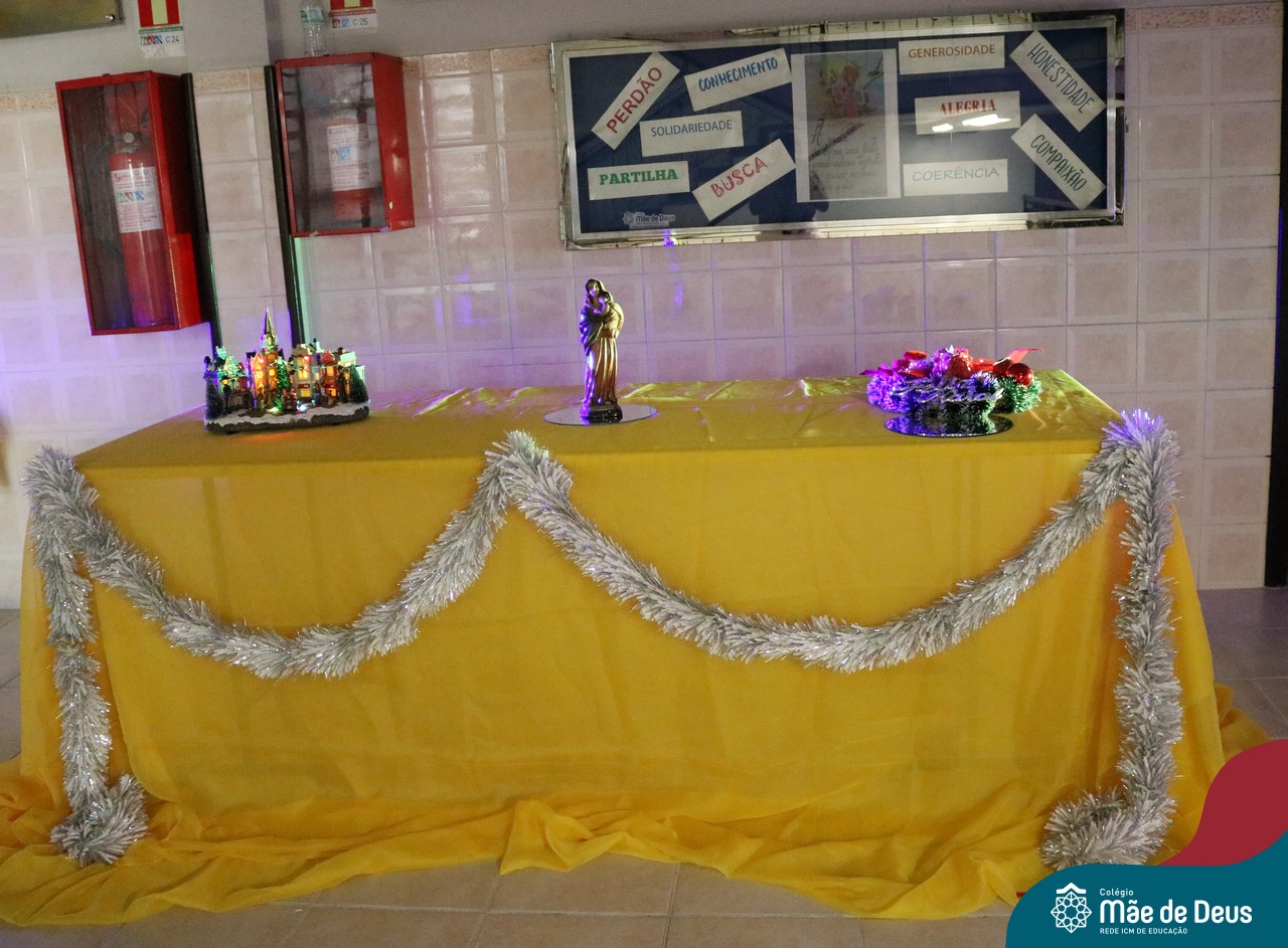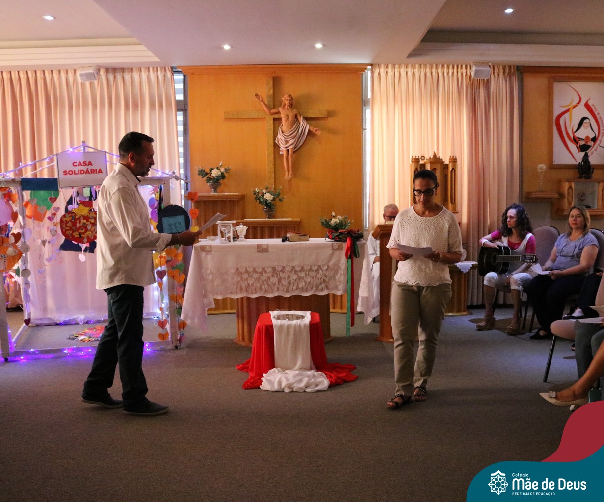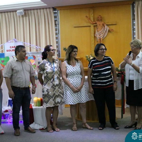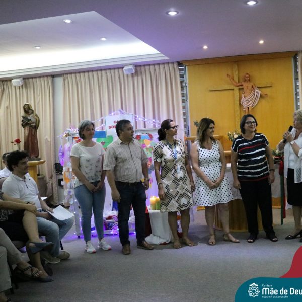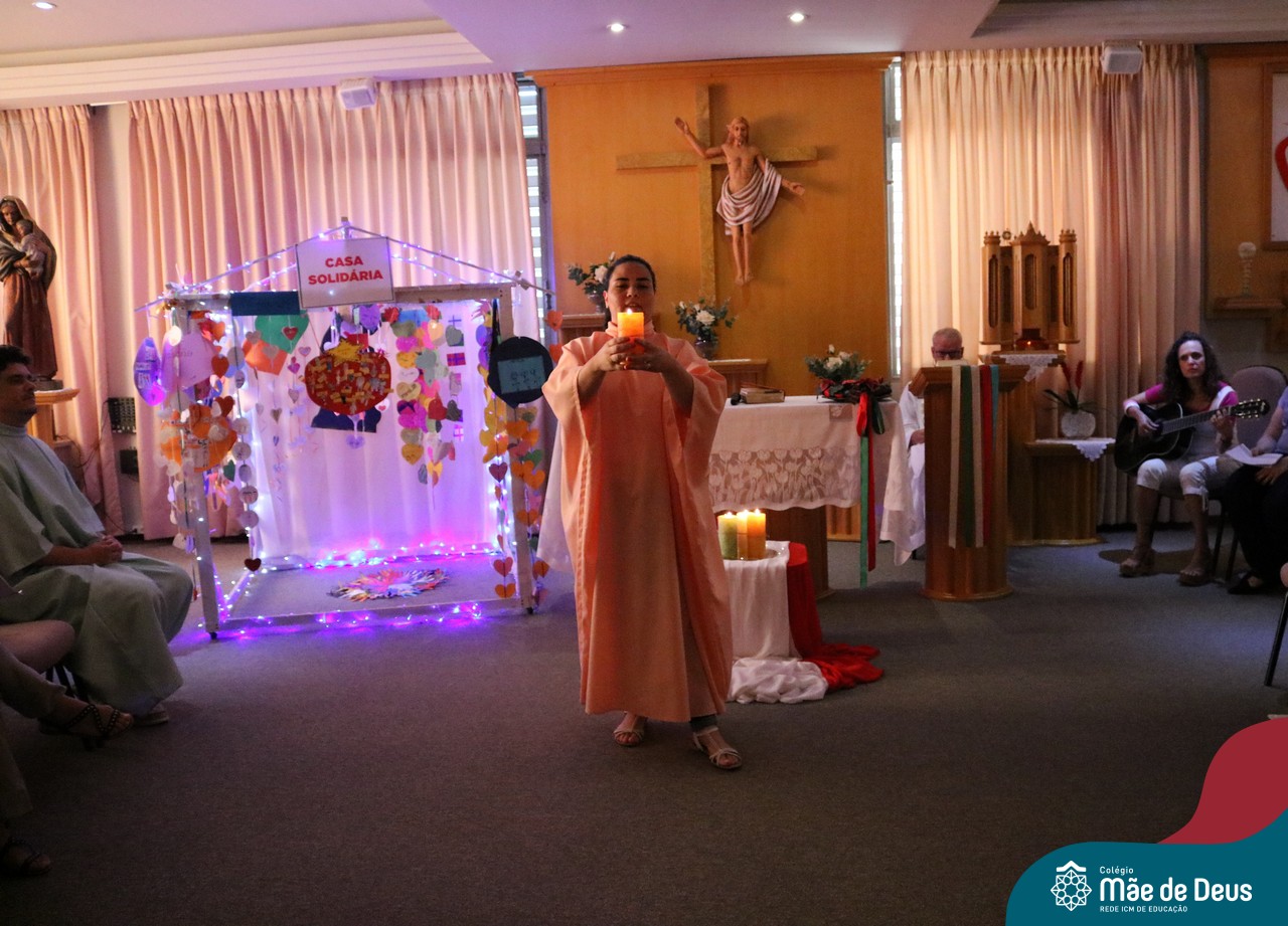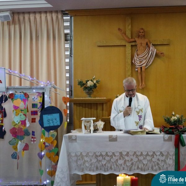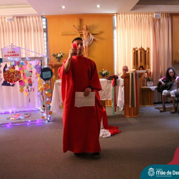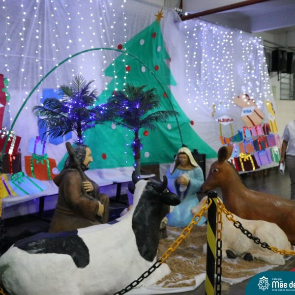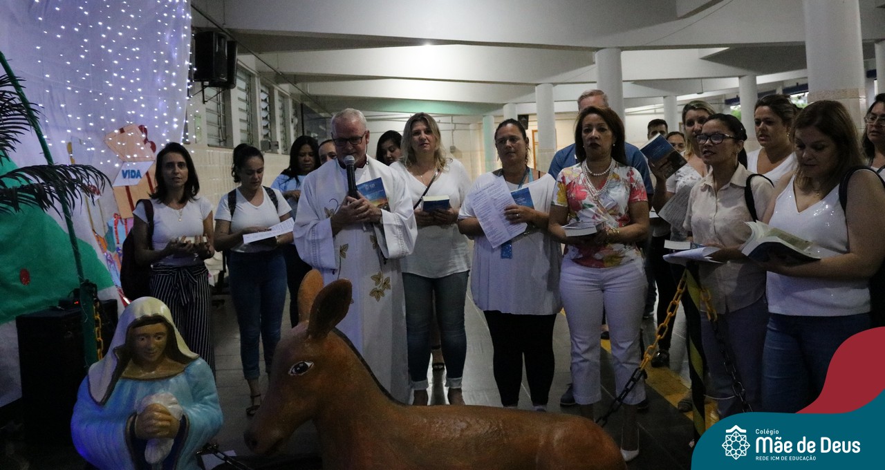 Foi com este espírito de acolhida alegre e generosa ao Deus Meninos que vem até nós, fazendo-se Luz, que no dia 11 de dezembro a comunidade dos educadores do Colégio Mãe de Deus celebrou a preparação para o Natal. Foi um momento de gratidão pelo ano vivido e pelas pessoas que são luz no nosso caminhar. A celebração foi presidida pelo Pe. Edson, que recordou as palavras do Papa Francisco, destacando 03 atitudes: para o passado gratidão, para o futuro esperança e para o presente paixão. A presença de uma família, representando a família de Nazaré,  recordou a fragilidade de Deus encarnado na humanidade e emocionou a todos. Os educadores também ofertaram , como gesto solidário de Natal, produtos de higiene pessoal, que serão doados ao Amparo Santa Cruz- Idosos. Cada um/a recebeu uma bíblia de presente de Natal e, após, confraternizou-se num clima de amizade e alegria.