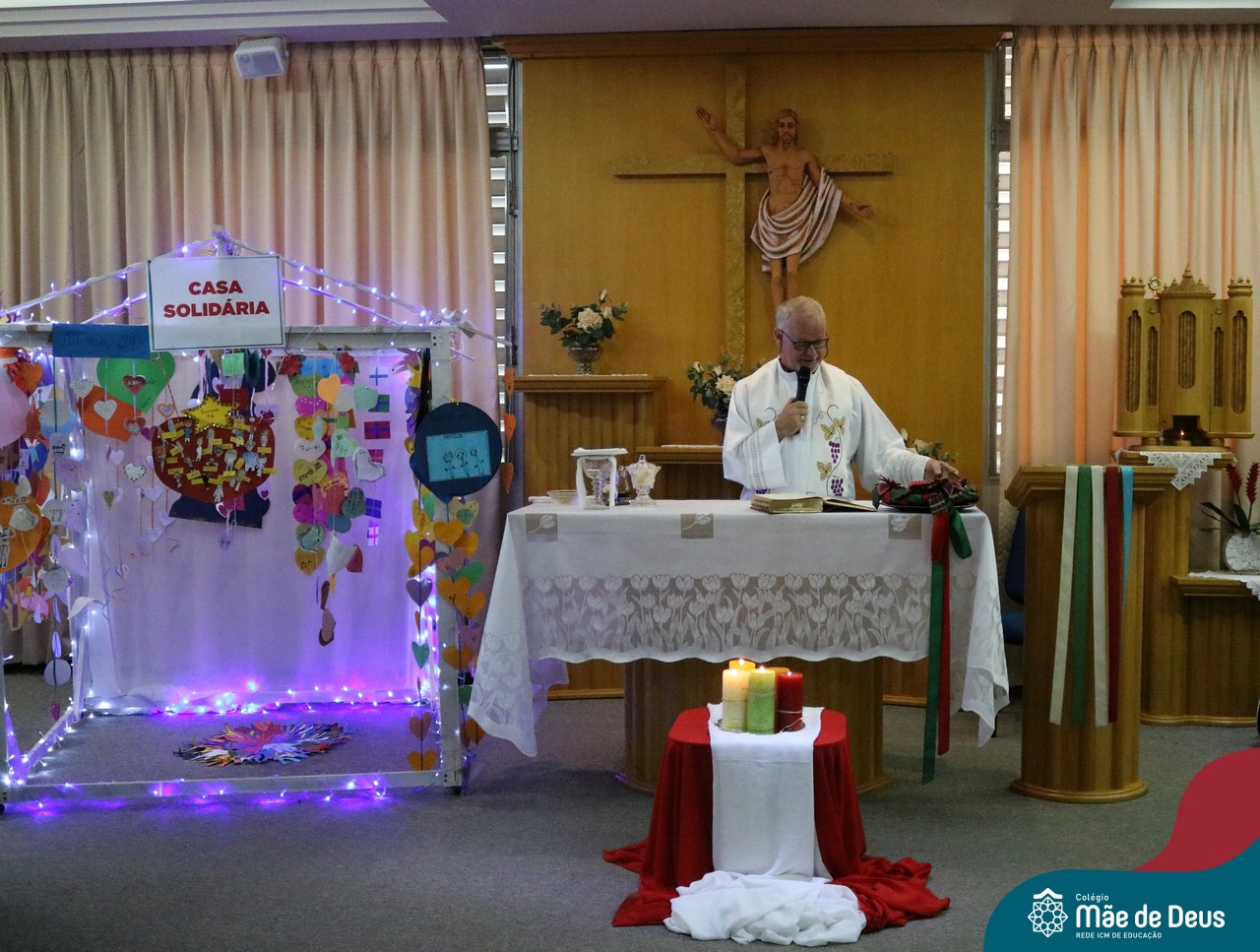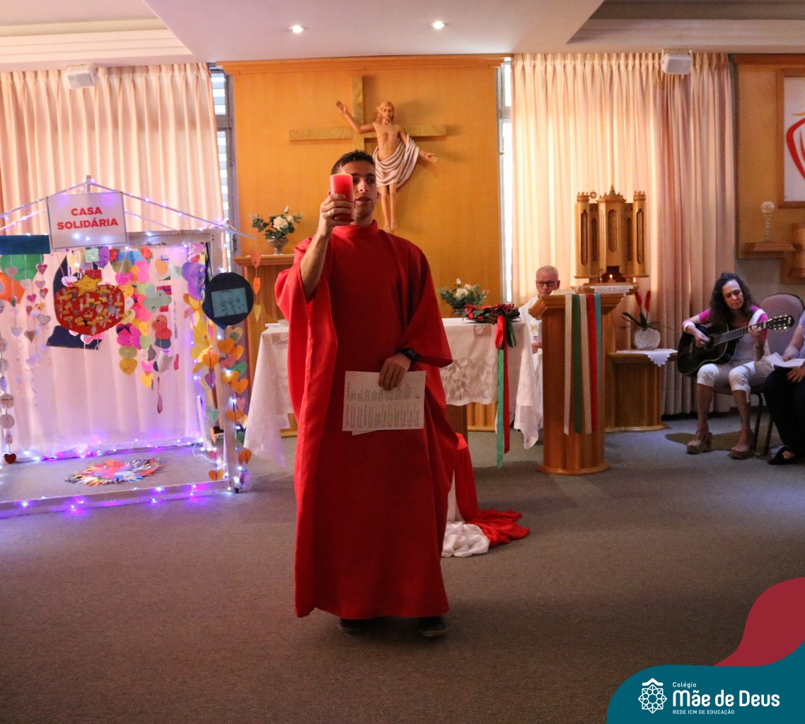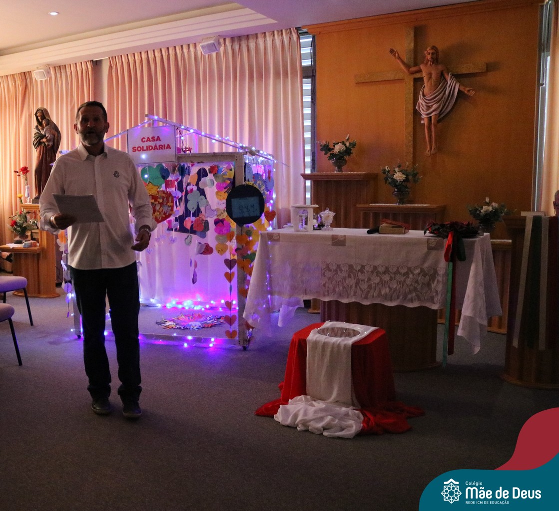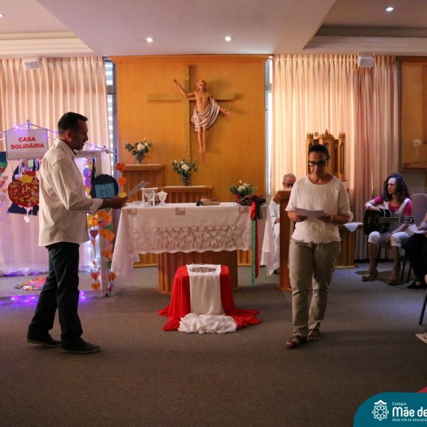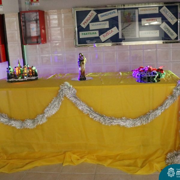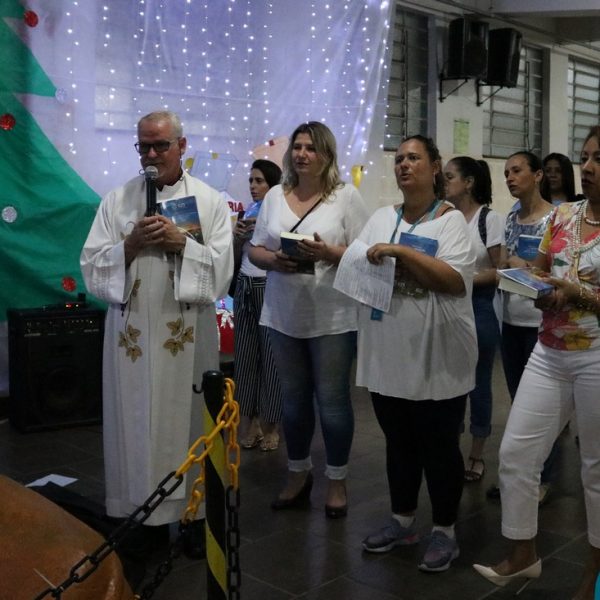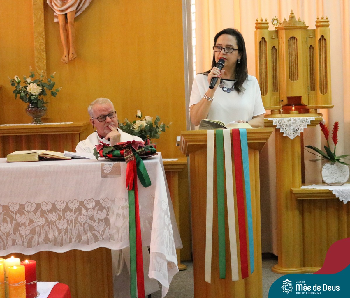 Foi com este espírito de acolhida alegre e generosa ao Deus Meninos que vem até nós, fazendo-se Luz, que no dia 11 de dezembro a comunidade dos educadores do Colégio Mãe de Deus celebrou a preparação para o Natal. Foi um momento de gratidão pelo ano vivido e pelas pessoas que são luz no nosso caminhar. A celebração foi presidida pelo Pe. Edson, que recordou as palavras do Papa Francisco, destacando 03 atitudes: para o passado gratidão, para o futuro esperança e para o presente paixão. A presença de uma família, representando a família de Nazaré,  recordou a fragilidade de Deus encarnado na humanidade e emocionou a todos. Os educadores também ofertaram , como gesto solidário de Natal, produtos de higiene pessoal, que serão doados ao Amparo Santa Cruz- Idosos. Cada um/a recebeu uma bíblia de presente de Natal e, após, confraternizou-se num clima de amizade e alegria.