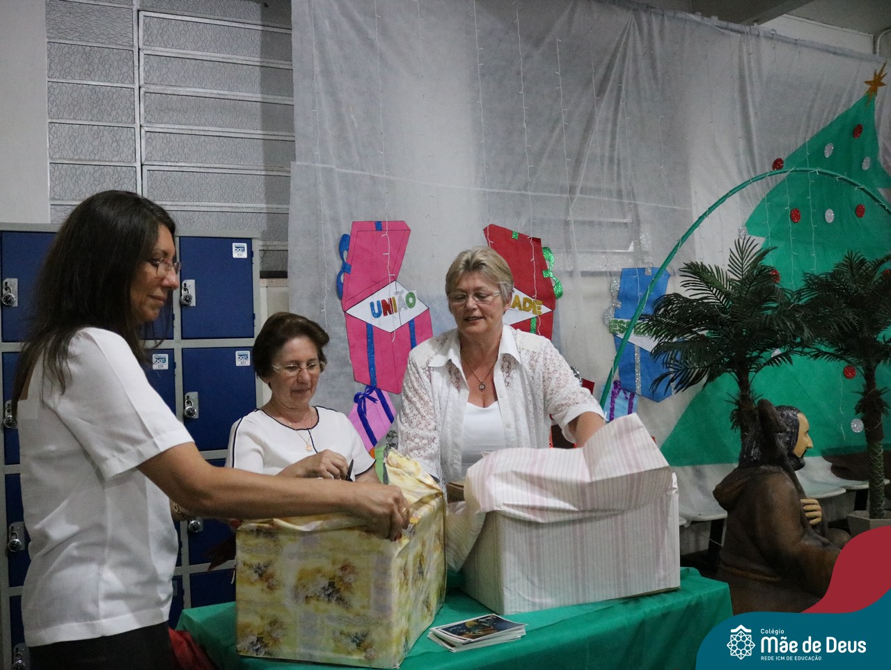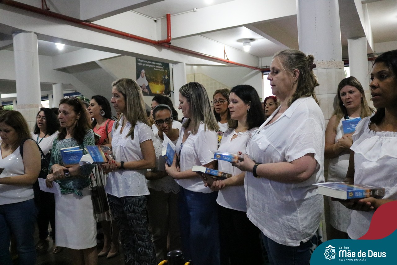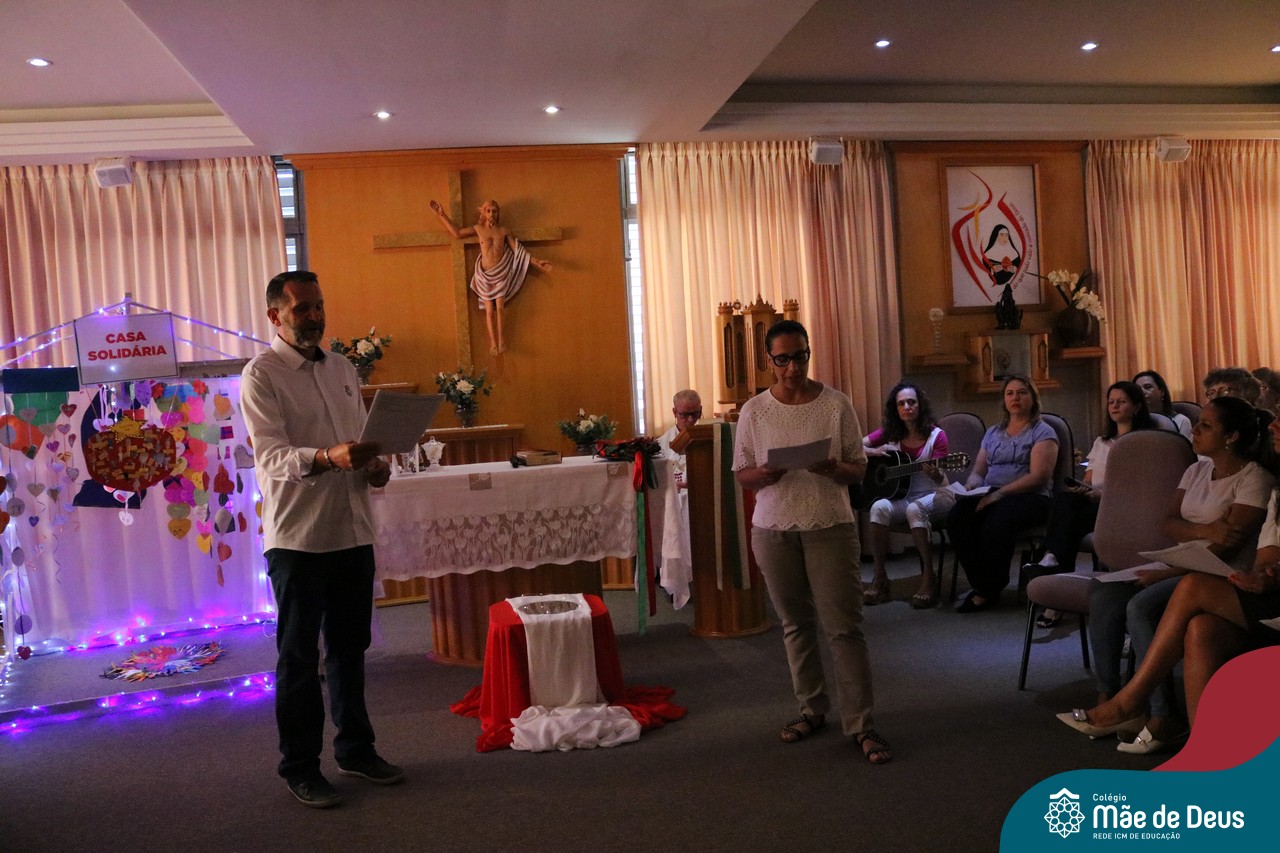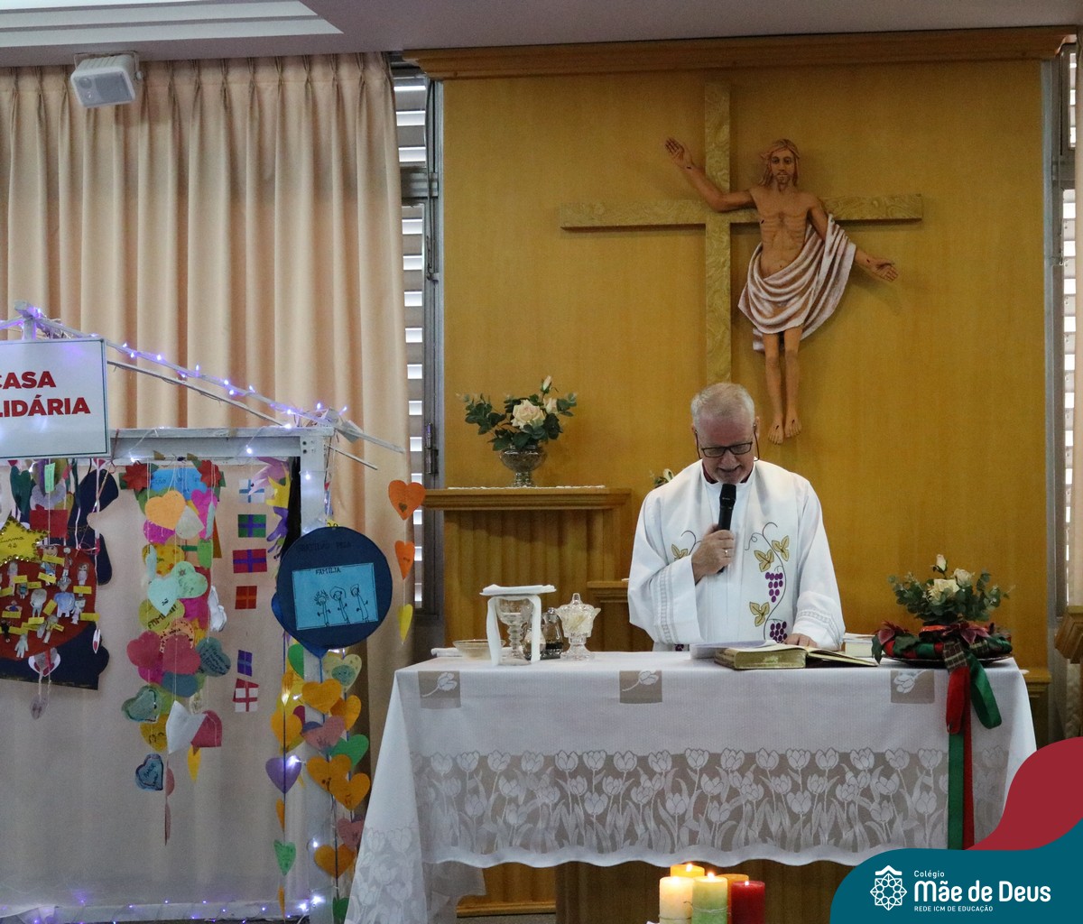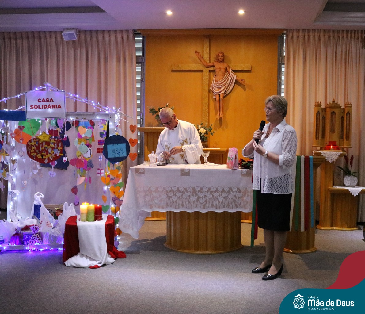 Foi com este espírito de acolhida alegre e generosa ao Deus Meninos que vem até nós, fazendo-se Luz, que no dia 11 de dezembro a comunidade dos educadores do Colégio Mãe de Deus celebrou a preparação para o Natal. Foi um momento de gratidão pelo ano vivido e pelas pessoas que são luz no nosso caminhar. A celebração foi presidida pelo Pe. Edson, que recordou as palavras do Papa Francisco, destacando 03 atitudes: para o passado gratidão, para o futuro esperança e para o presente paixão. A presença de uma família, representando a família de Nazaré,  recordou a fragilidade de Deus encarnado na humanidade e emocionou a todos. Os educadores também ofertaram , como gesto solidário de Natal, produtos de higiene pessoal, que serão doados ao Amparo Santa Cruz- Idosos. Cada um/a recebeu uma bíblia de presente de Natal e, após, confraternizou-se num clima de amizade e alegria.