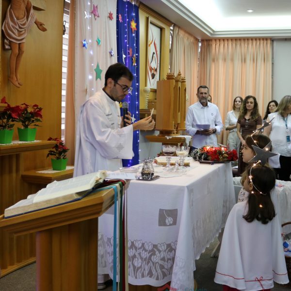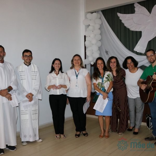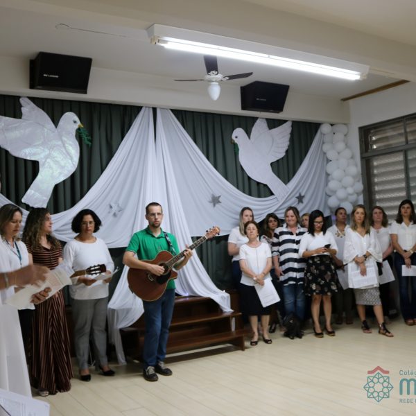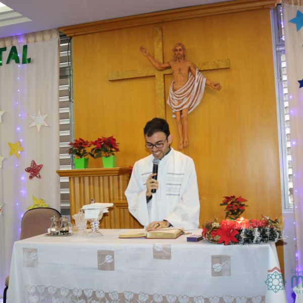 No dia 12 de dezembro foi realizada uma bonita Celebração de Natal com os educadores do Colégio. Ao término de um ano letivo, muitos motivos os fizeram agradecer: superações, alegrias, dores, ressignificações, dons partilhados, frustrações e conquistas. Tudo isso fez a comunidade educativa parar e contemplar o Deus Menino que vem para renovar a esperança e a paz, na certeza da grande missão de educar com amor.