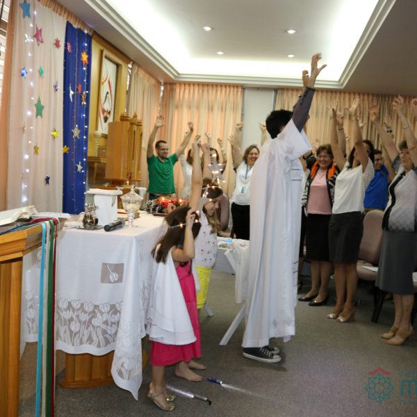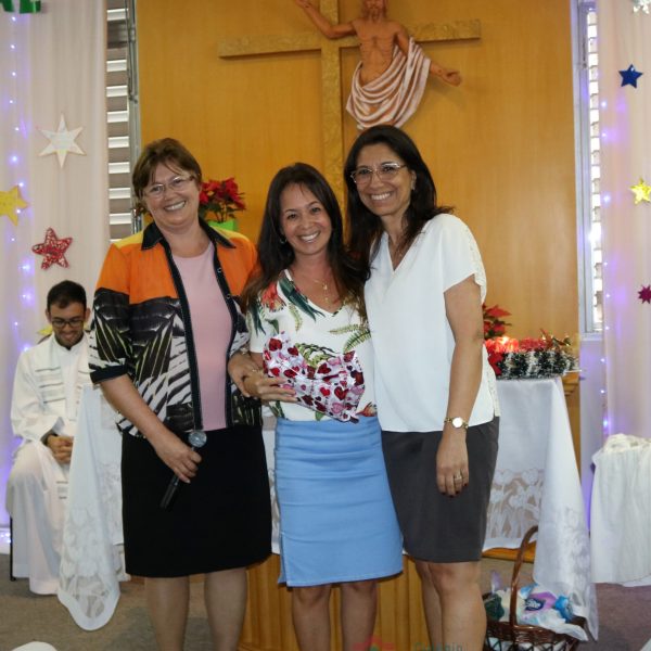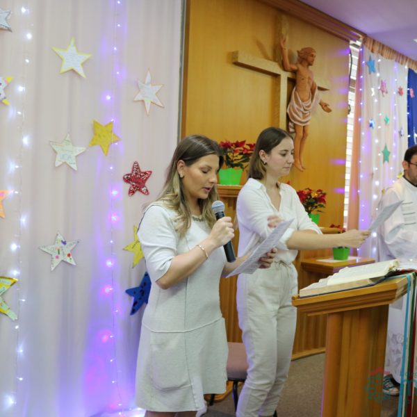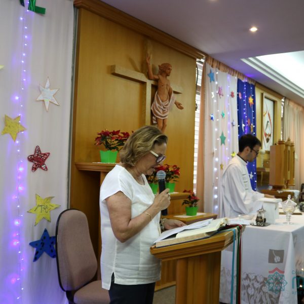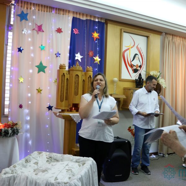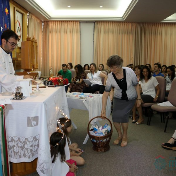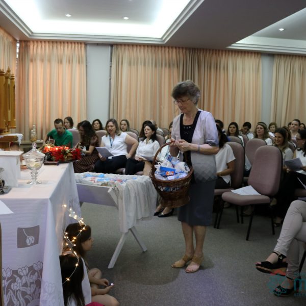Um dos momentos fortes foi quando os educadores depositaram suas estrelas na manjedoura, com seus pedidos de ação de graças e de luzes para suas vidas. No momento do ofertório, todos depositaram seu gesto concreto de Natal: produtos de higiene que foram doados para o Educandário São João Batista.