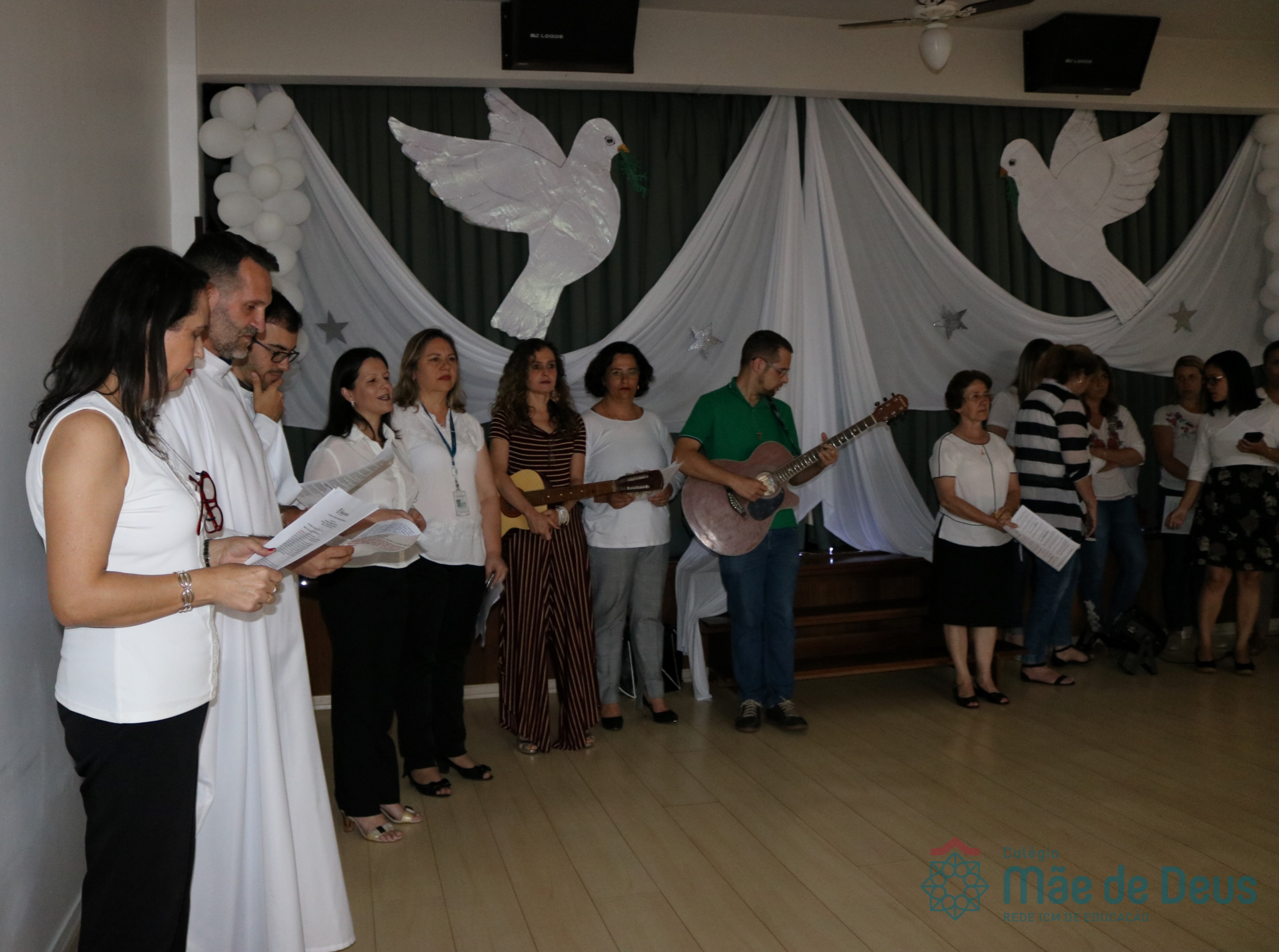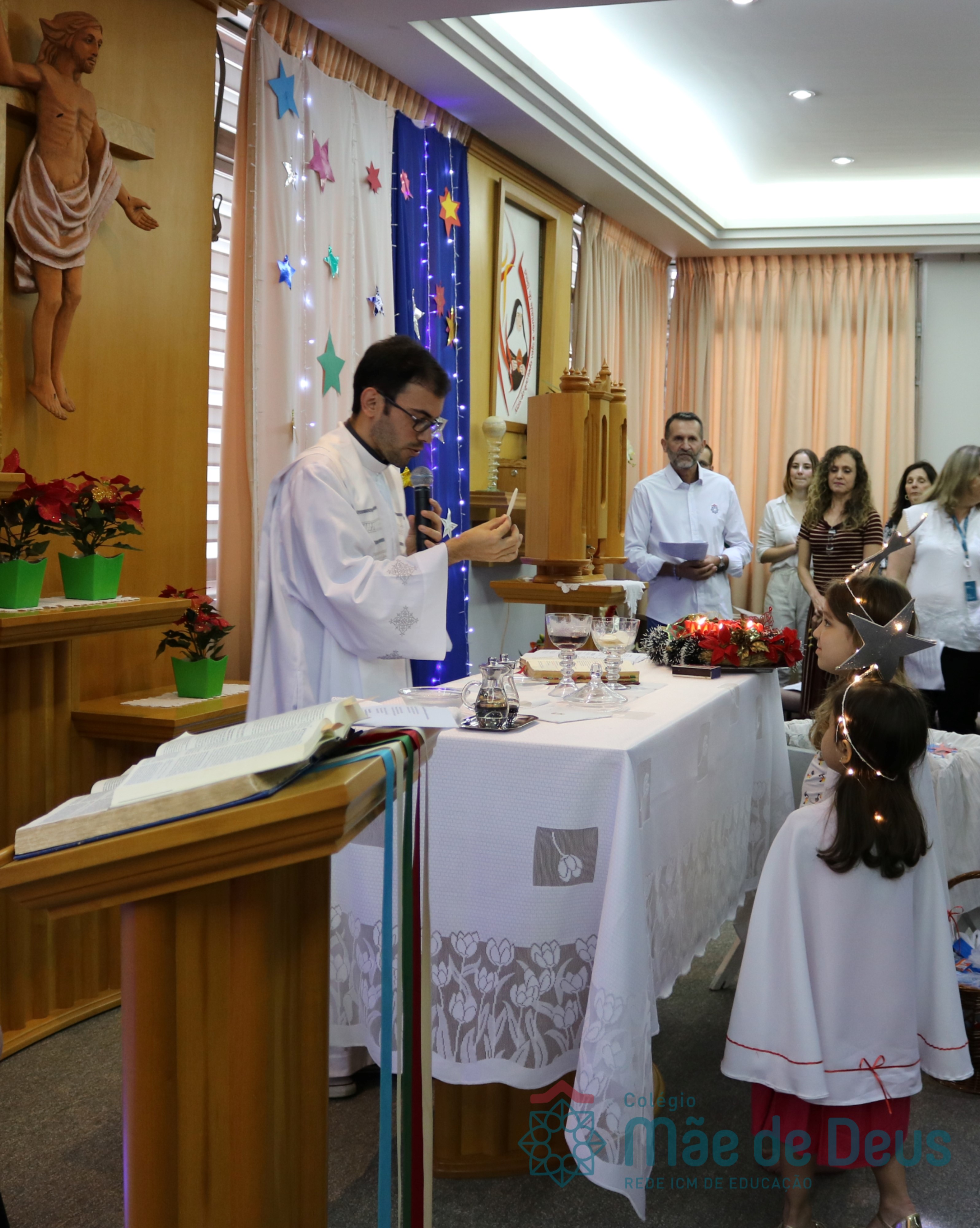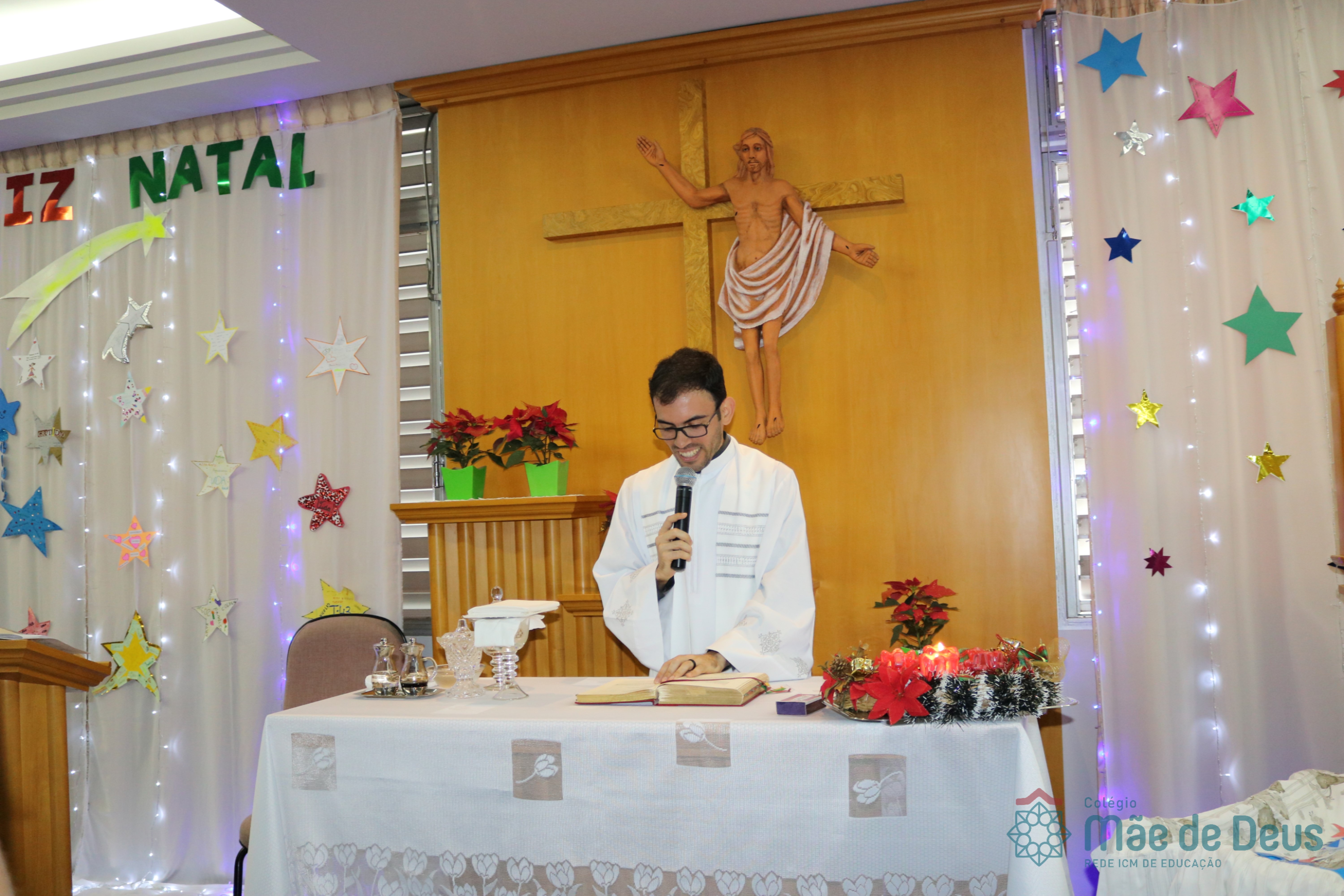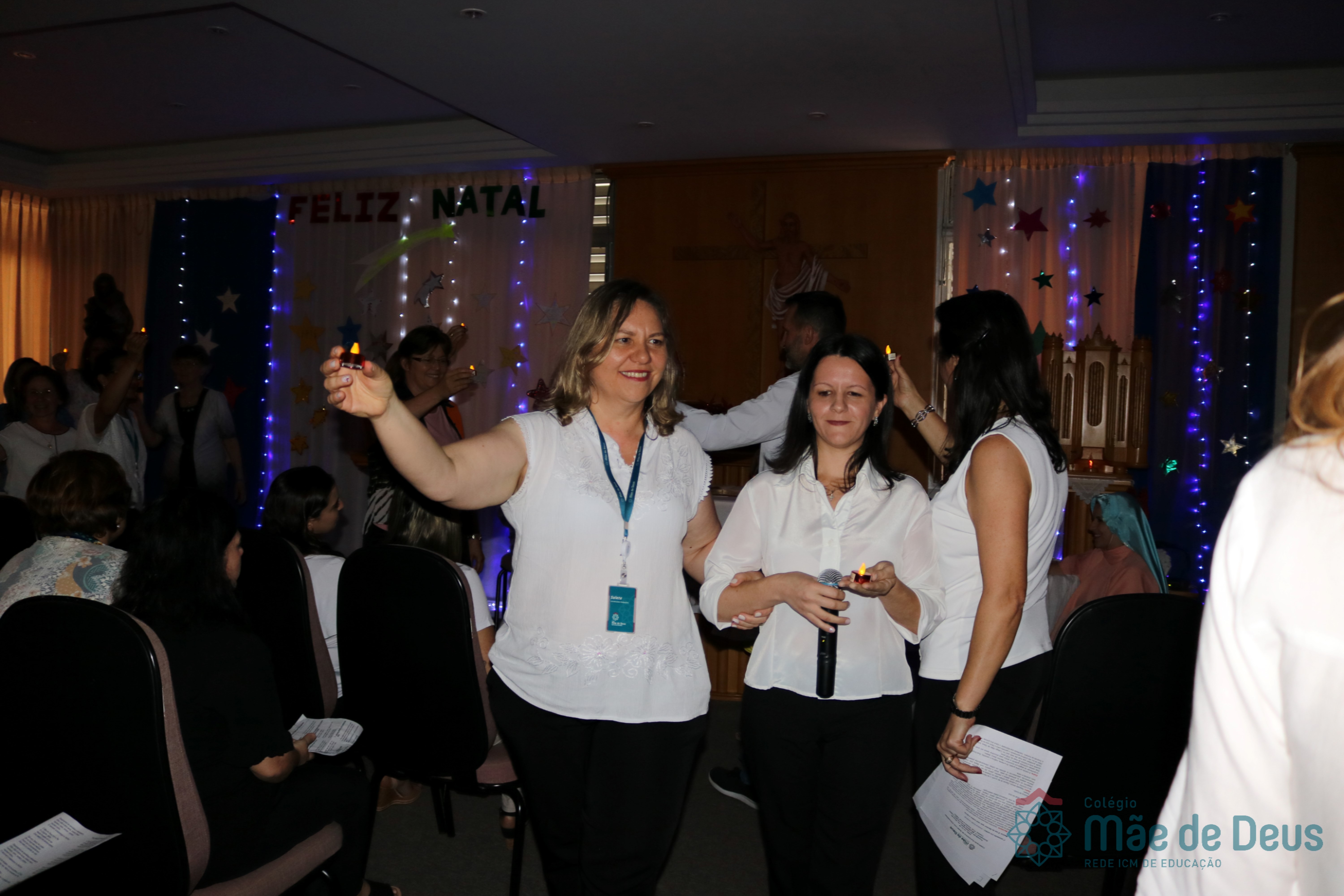 No dia 12 de dezembro foi realizada uma bonita Celebração de Natal com os educadores do Colégio. Ao término de um ano letivo, muitos motivos os fizeram agradecer: superações, alegrias, dores, ressignificações, dons partilhados, frustrações e conquistas. Tudo isso fez a comunidade educativa parar e contemplar o Deus Menino que vem para renovar a esperança e a paz, na certeza da grande missão de educar com amor.