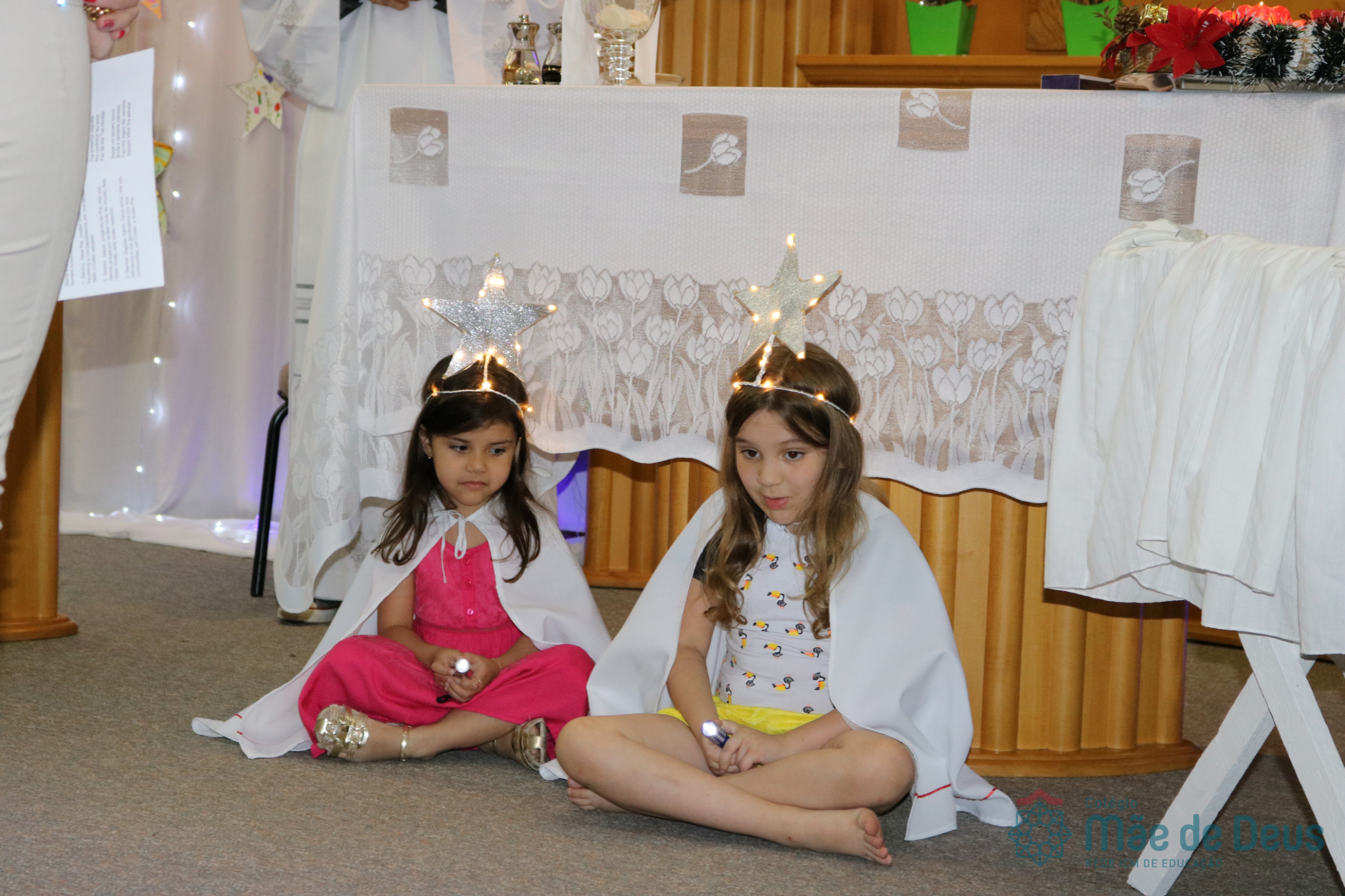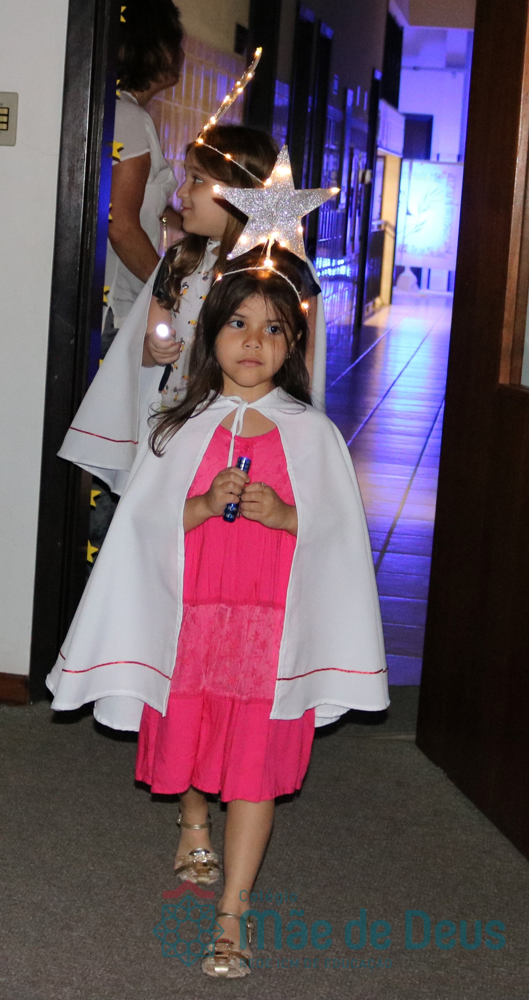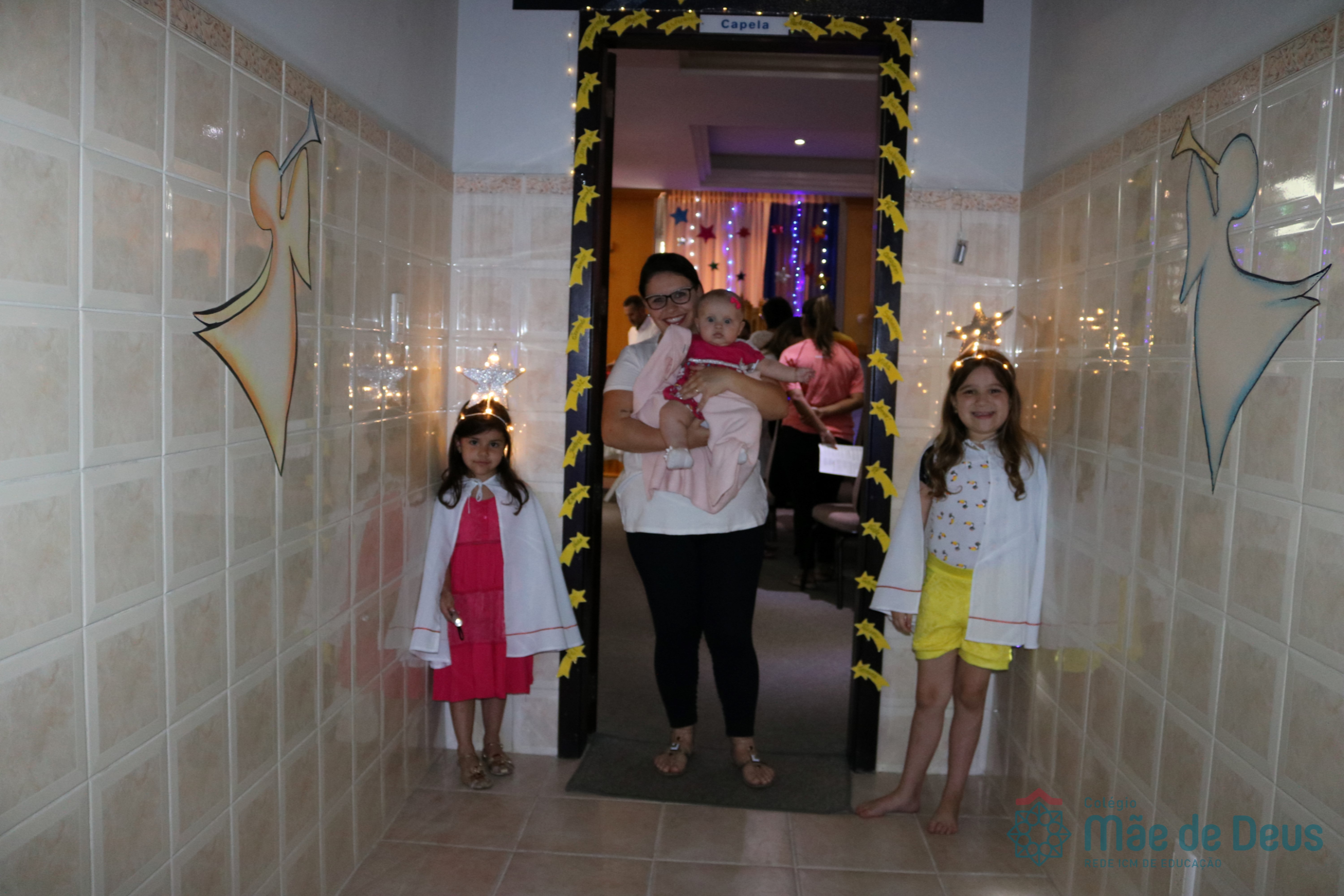 Iniciando a Celebração Eucarística, presidida pelo Pe. Ricardo da Silva, foram acolhidas duas crianças simbolizando a estrela do Natal que levaram o grupo até a capela, onde continuou-se a celebração.