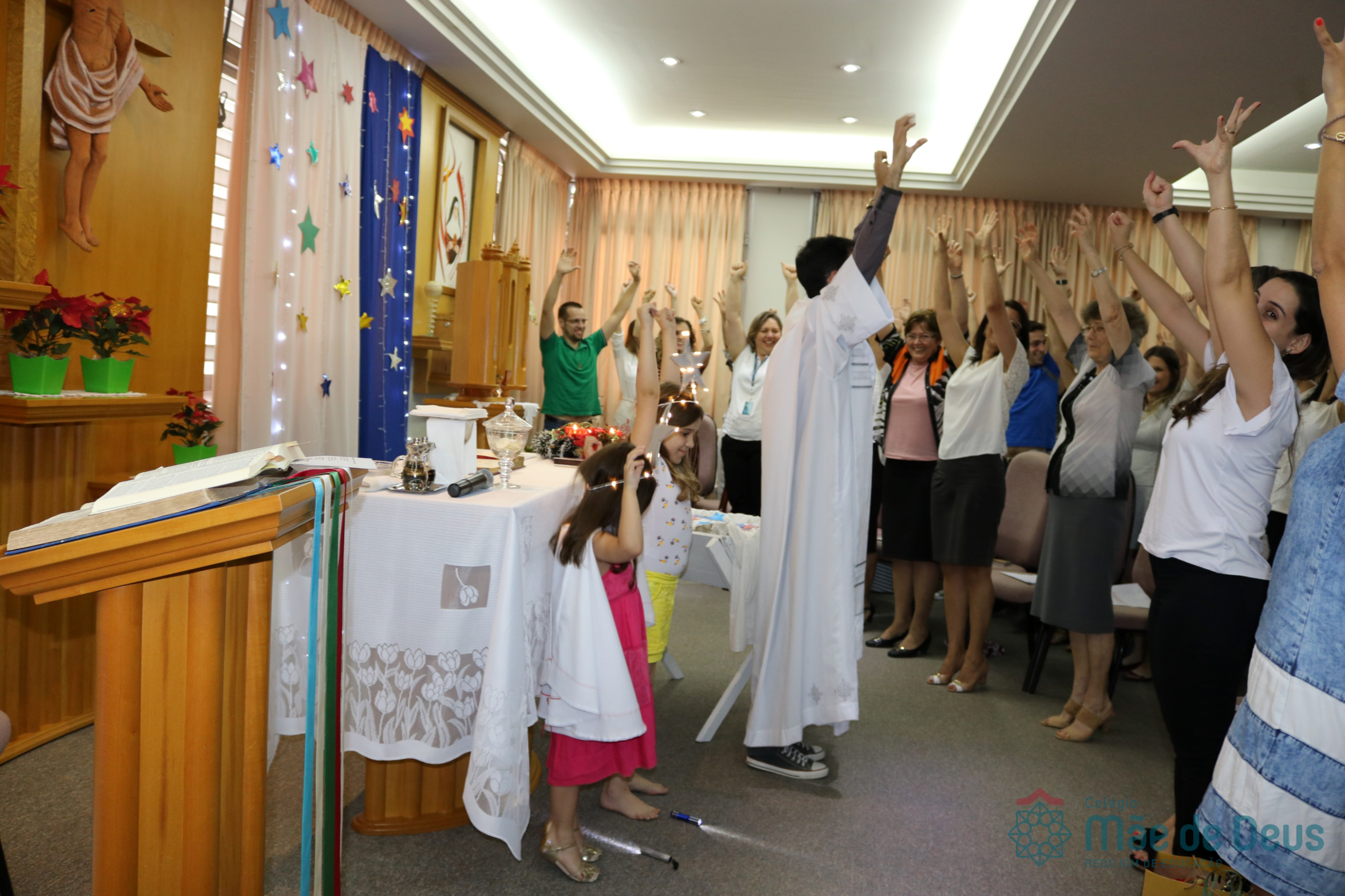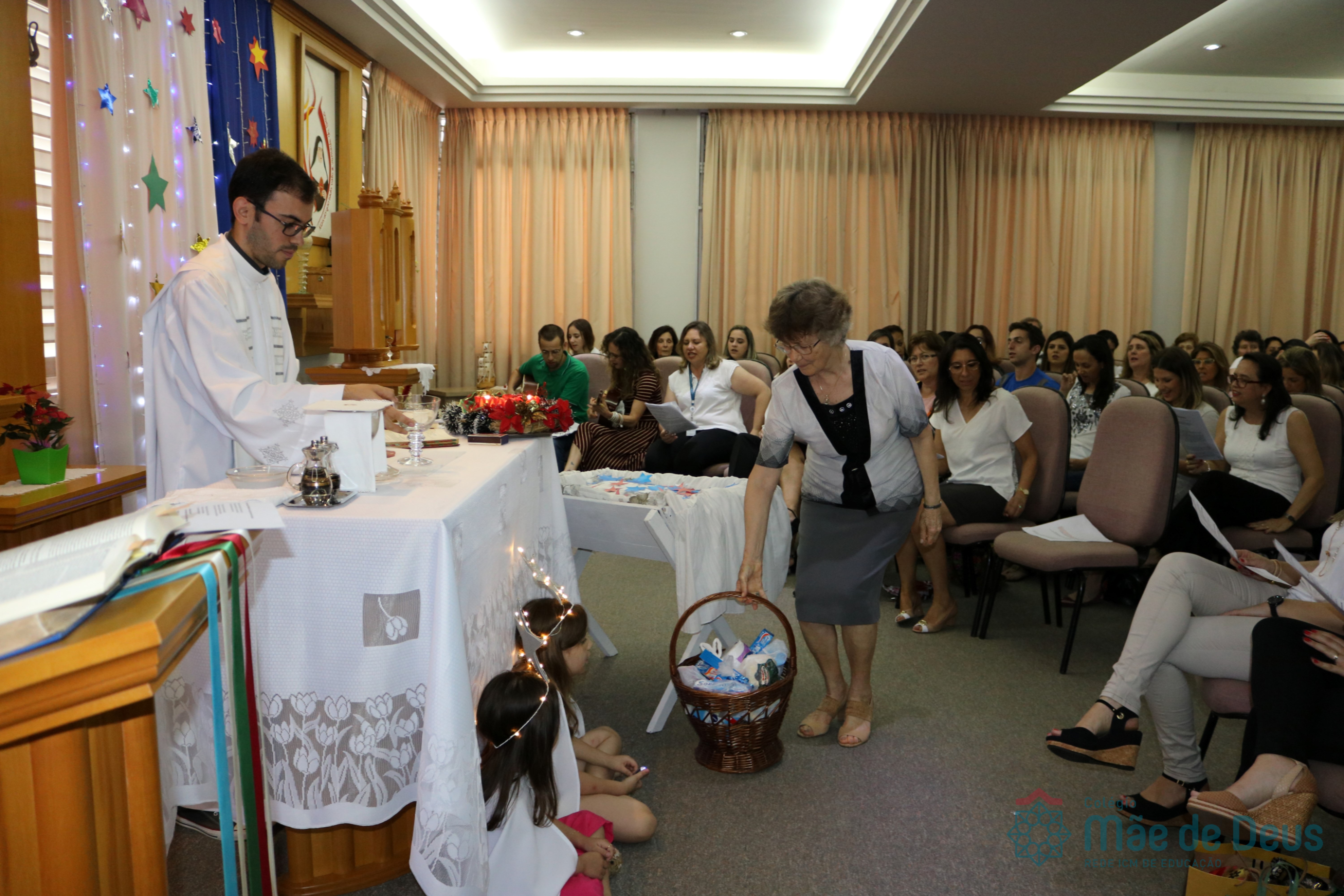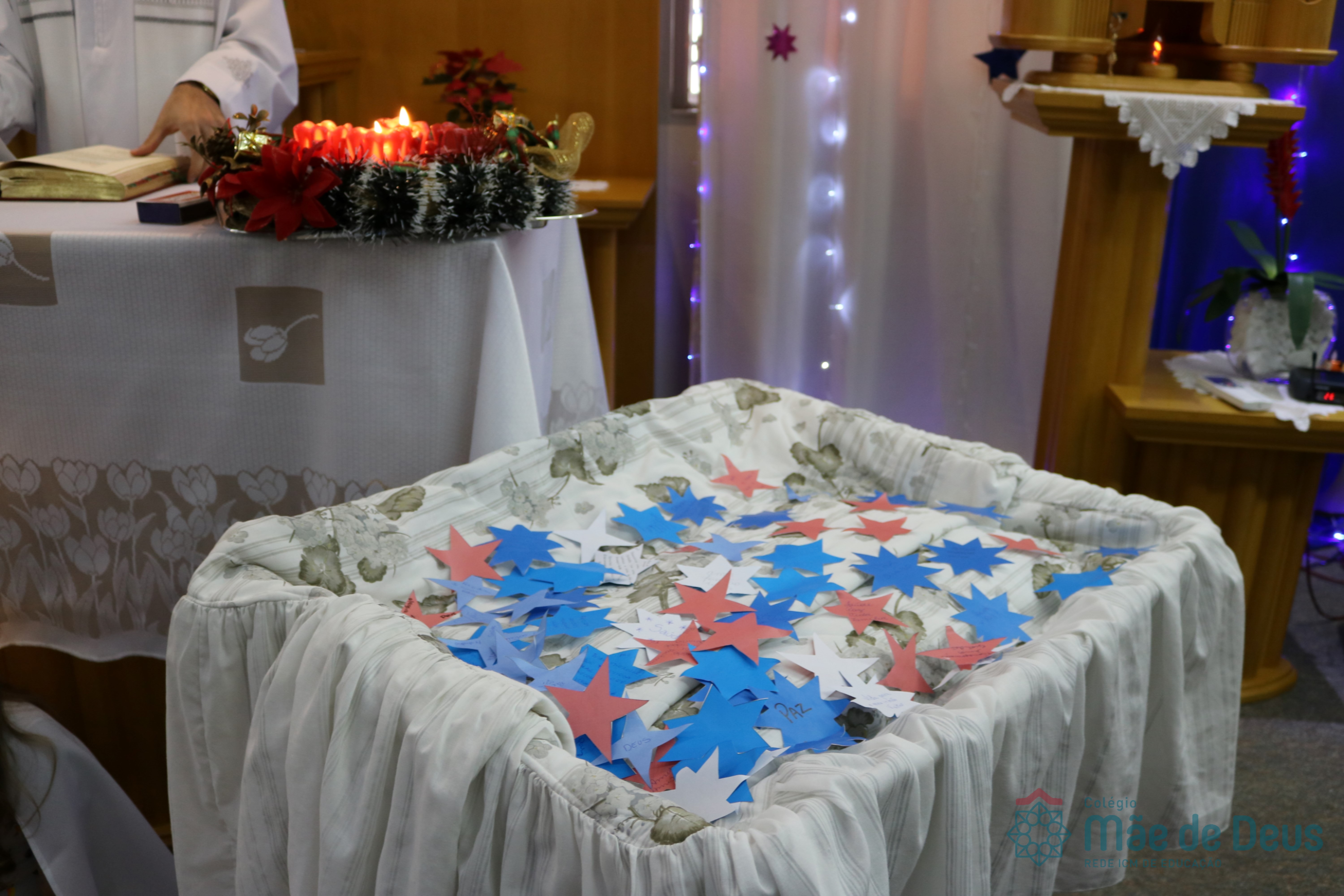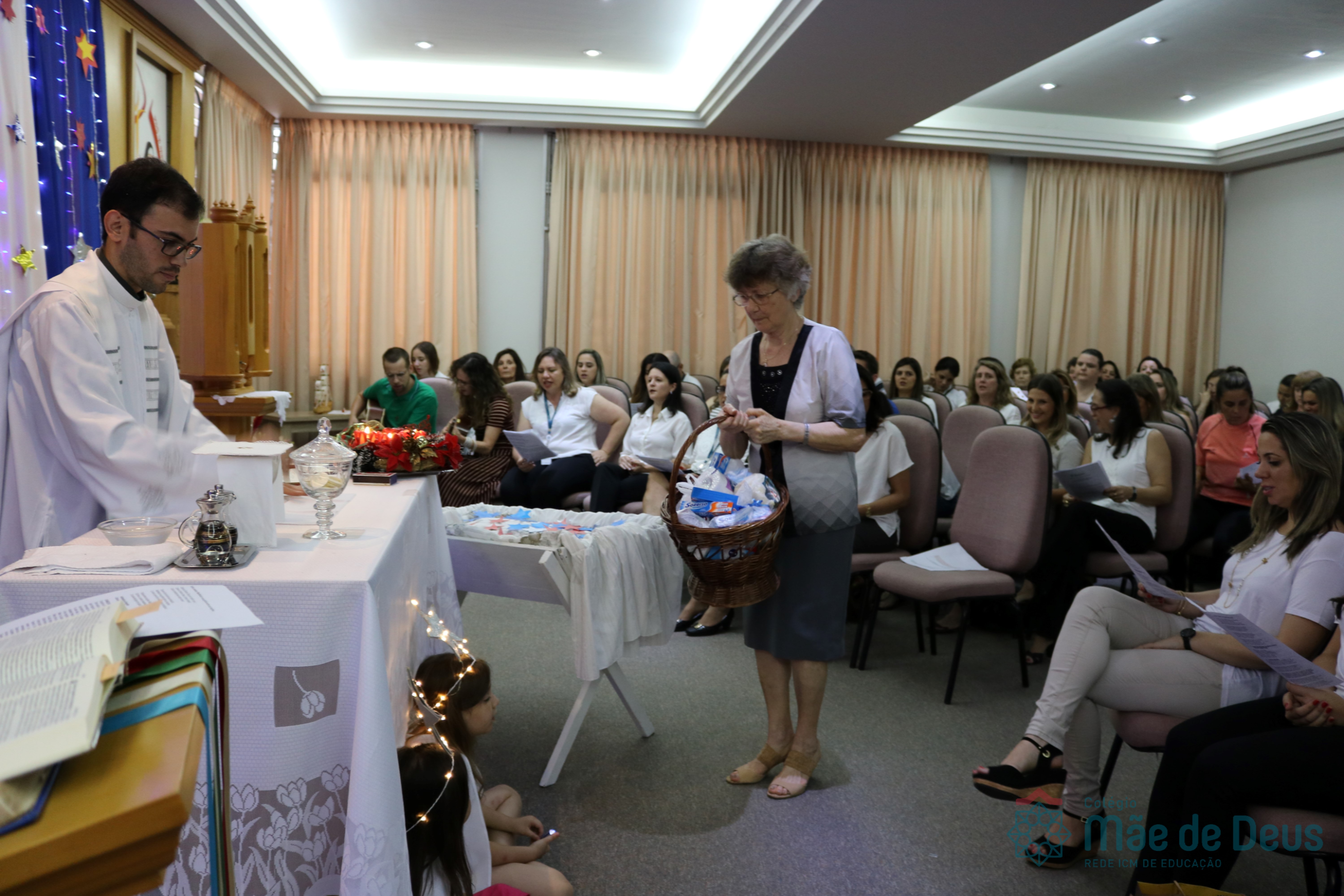 Um dos momentos fortes foi quando os educadores depositaram suas estrelas na manjedoura, com seus pedidos de ação de graças e de luzes para suas vidas. No momento do ofertório, todos depositaram seu gesto concreto de Natal: produtos de higiene que foram doados para o Educandário São João Batista.