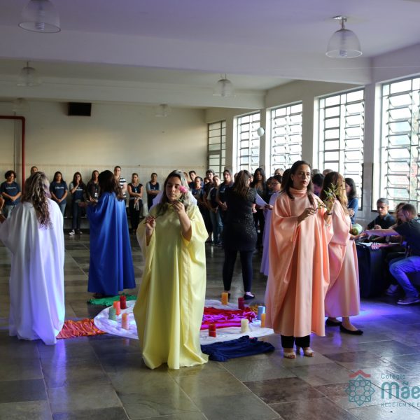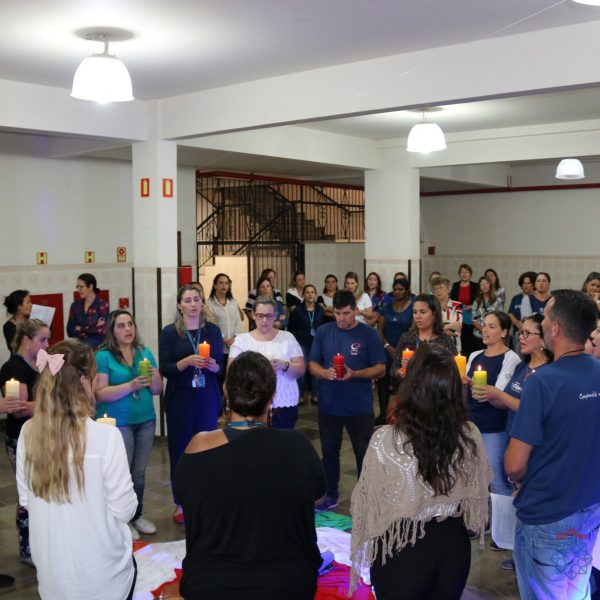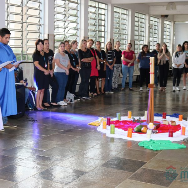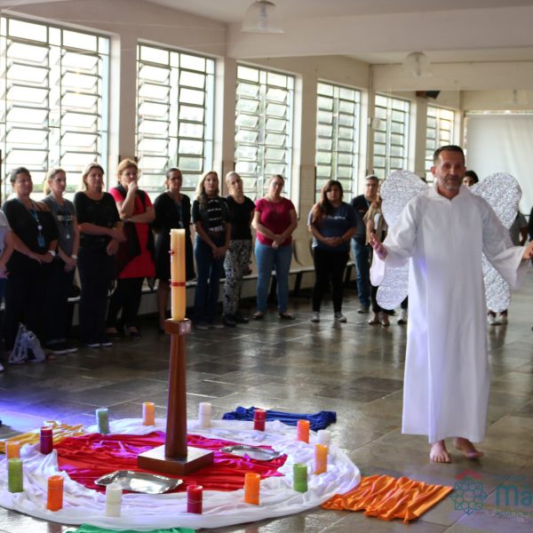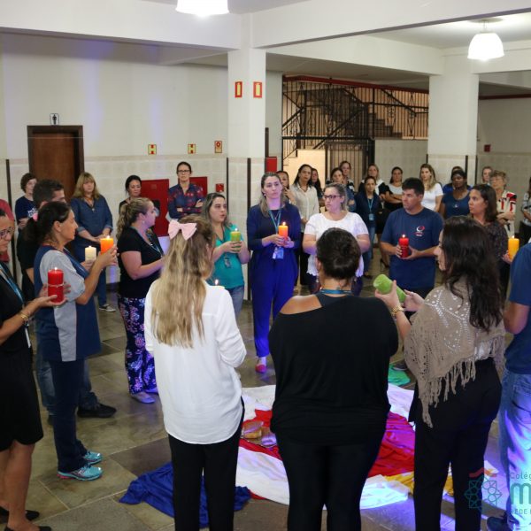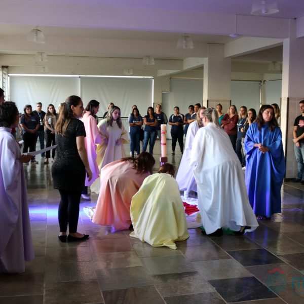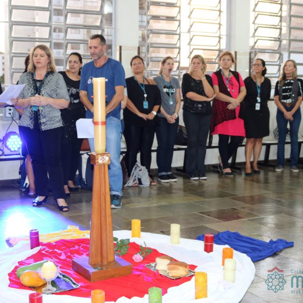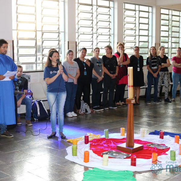 No dia 28 de março realizou-se uma emocionante Celebração Pascal com os educadores do Colégio Mãe de Deus. Com o tema: “Cristo, luz do mundo!”, mais de 100 educadores se reuniram e compartilharam momentos de oração, de fé e de alegria pela Vida Nova que o Cristo significa para a humanidade.