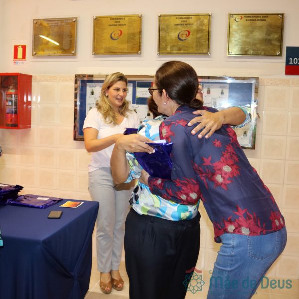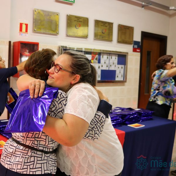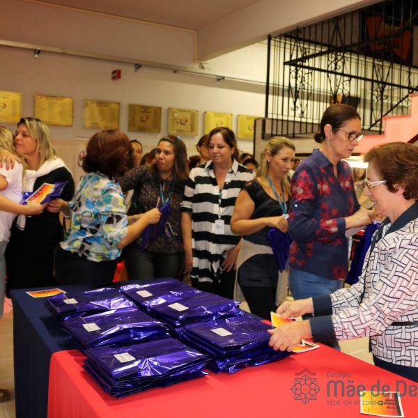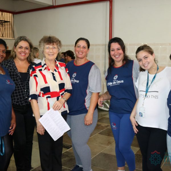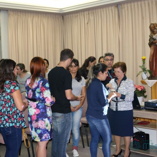 Após ouvir a fala da diretora, Ir. Sueli Gonzatti, e de receber um pequeno mimo, todos se alegraram e confraternizaram, num clima de amizade e comunhão.