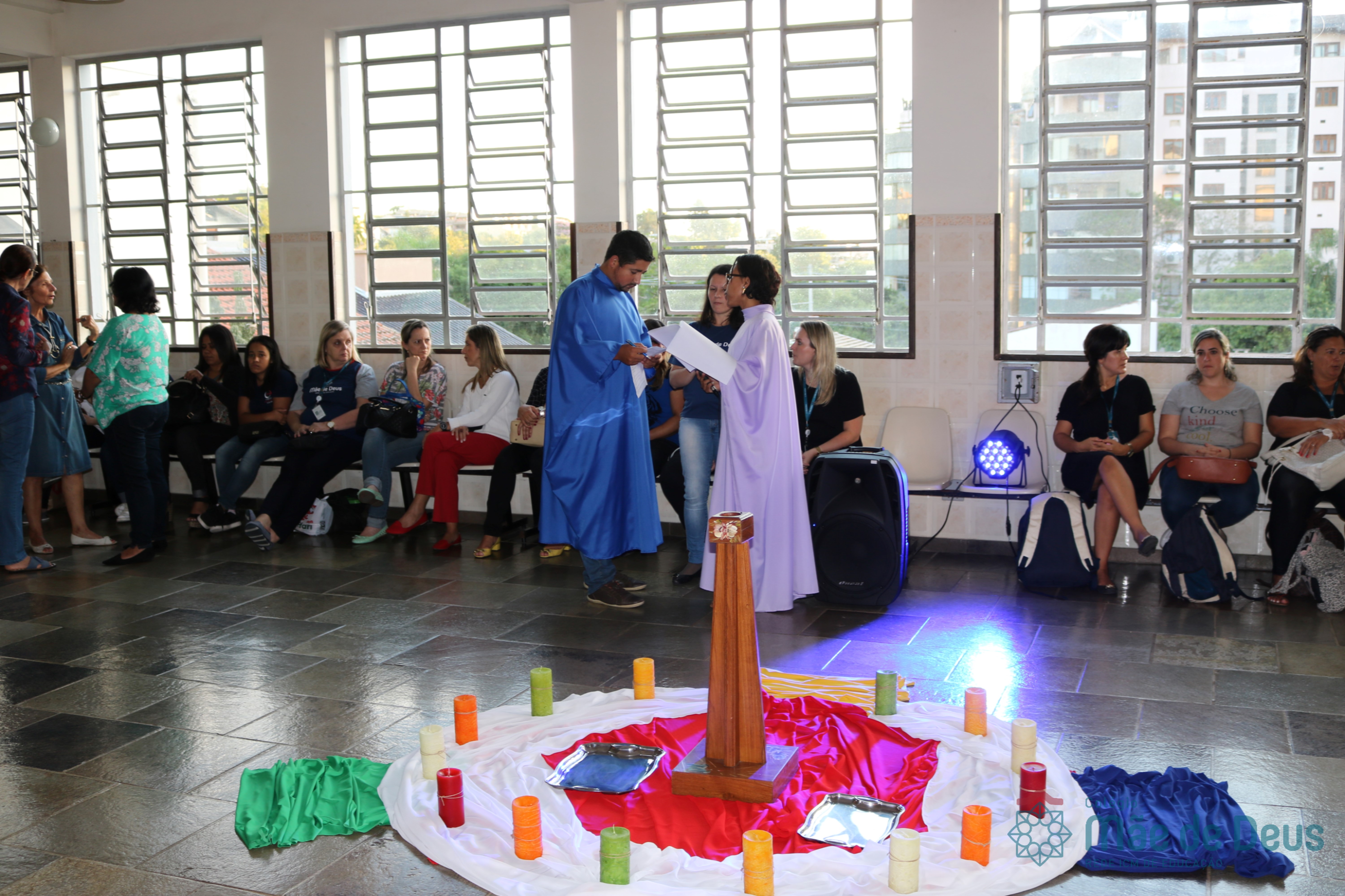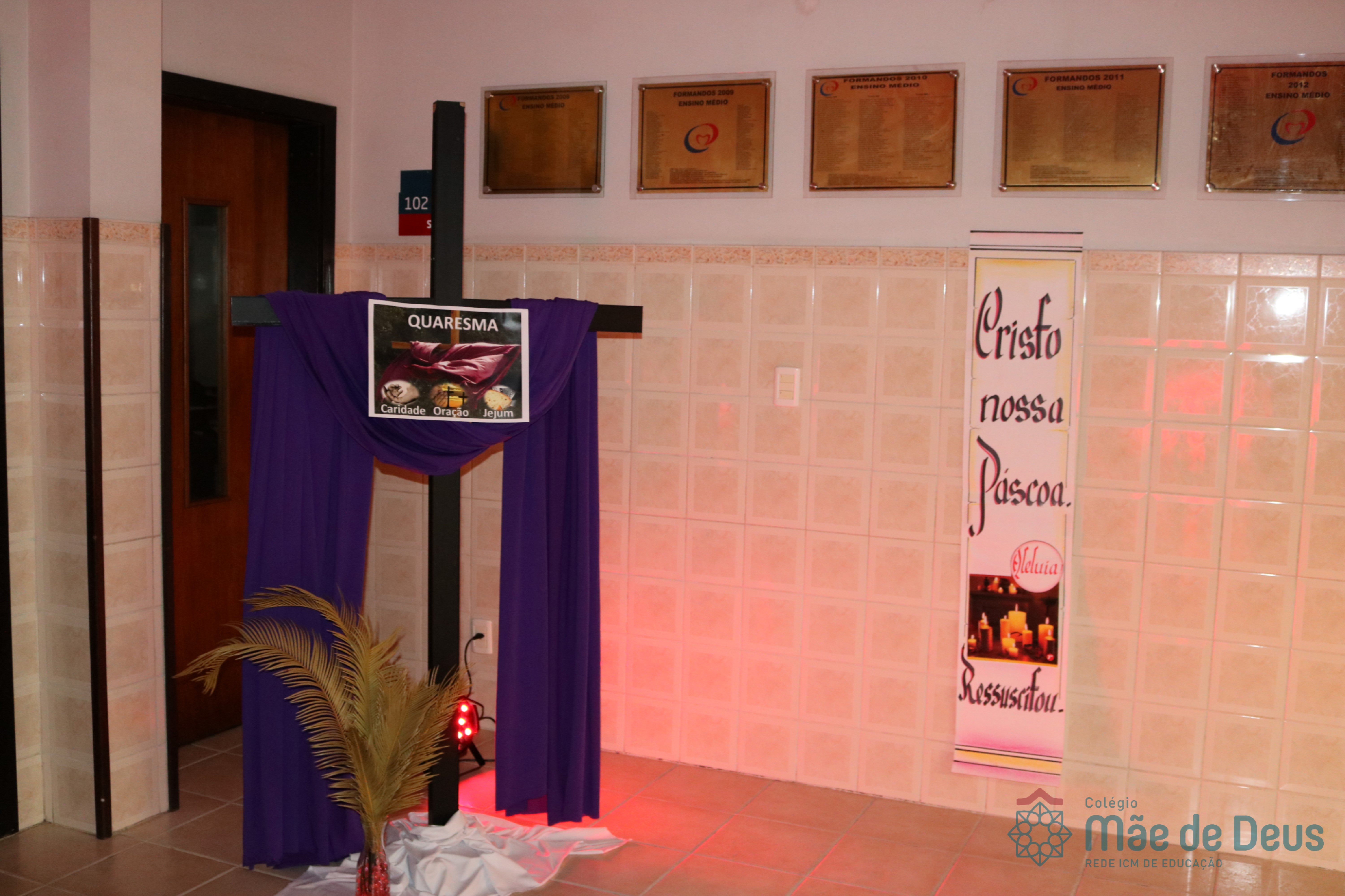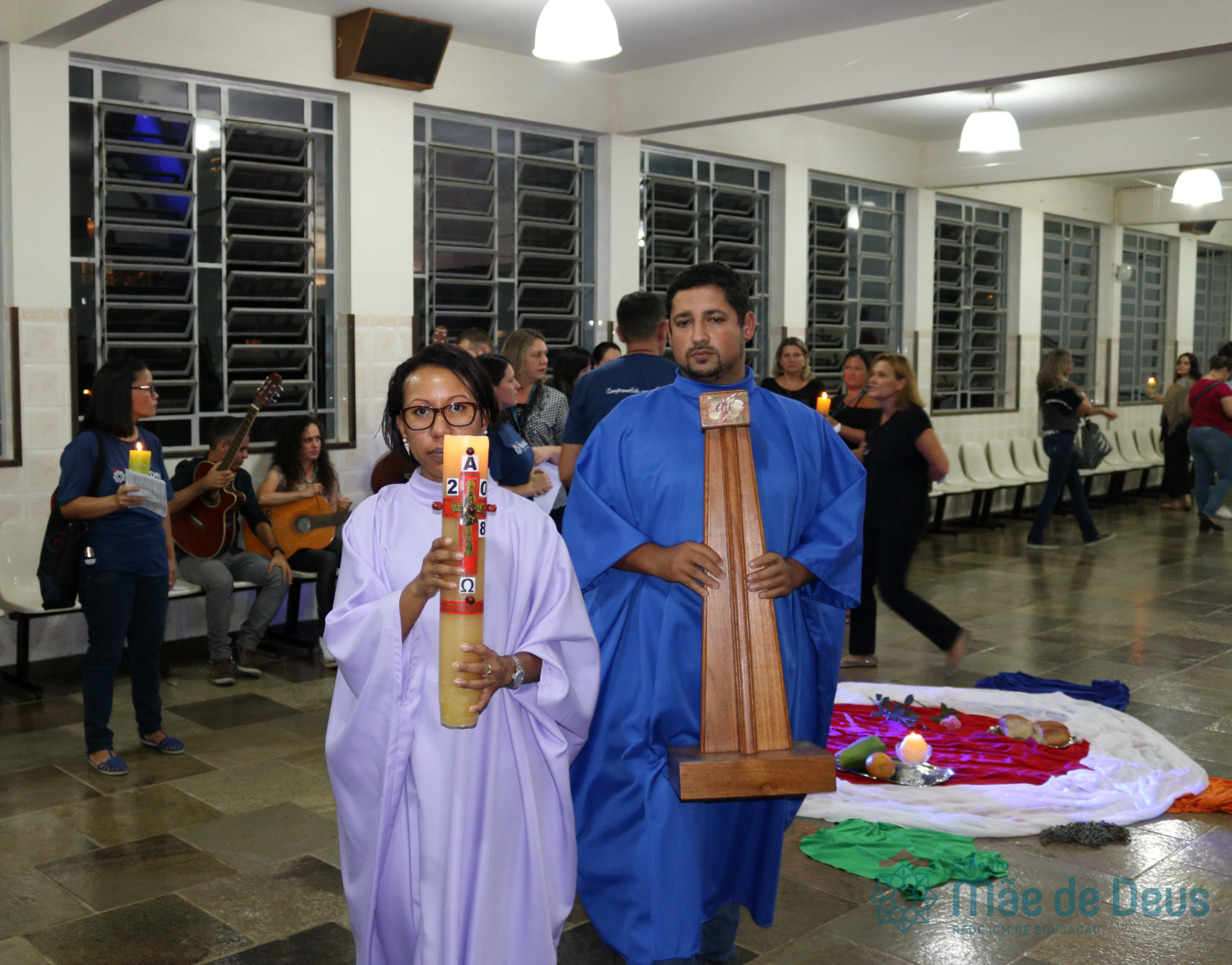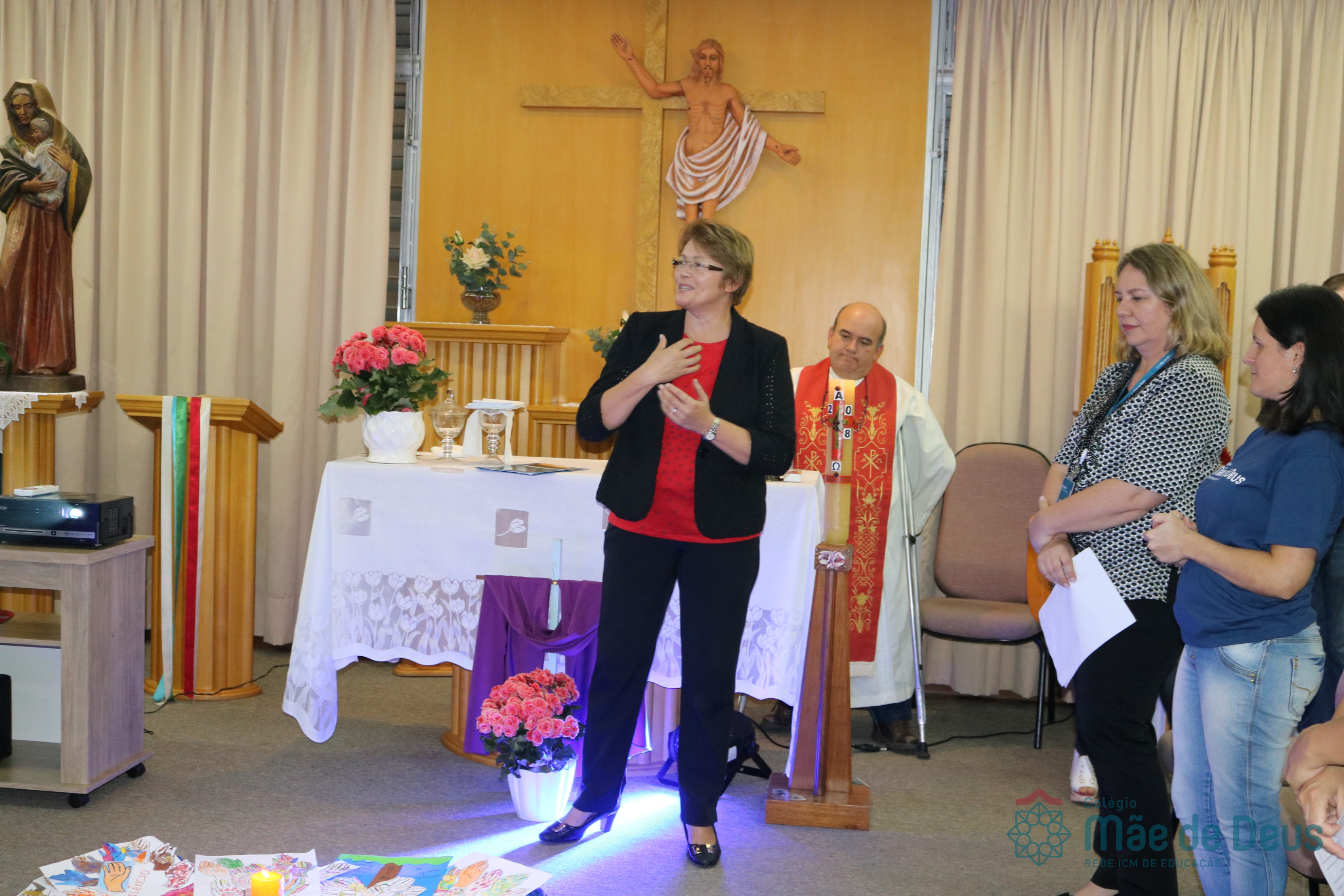 A celebração teve início no saguão 2 do Colégio, com símbolos e narração do Evangelho da Ressurreição, em que Maria Madalena anunciou que Jesus vive eternamente. Um dos momentos significativos, foi a partilha de sinais de ressurreição na vida de cada um de nós, realizada em pequenos grupos. Cada grupo acendeu uma vela no Círio Pascal e, em procissão, seguiu-se para a capela celebrando a Eucaristia.