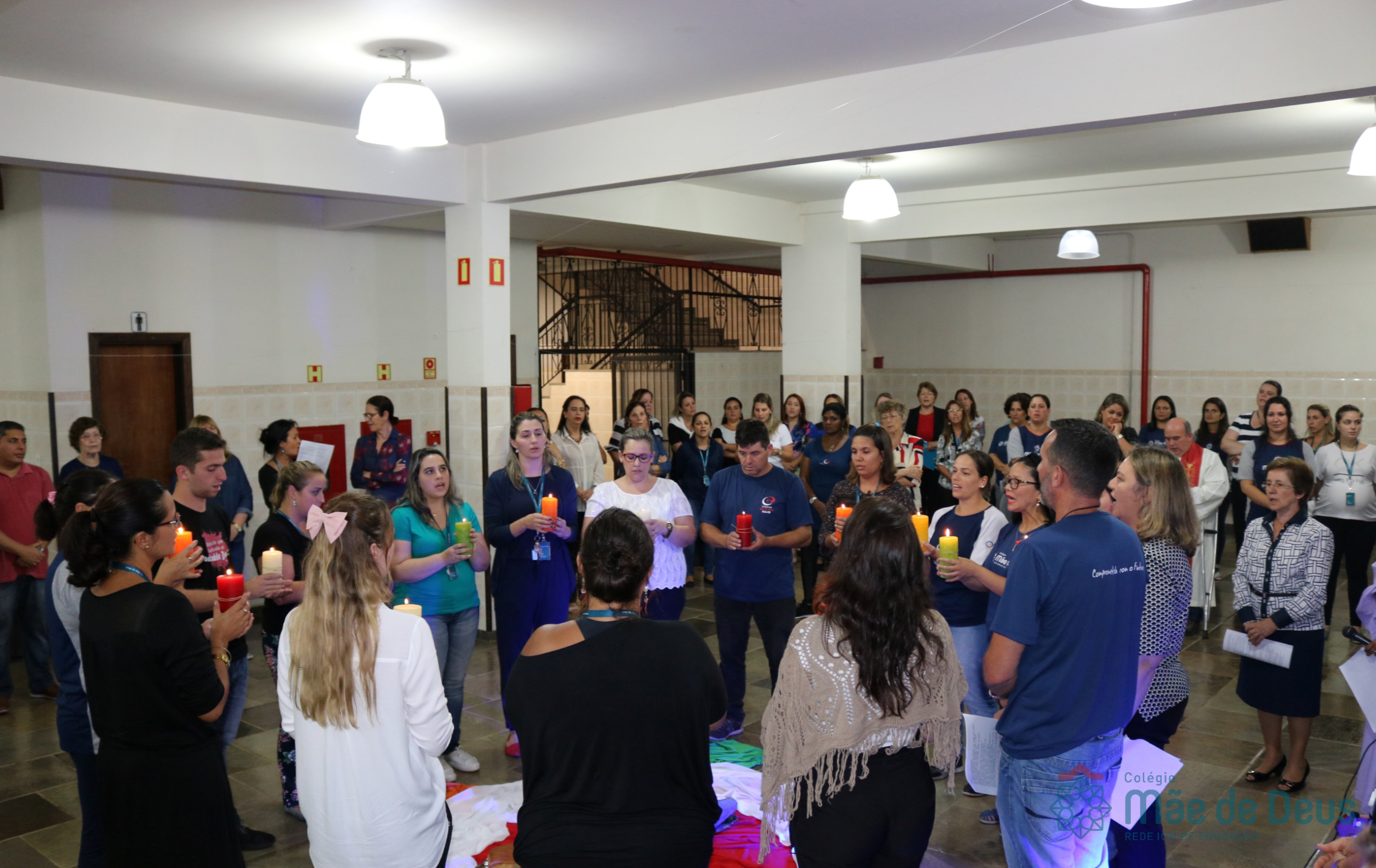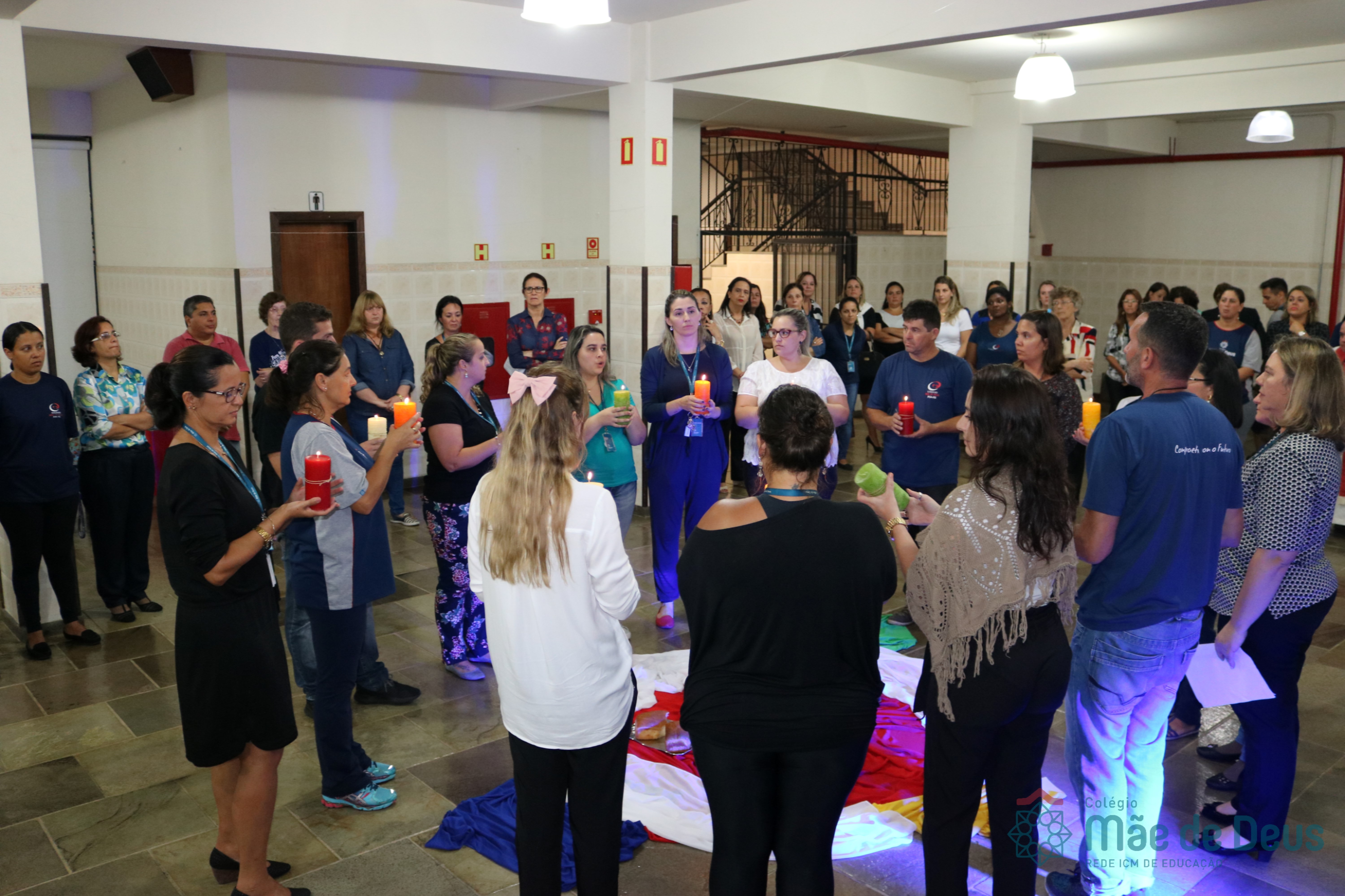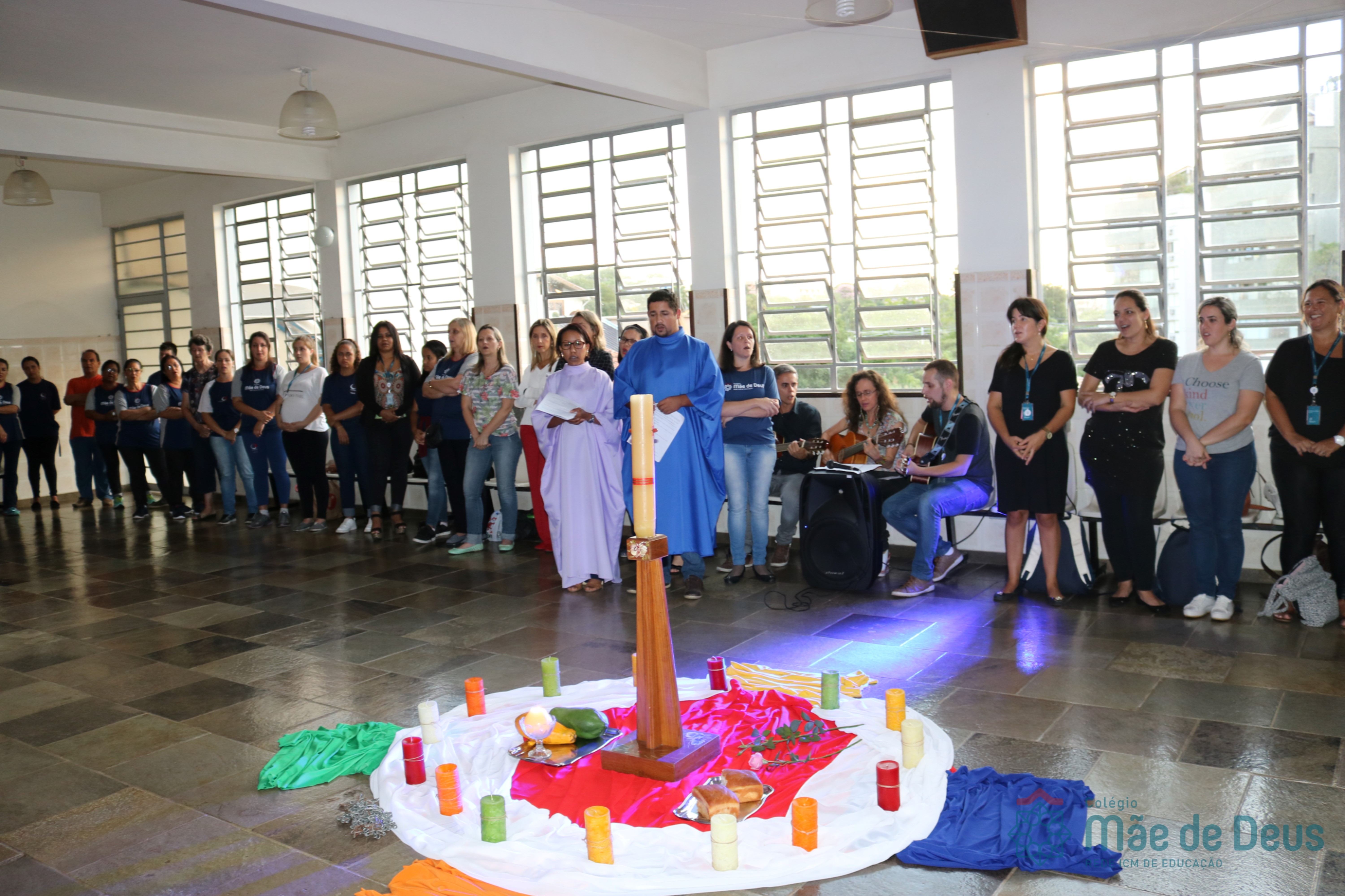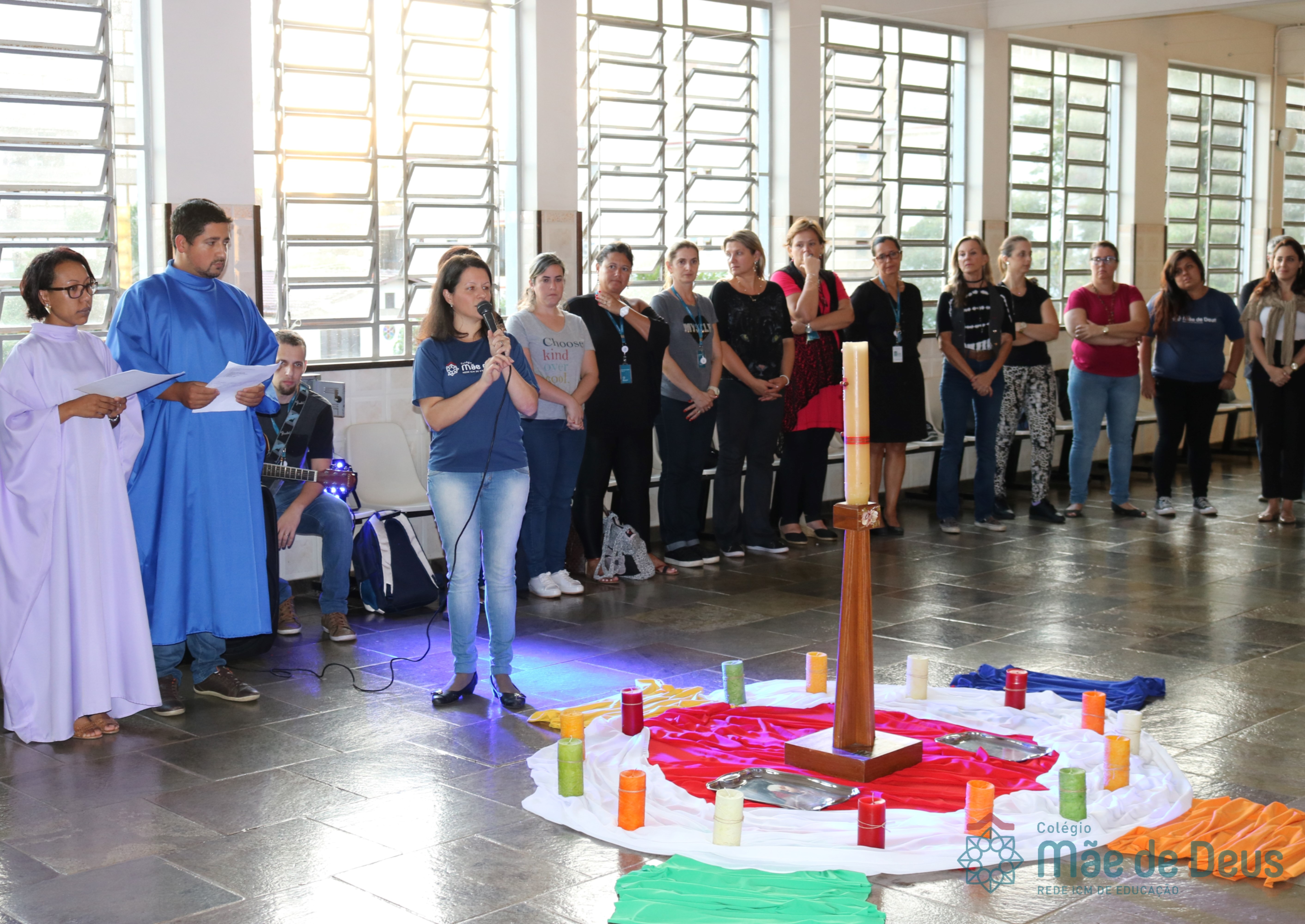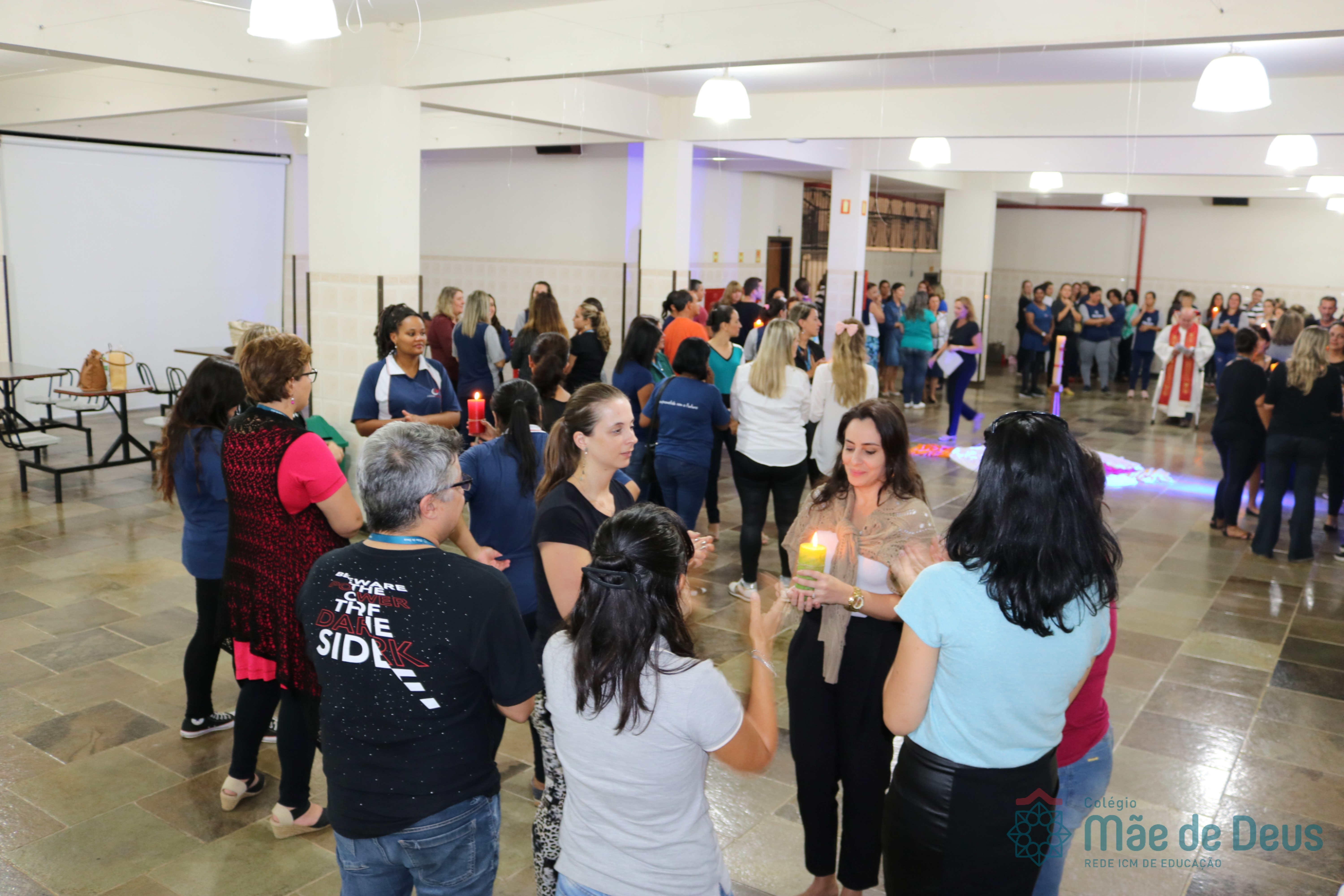 No dia 28 de março realizou-se uma emocionante Celebração Pascal com os educadores do Colégio Mãe de Deus. Com o tema: “Cristo, luz do mundo!”, mais de 100 educadores se reuniram e compartilharam momentos de oração, de fé e de alegria pela Vida Nova que o Cristo significa para a humanidade.