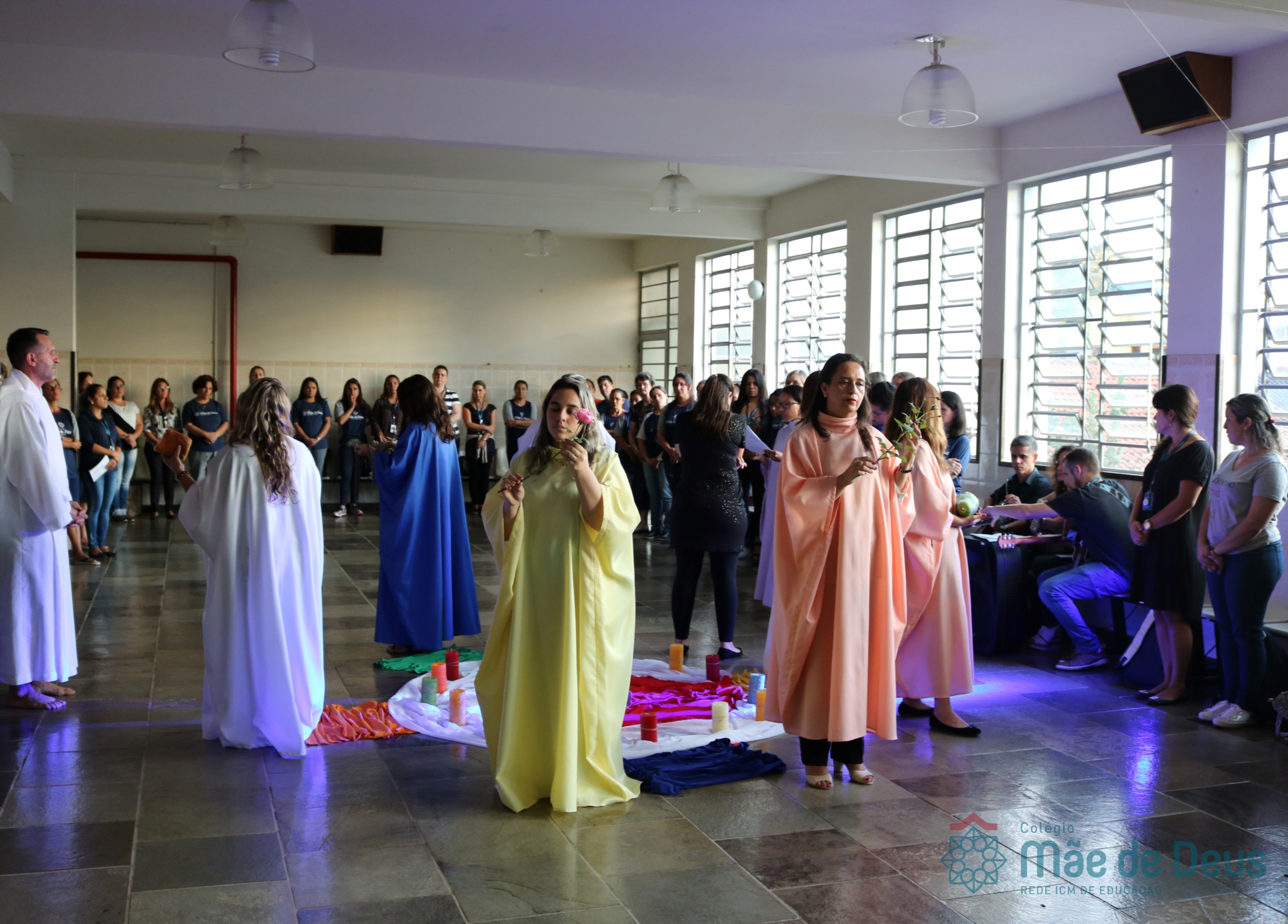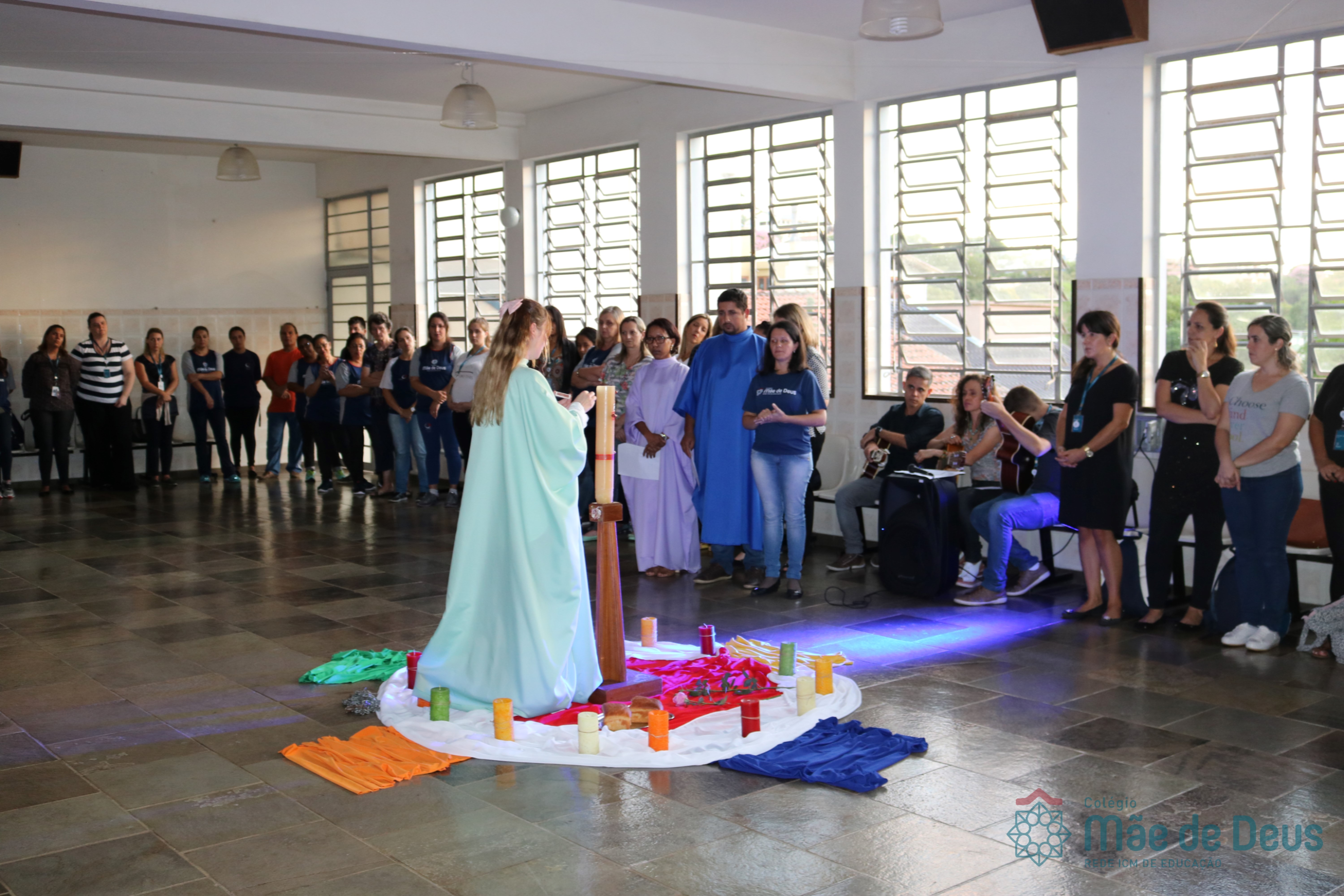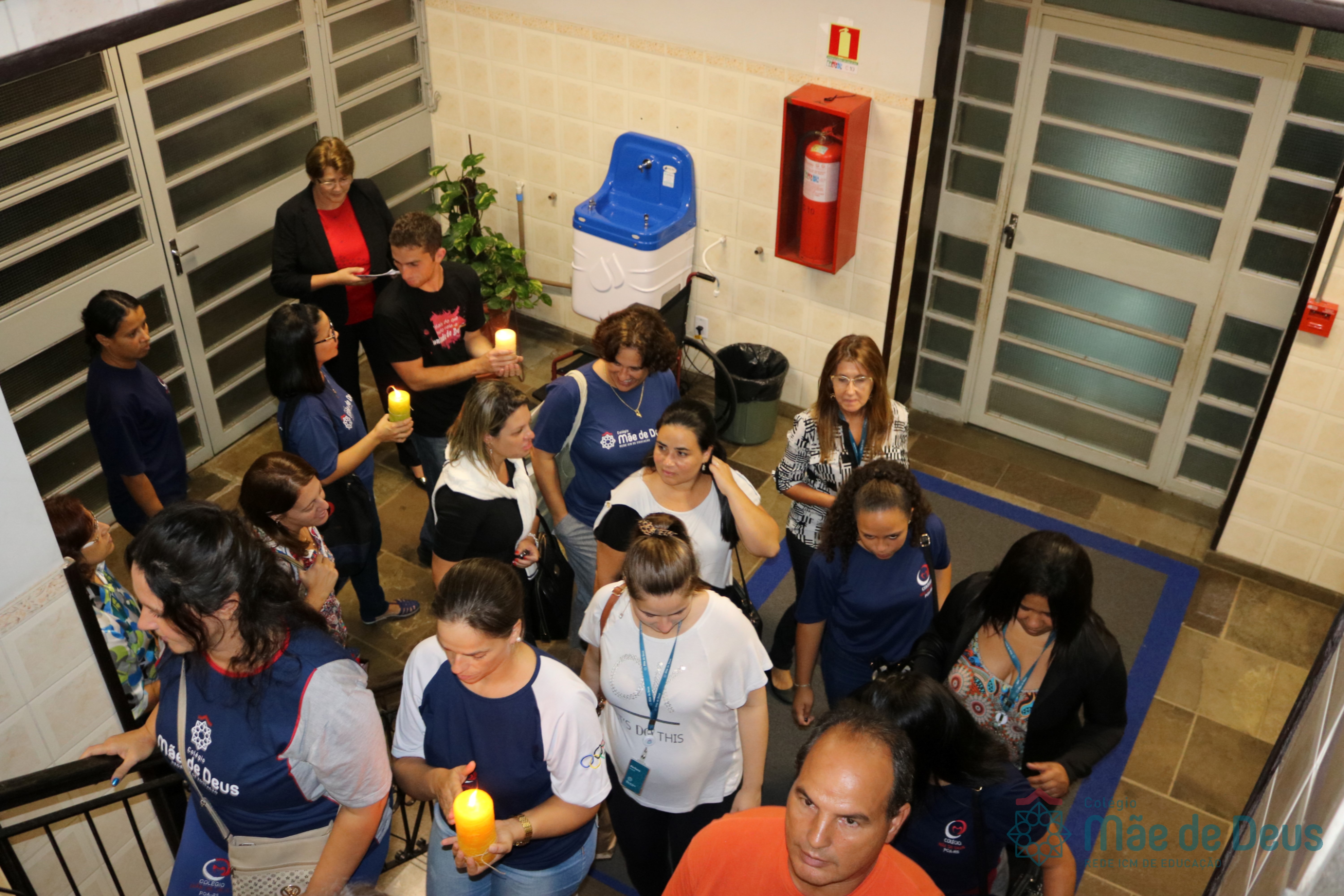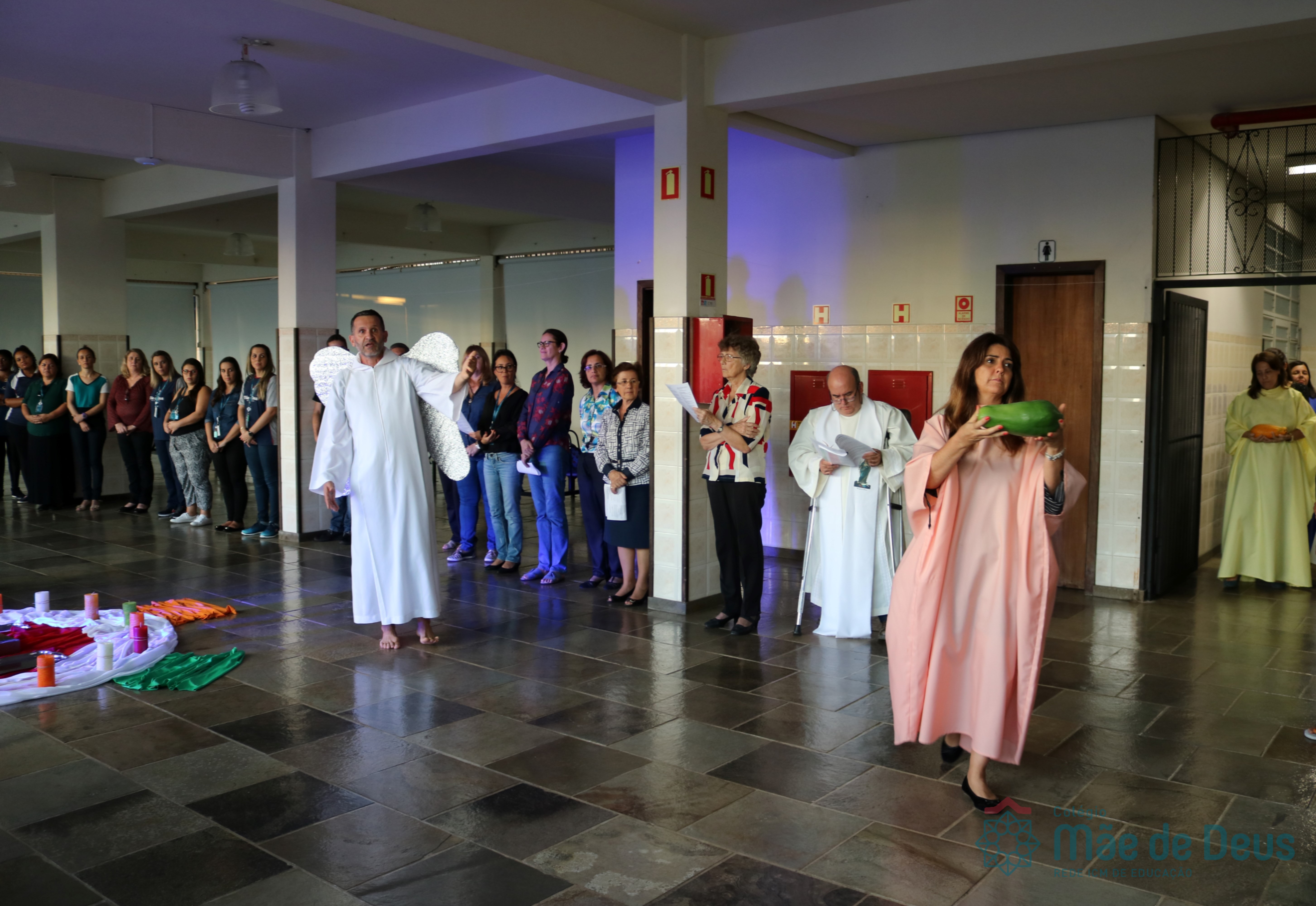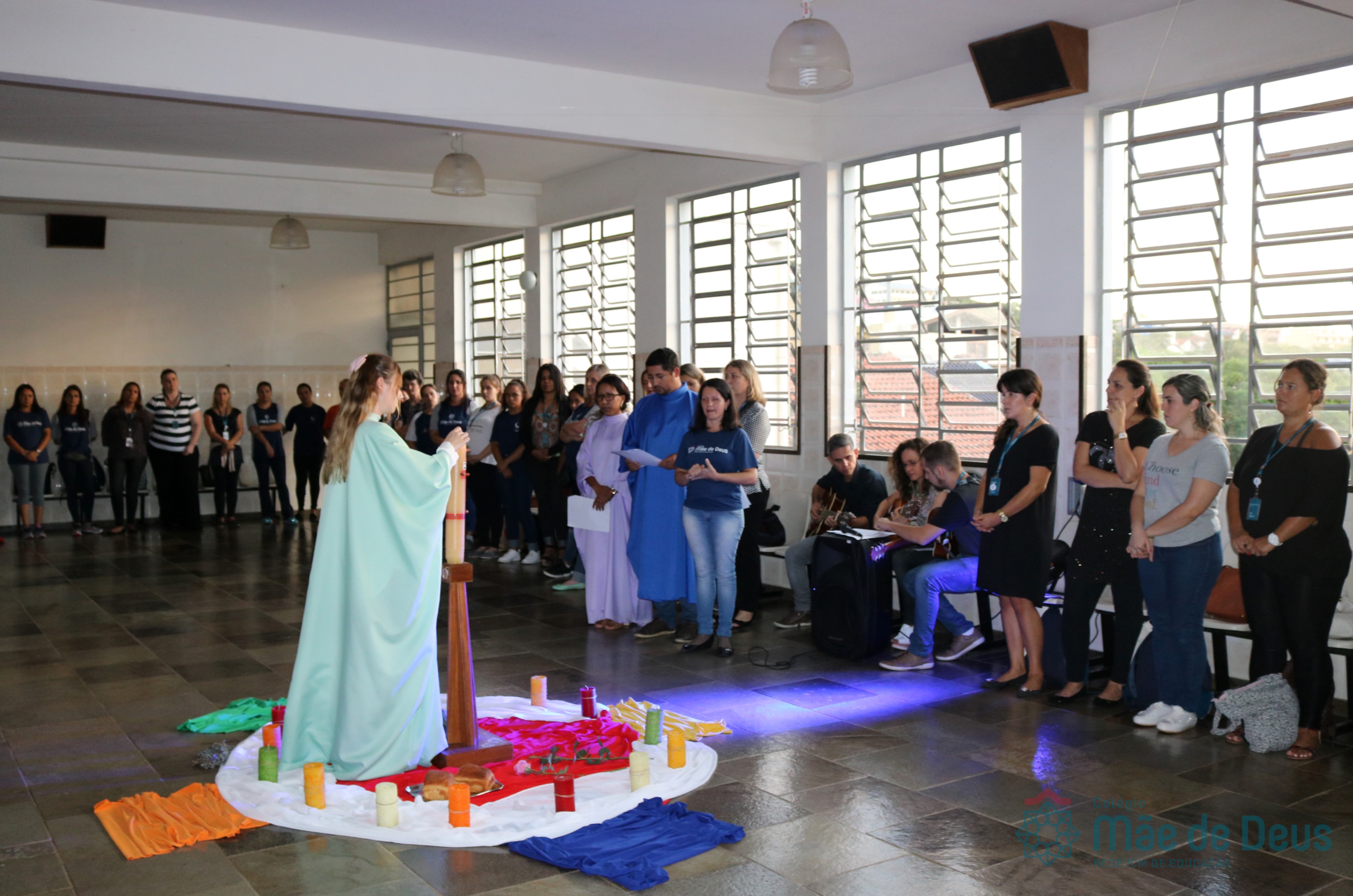 No dia 28 de março realizou-se uma emocionante Celebração Pascal com os educadores do Colégio Mãe de Deus. Com o tema: “Cristo, luz do mundo!”, mais de 100 educadores se reuniram e compartilharam momentos de oração, de fé e de alegria pela Vida Nova que o Cristo significa para a humanidade.