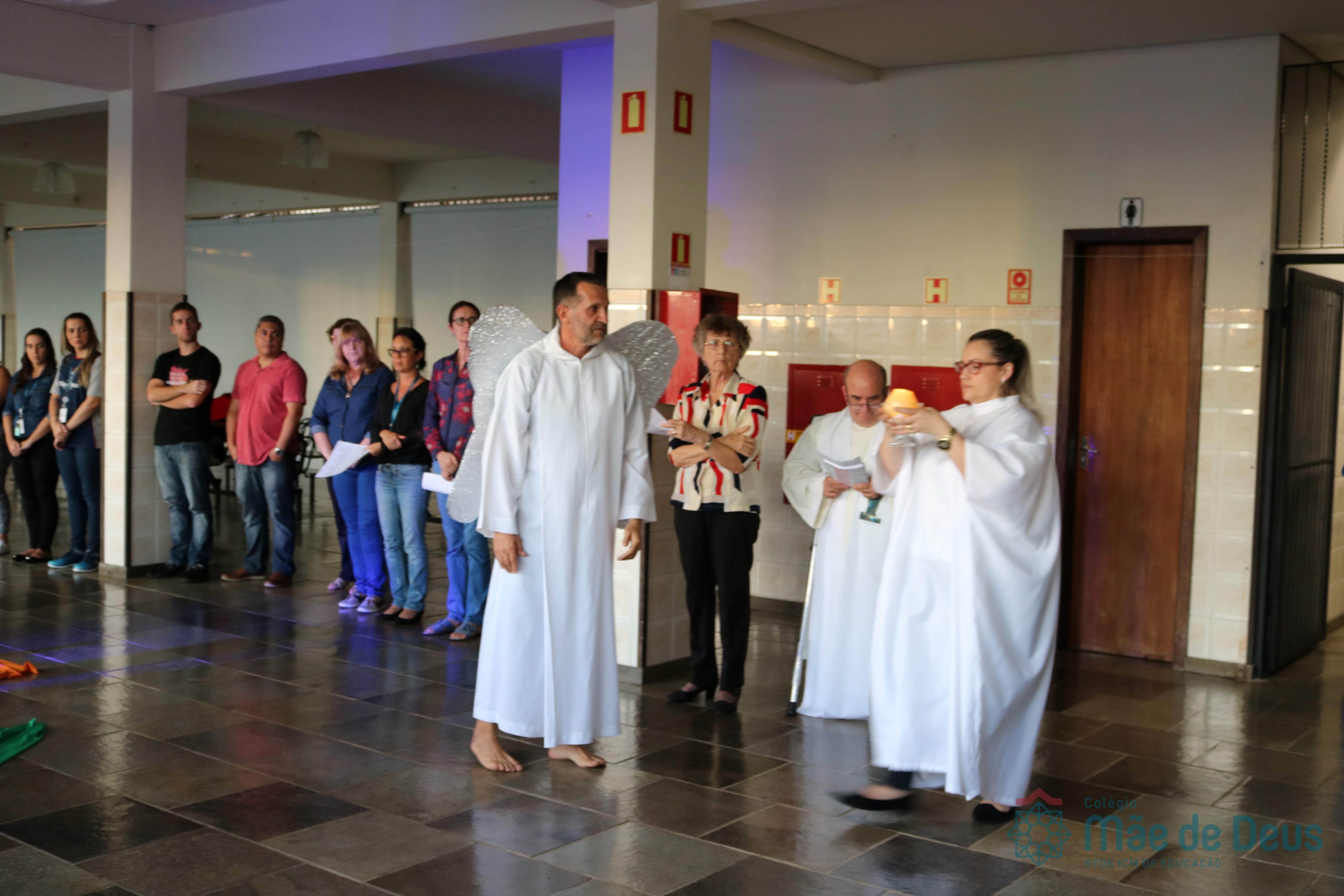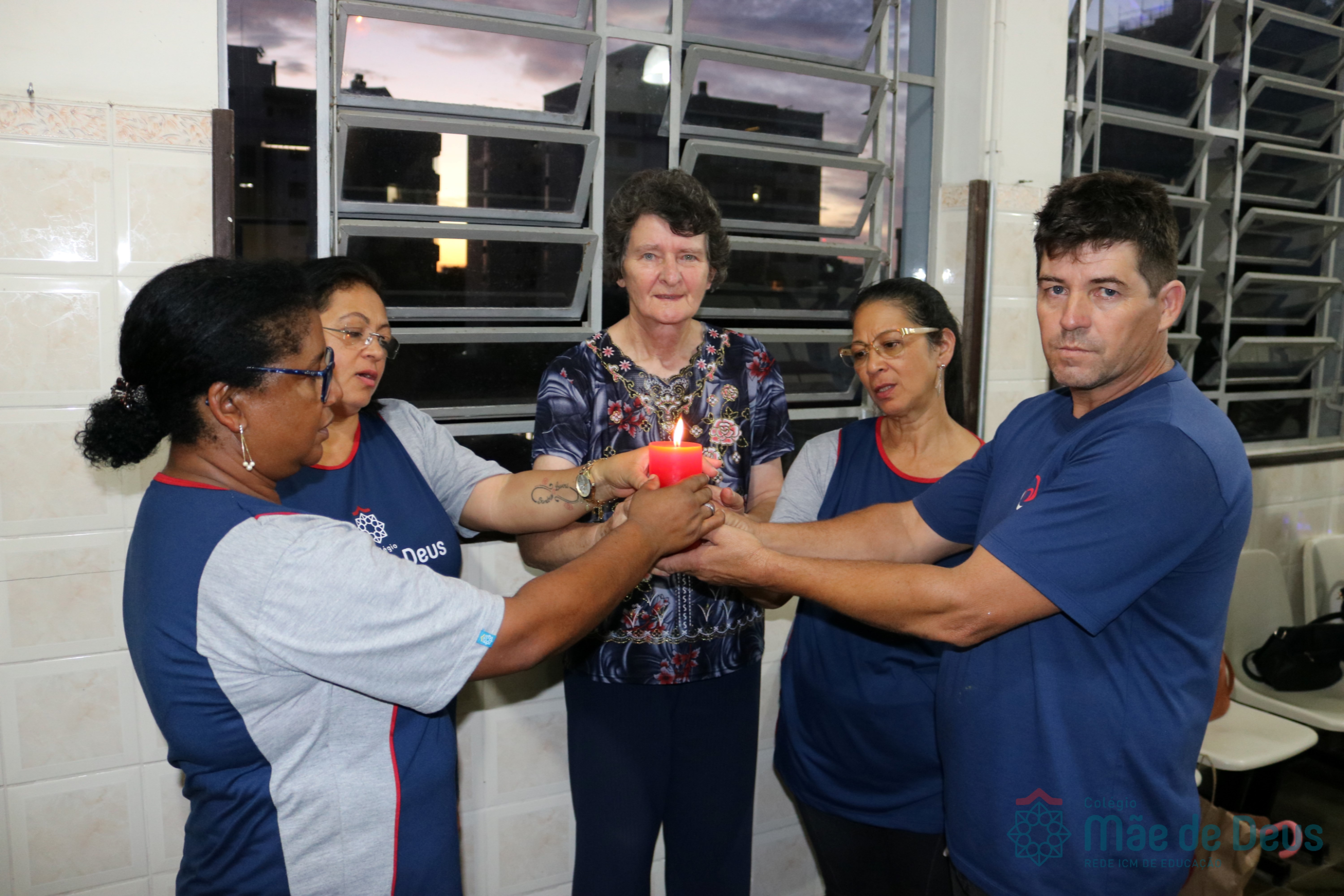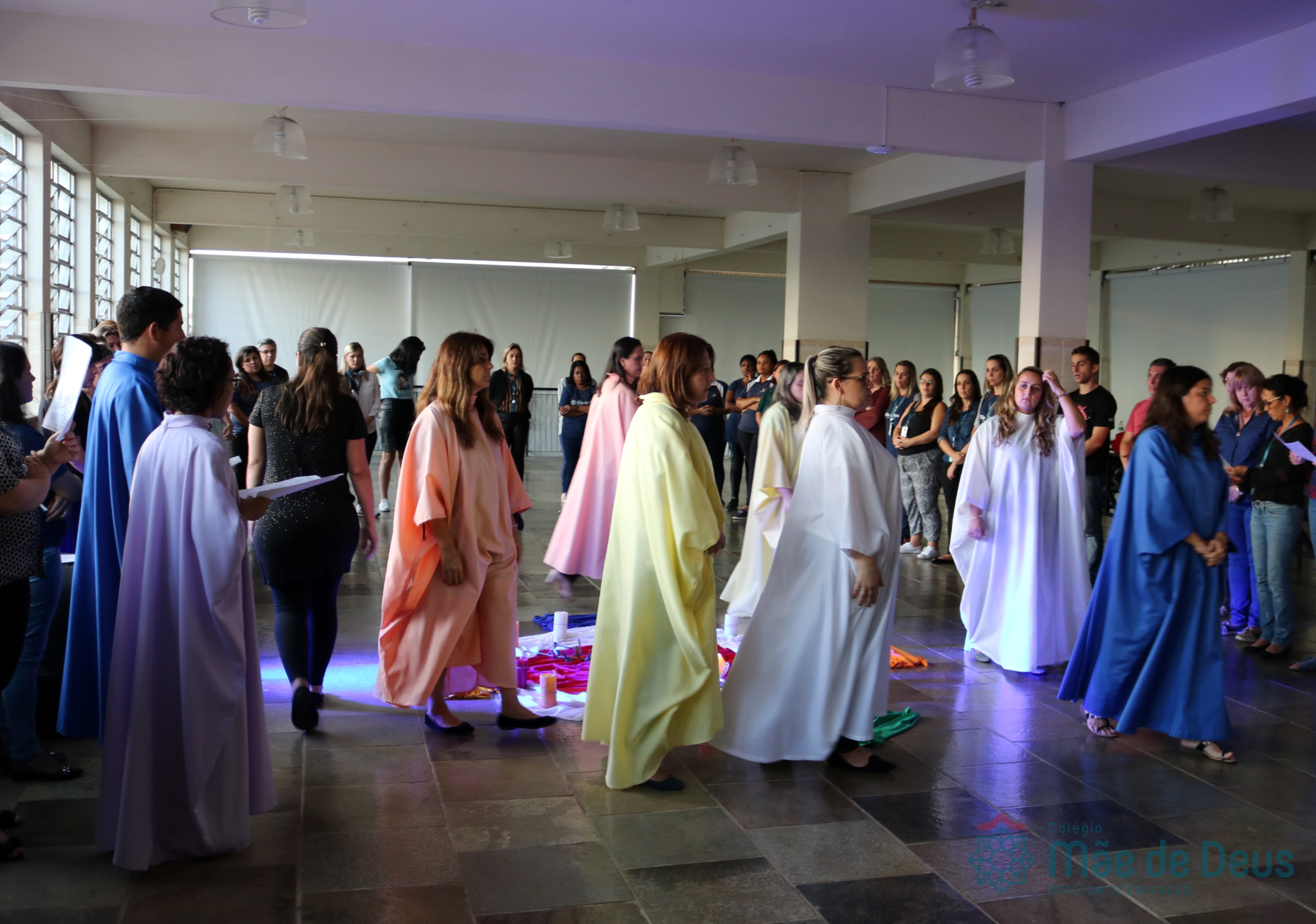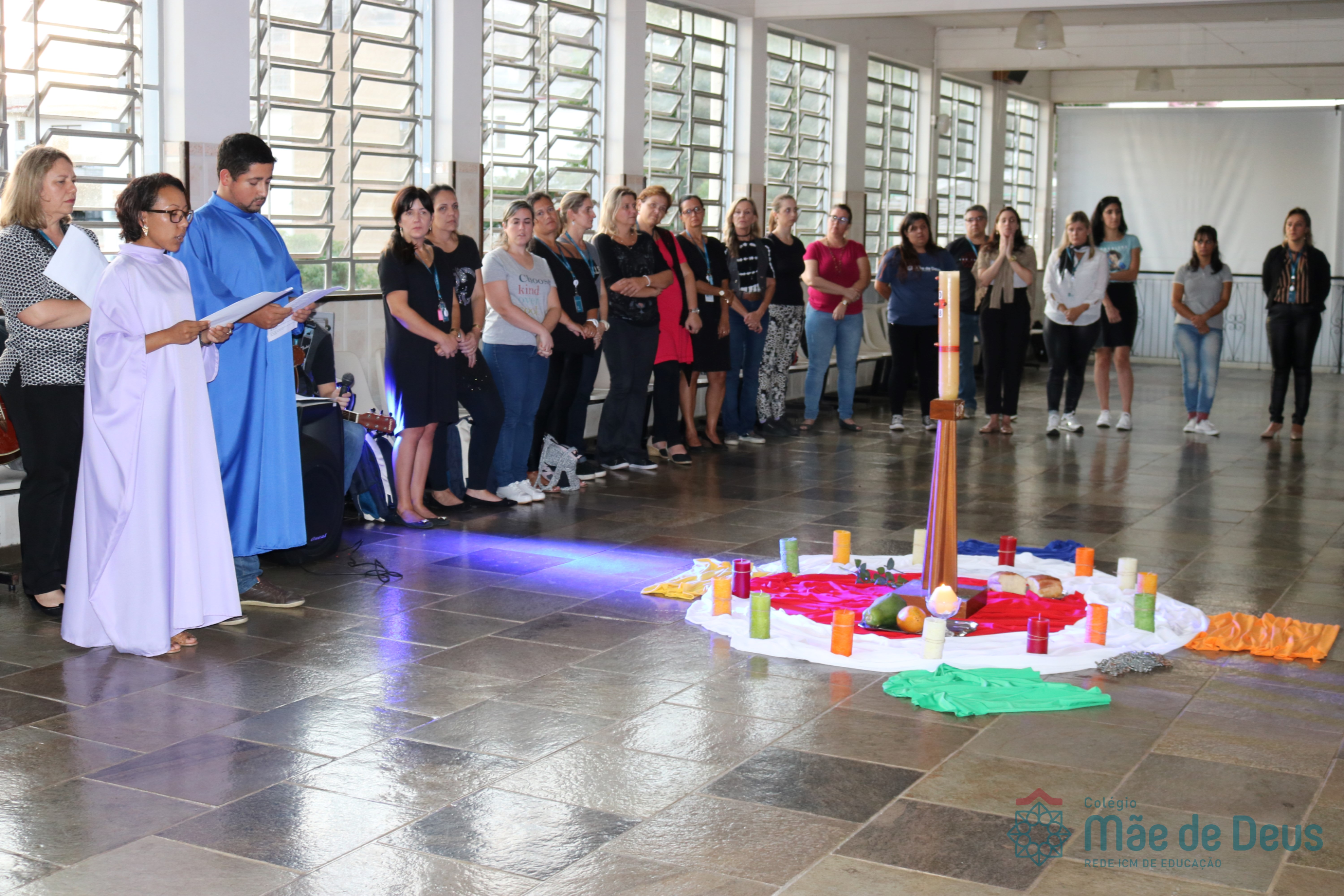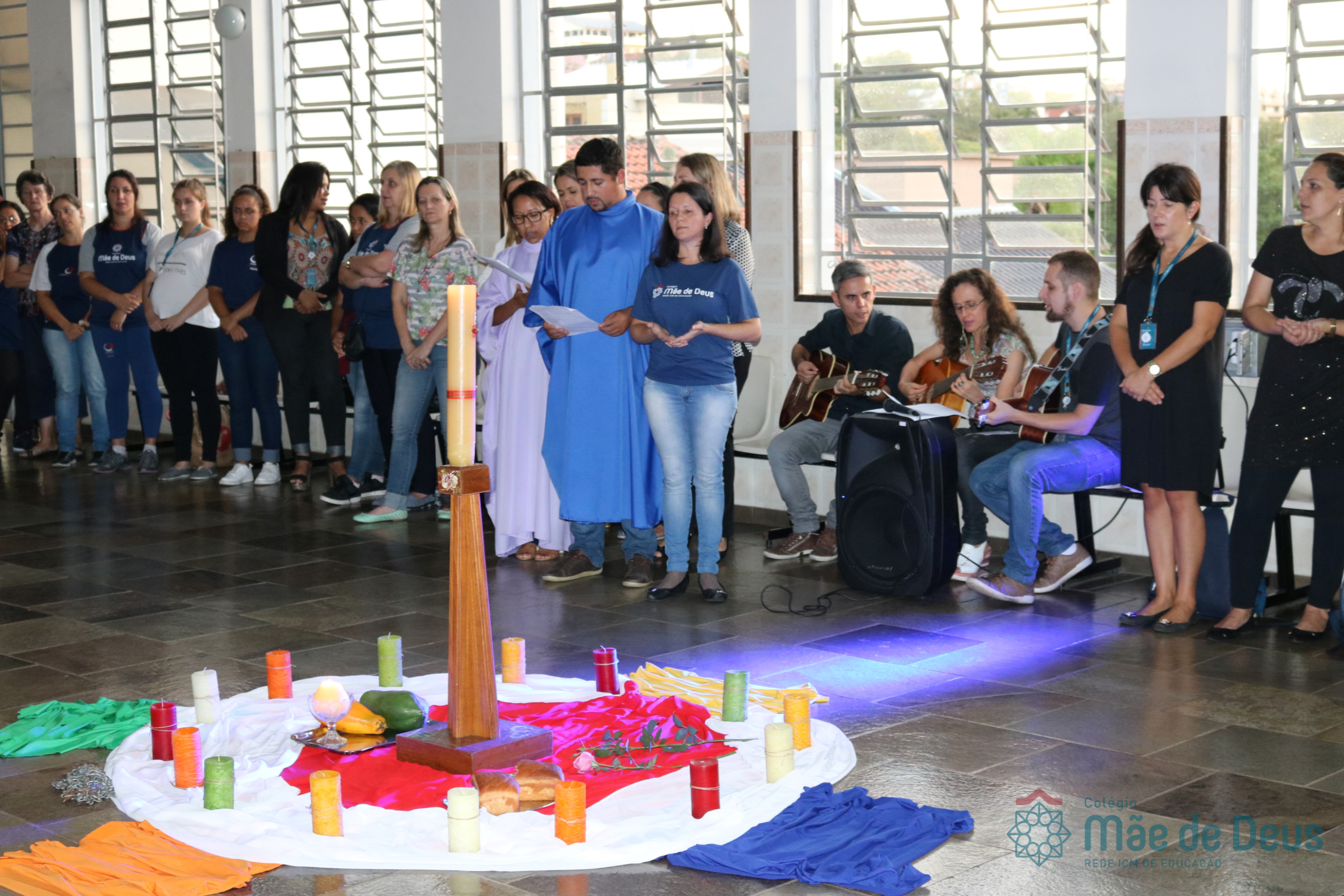 No dia 28 de março realizou-se uma emocionante Celebração Pascal com os educadores do Colégio Mãe de Deus. Com o tema: “Cristo, luz do mundo!”, mais de 100 educadores se reuniram e compartilharam momentos de oração, de fé e de alegria pela Vida Nova que o Cristo significa para a humanidade.