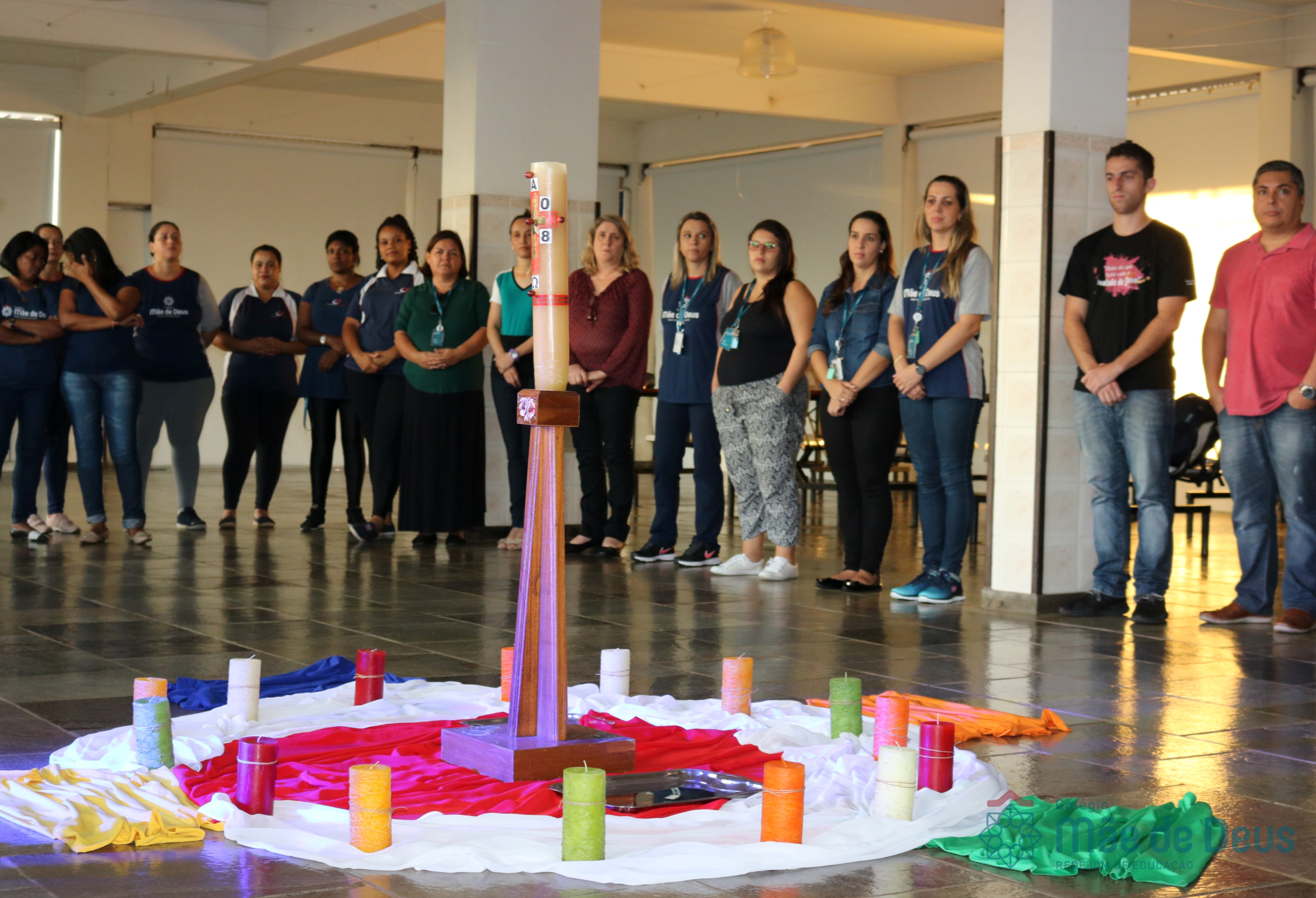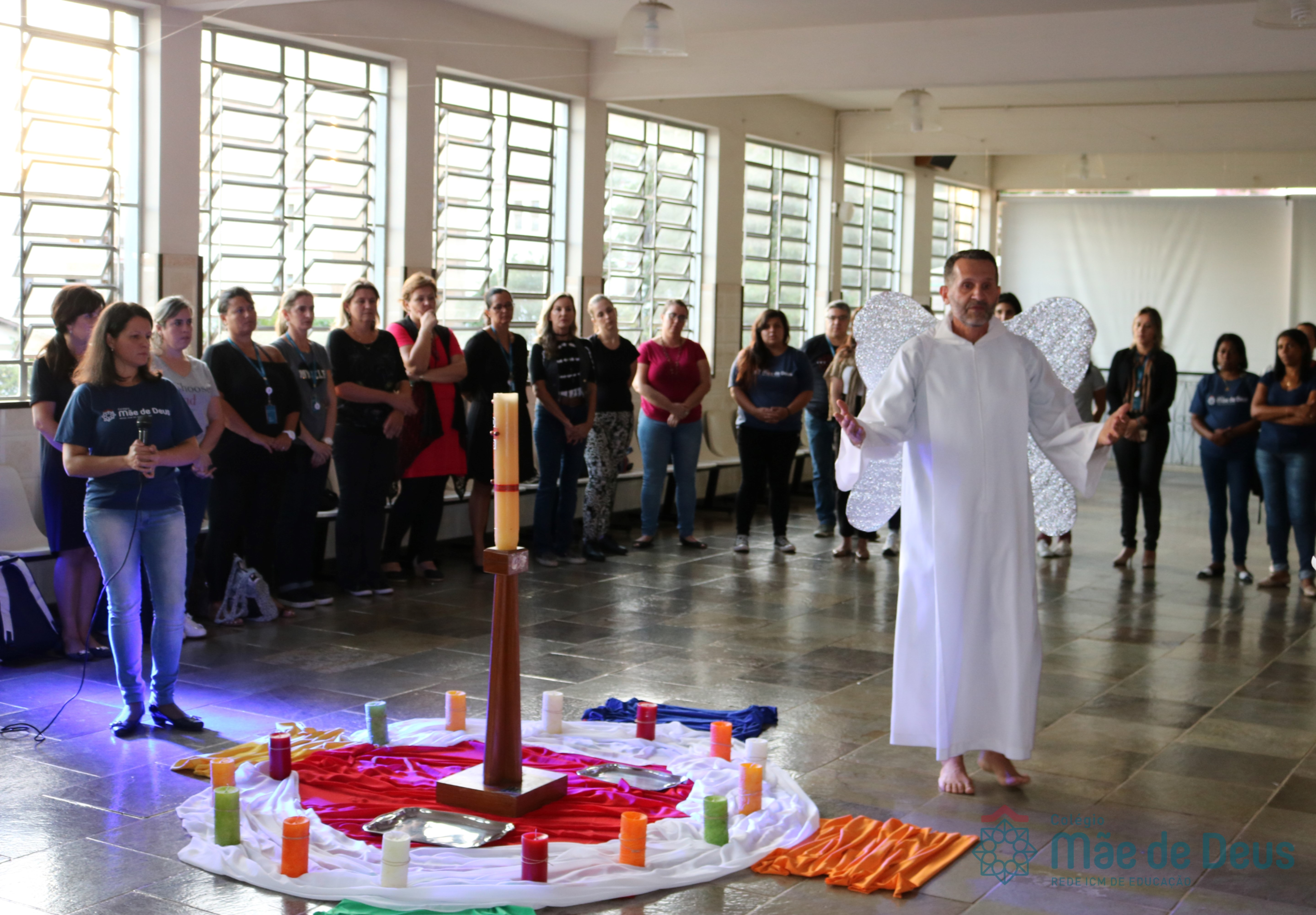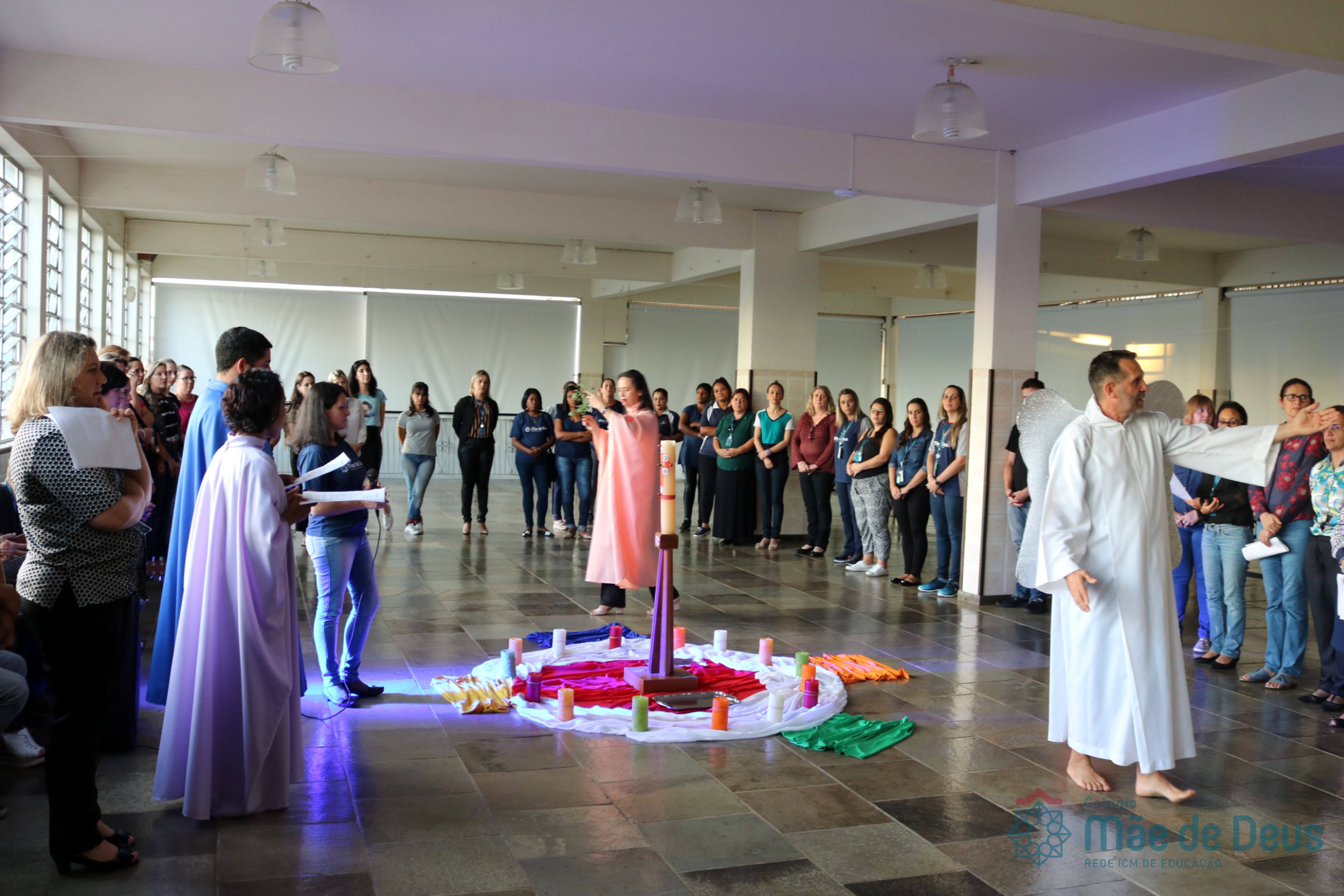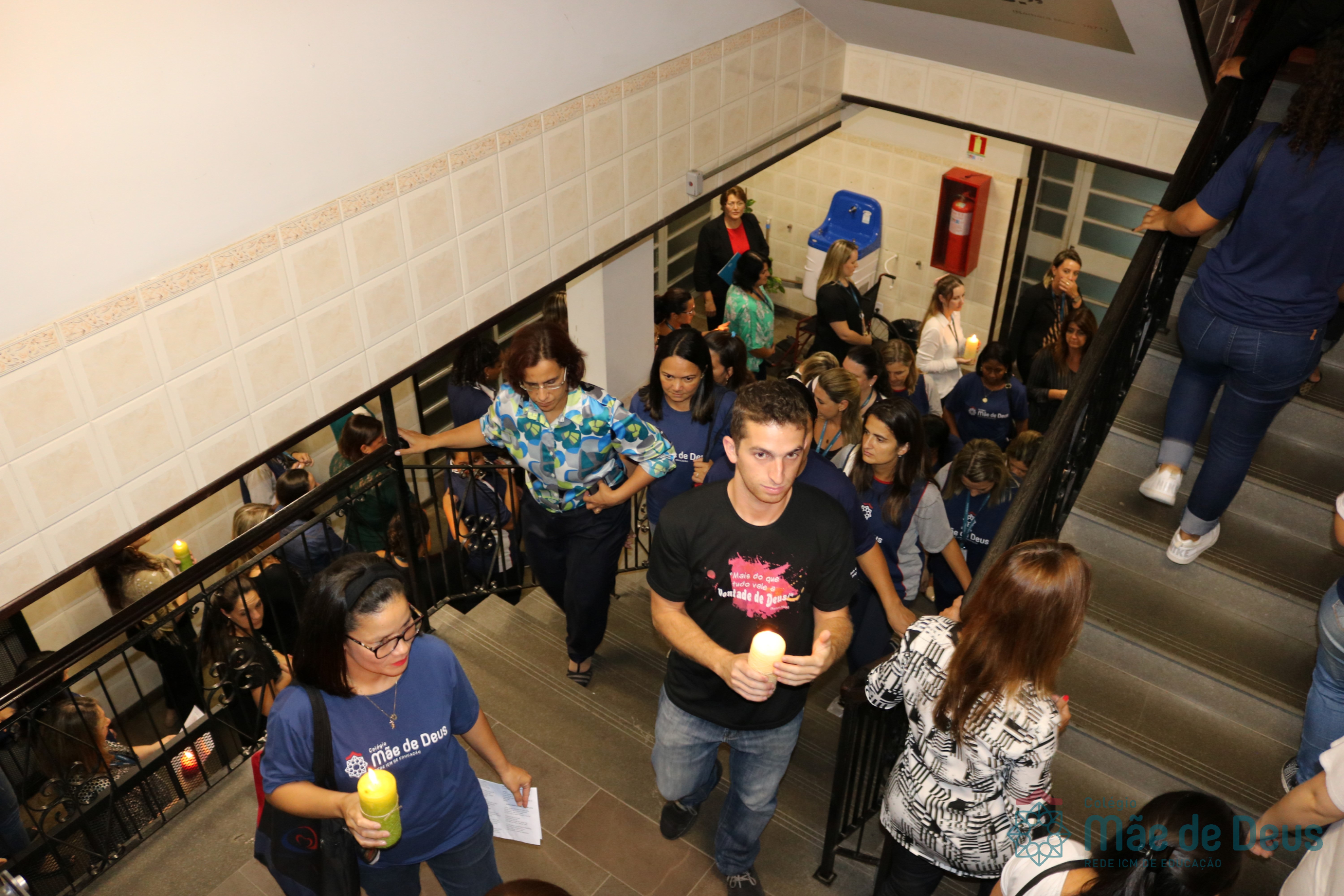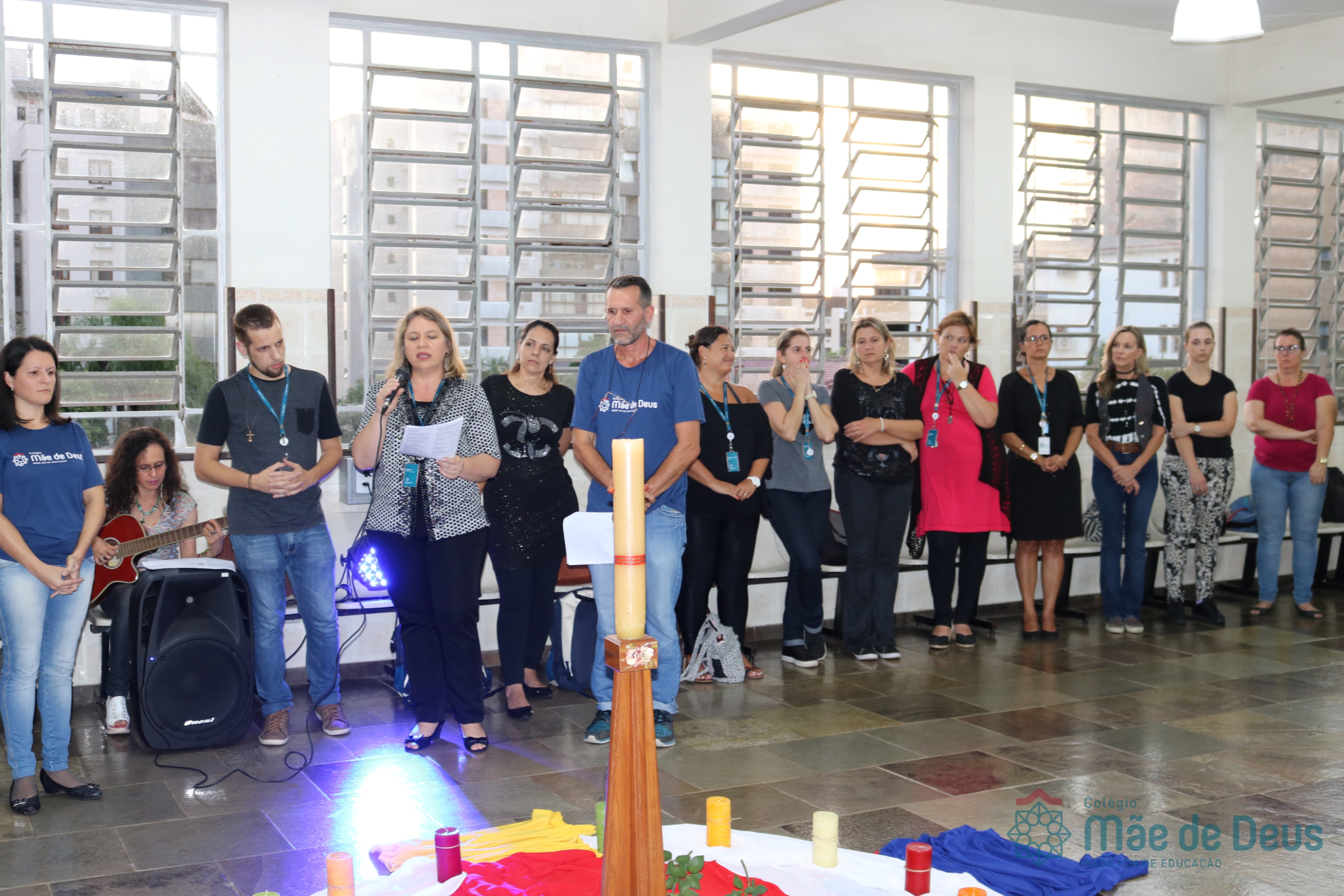 No dia 28 de março realizou-se uma emocionante Celebração Pascal com os educadores do Colégio Mãe de Deus. Com o tema: “Cristo, luz do mundo!”, mais de 100 educadores se reuniram e compartilharam momentos de oração, de fé e de alegria pela Vida Nova que o Cristo significa para a humanidade.