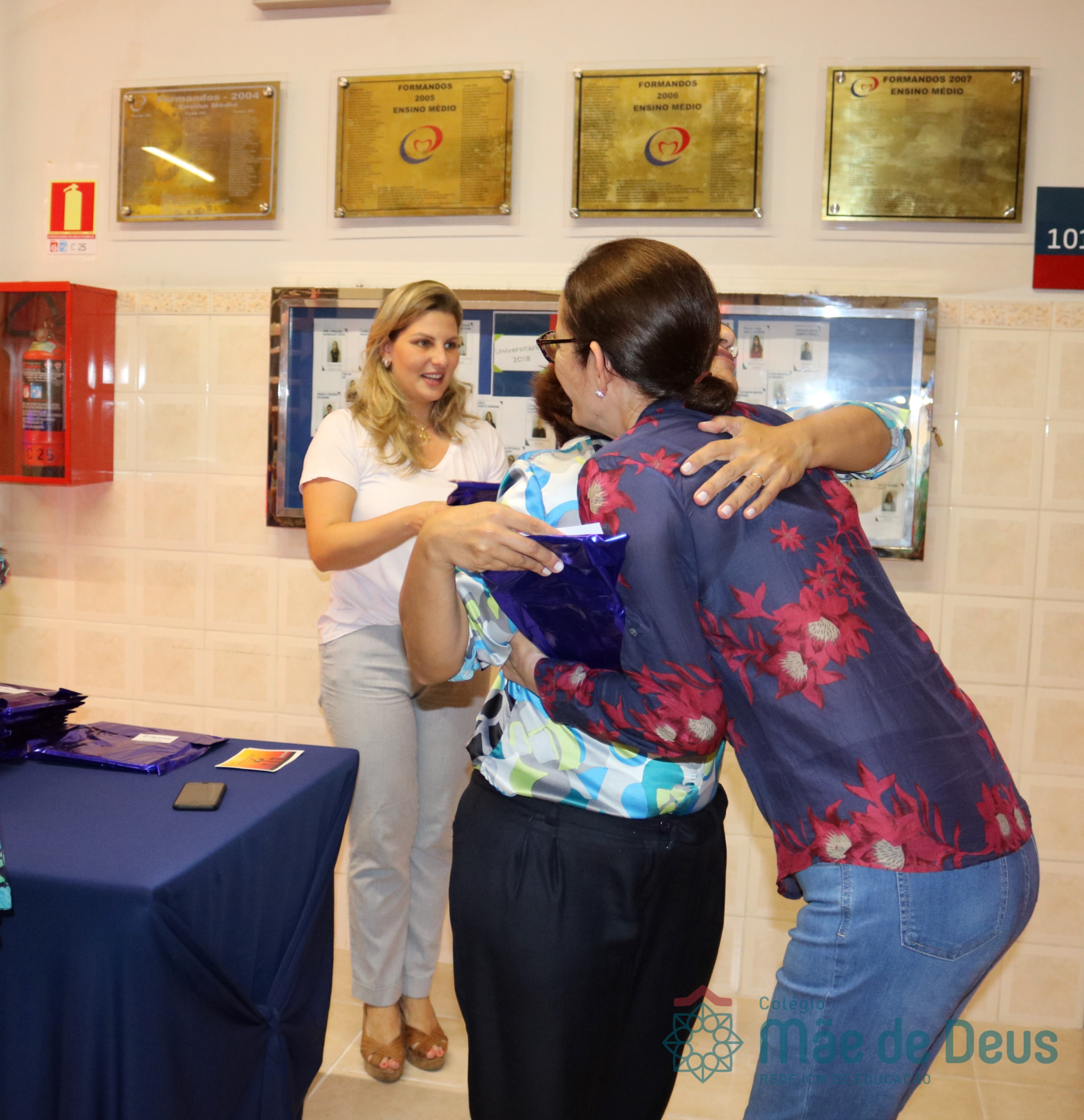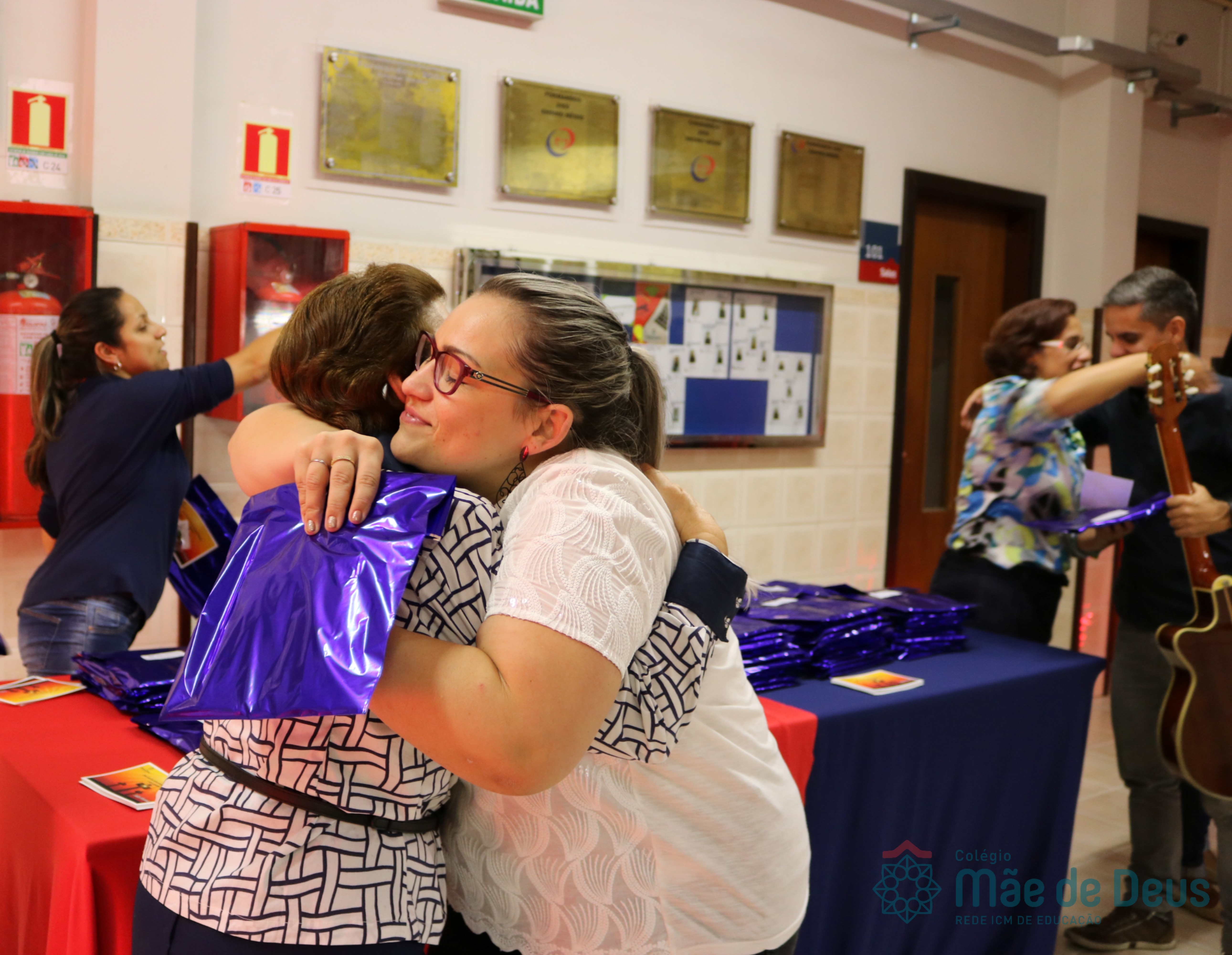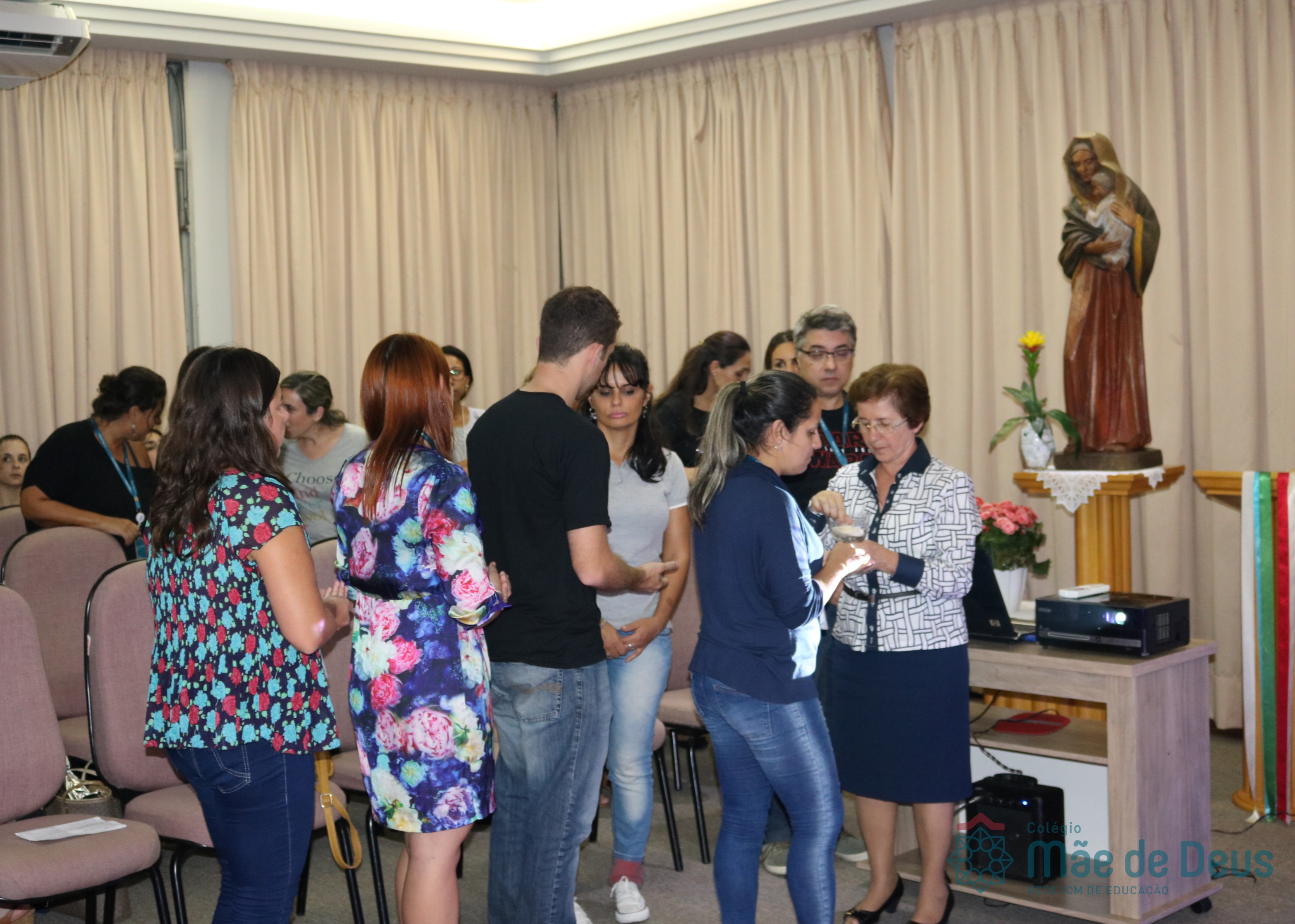 Após ouvir a fala da diretora, Ir. Sueli Gonzatti, e de receber um pequeno mimo, todos se alegraram e confraternizaram, num clima de amizade e comunhão.