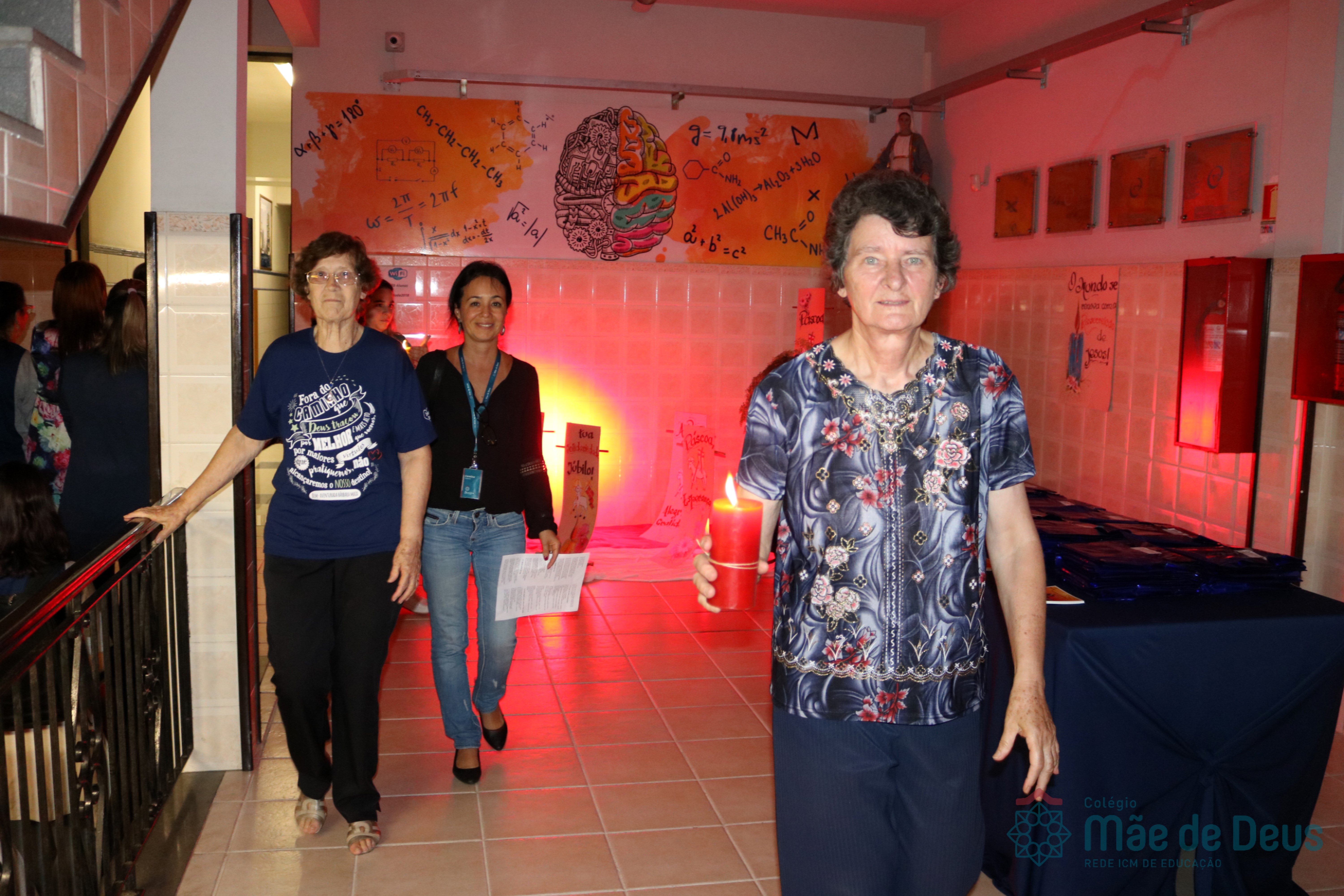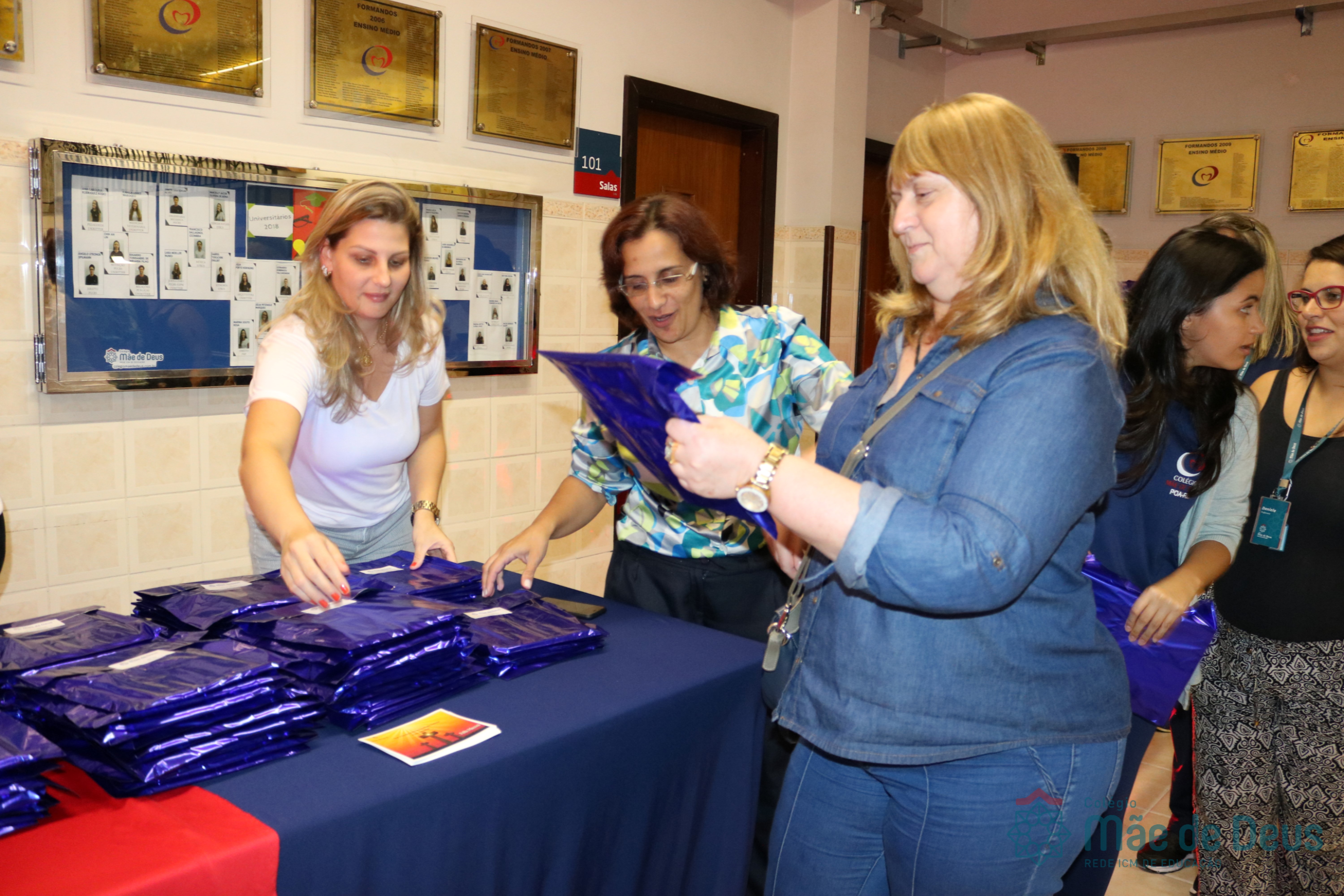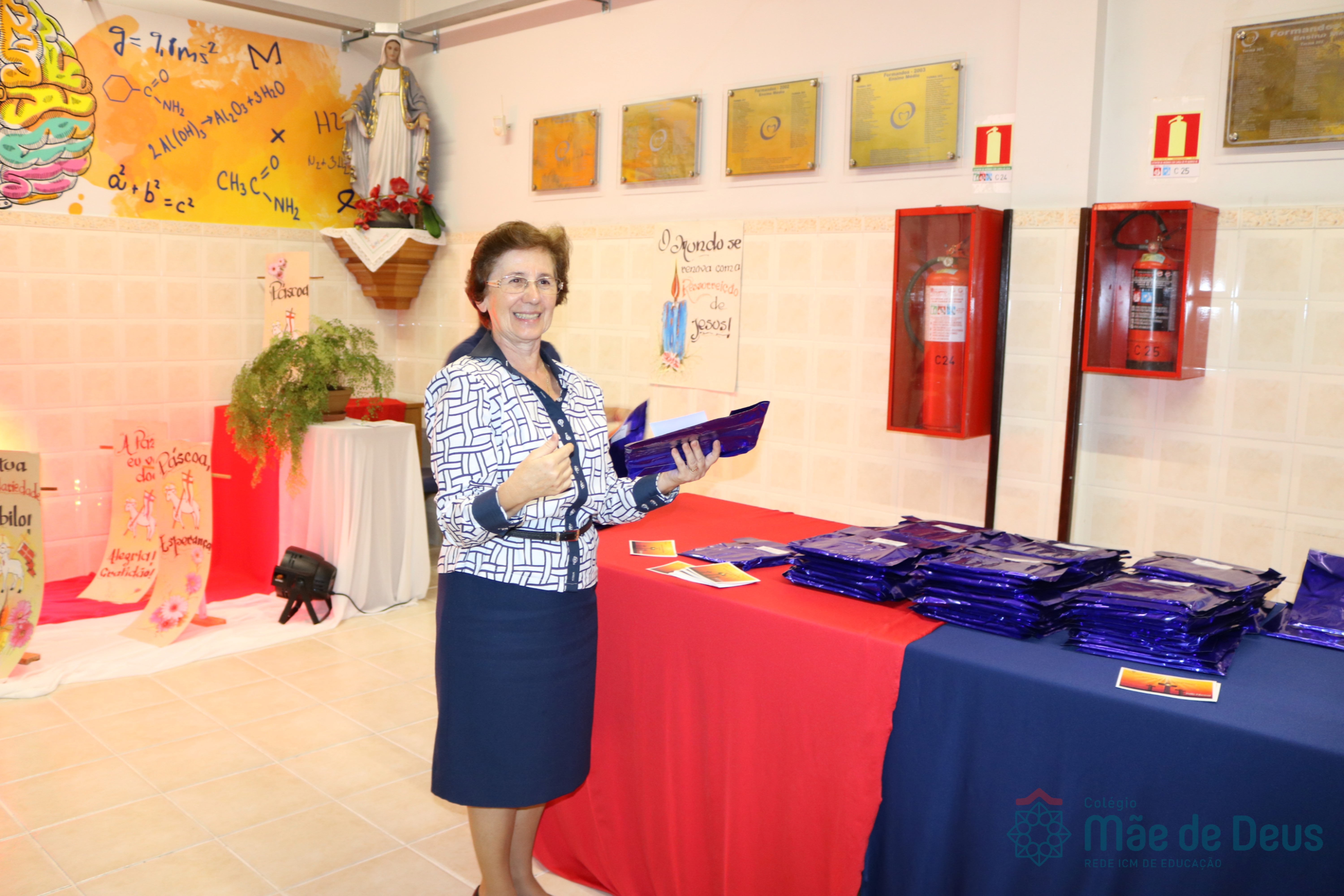 Após ouvir a fala da diretora, Ir. Sueli Gonzatti, e de receber um pequeno mimo, todos se alegraram e confraternizaram, num clima de amizade e comunhão.