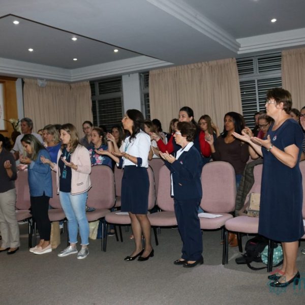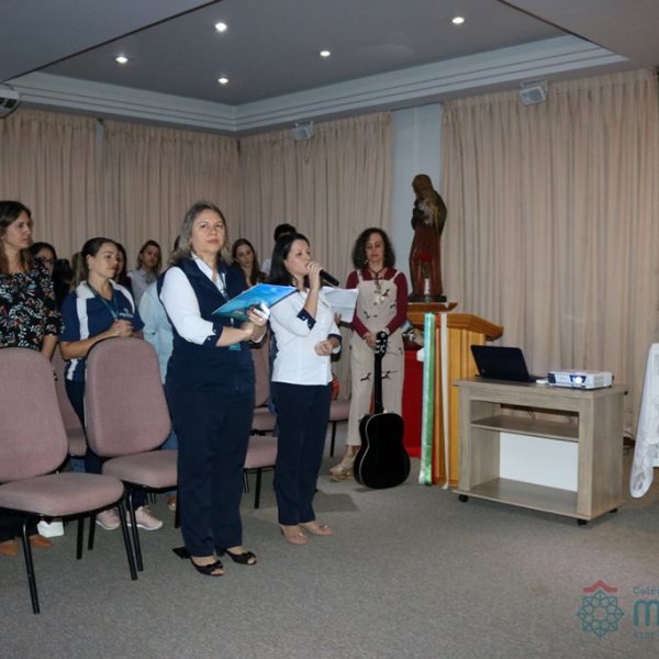 Após a celebração e a palavra da diretora Ir. Sueli Rosane Gonzatti, o grupo confraternizou com comes e bebes e recebeu um pequeno mimo da escola e da AprofuMD (Associação de Professores e Funcionários do Colégio Mãe de Deus).