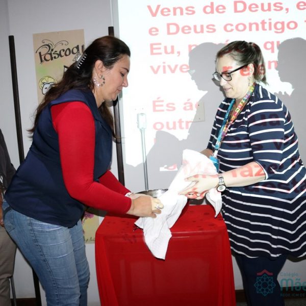 No último dia 17, foi realizada uma bonita Celebração Eucarística com os educadores do nosso Colégio. Com grande fervor e alegria recordou-se a Instituição da Eucaristia e o grande mandamento do amor. Os educadores foram convidados a lavarem as mãos uns dos outros, refletindo que ao lavar as mãos, nos dispomos a caminhar e trabalhar juntos pelo Reino de Deus, Reino de fraternidade, justiça e comunhão. Somente quem serve consegue compreender que o Reino de Deus é diferente de qualquer outro reino. Ao final da celebração todos se abraçaram, desejando uma Feliz Páscoa e a Paz de Jesus.