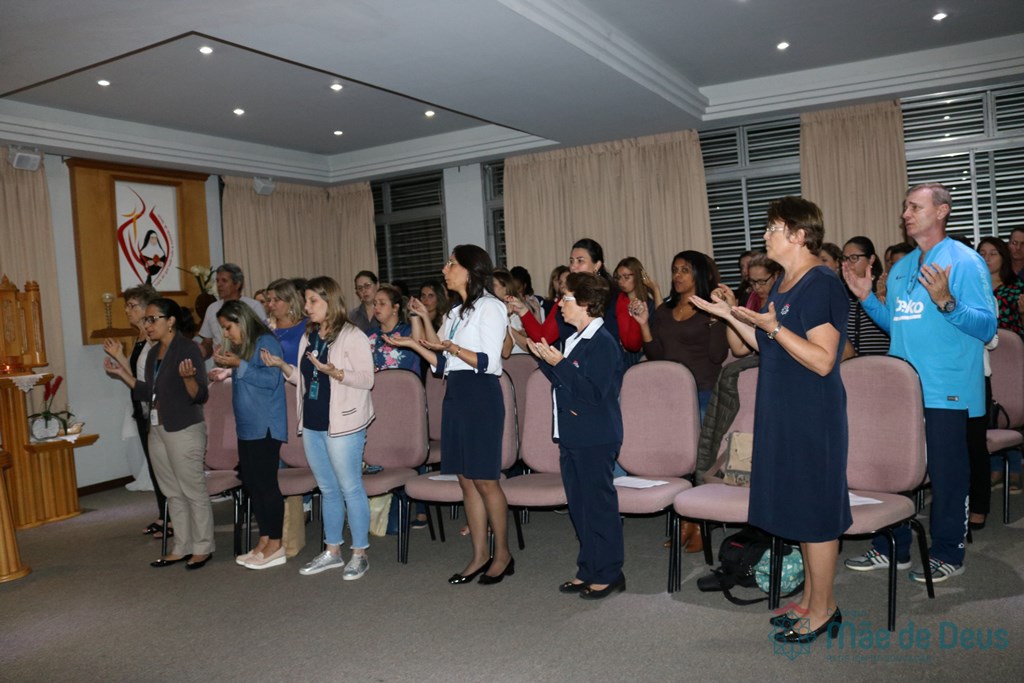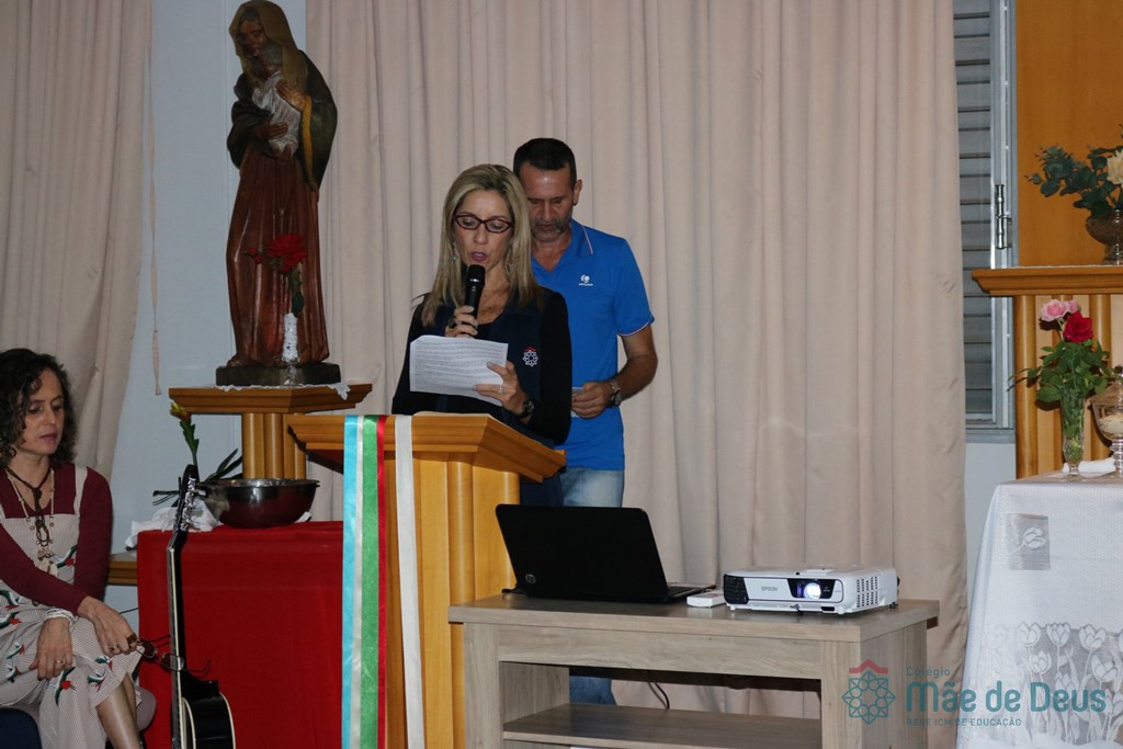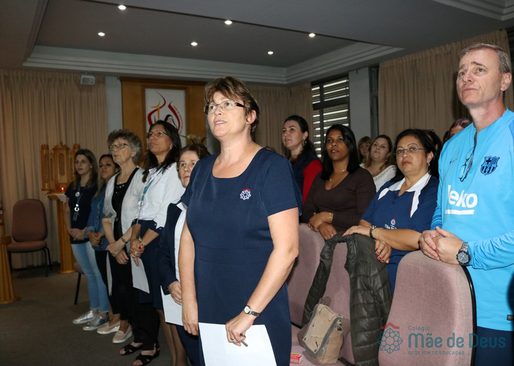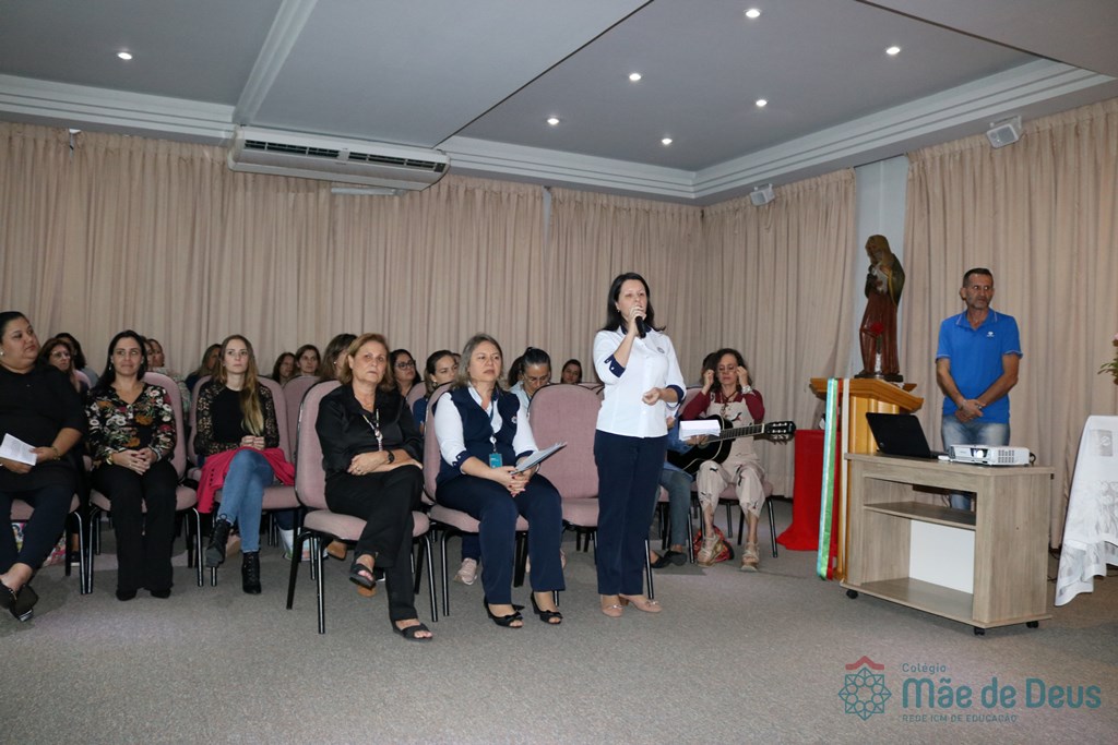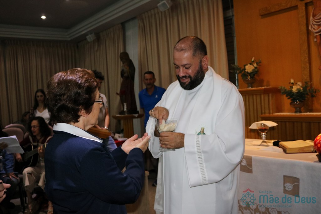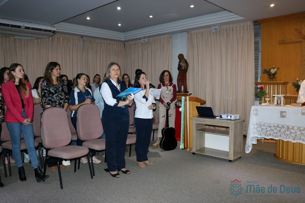 Após a celebração e a palavra da diretora Ir. Sueli Rosane Gonzatti, o grupo confraternizou com comes e bebes e recebeu um pequeno mimo da escola e da AprofuMD (Associação de Professores e Funcionários do Colégio Mãe de Deus).