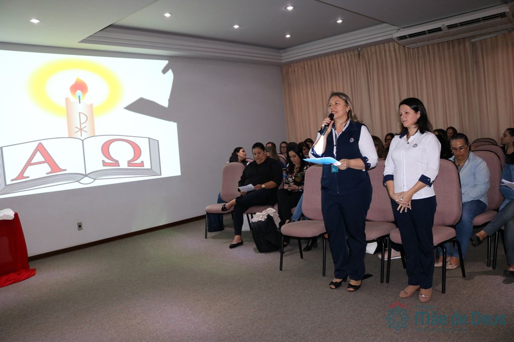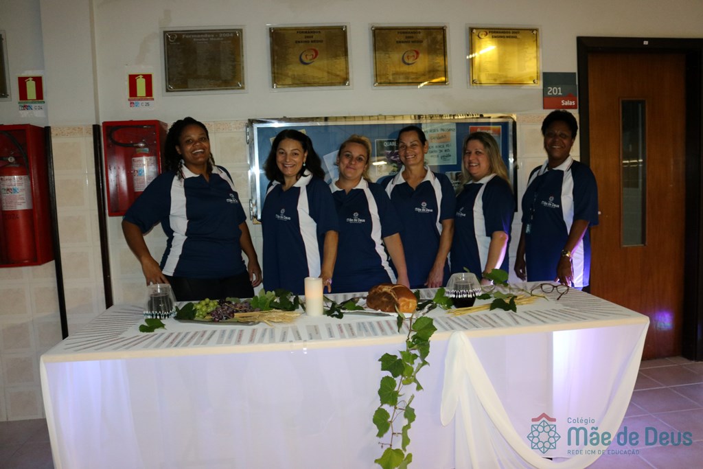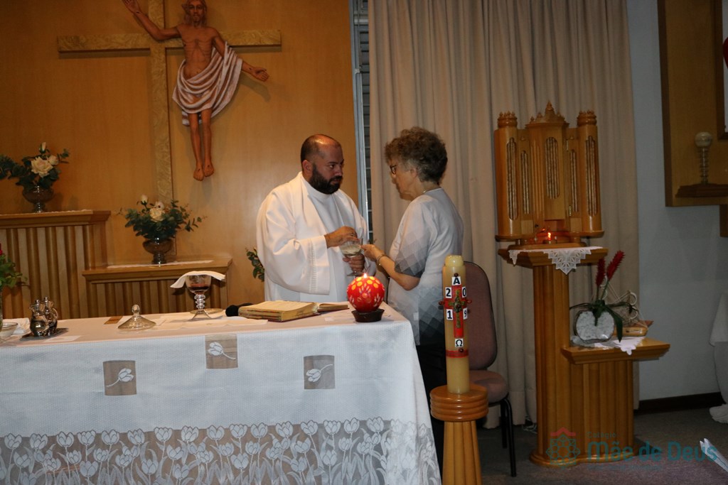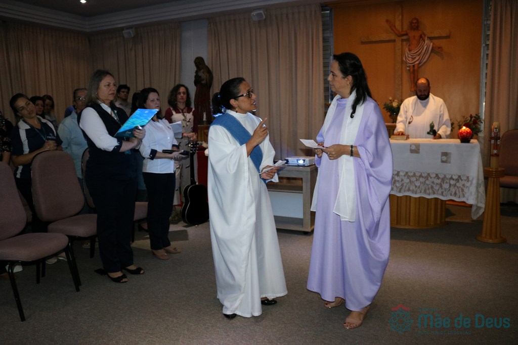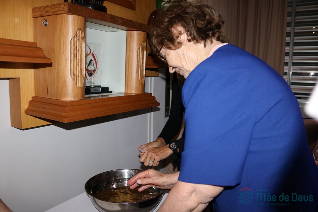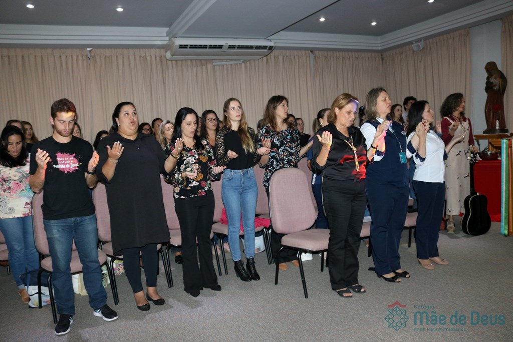 Após a celebração e a palavra da diretora Ir. Sueli Rosane Gonzatti, o grupo confraternizou com comes e bebes e recebeu um pequeno mimo da escola e da AprofuMD (Associação de Professores e Funcionários do Colégio Mãe de Deus).