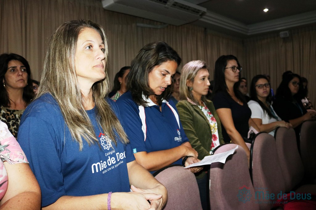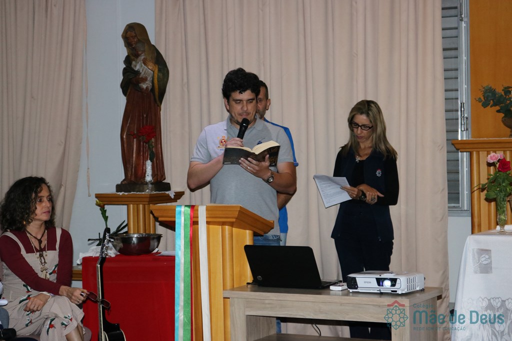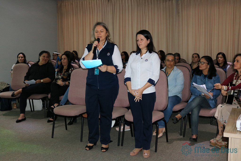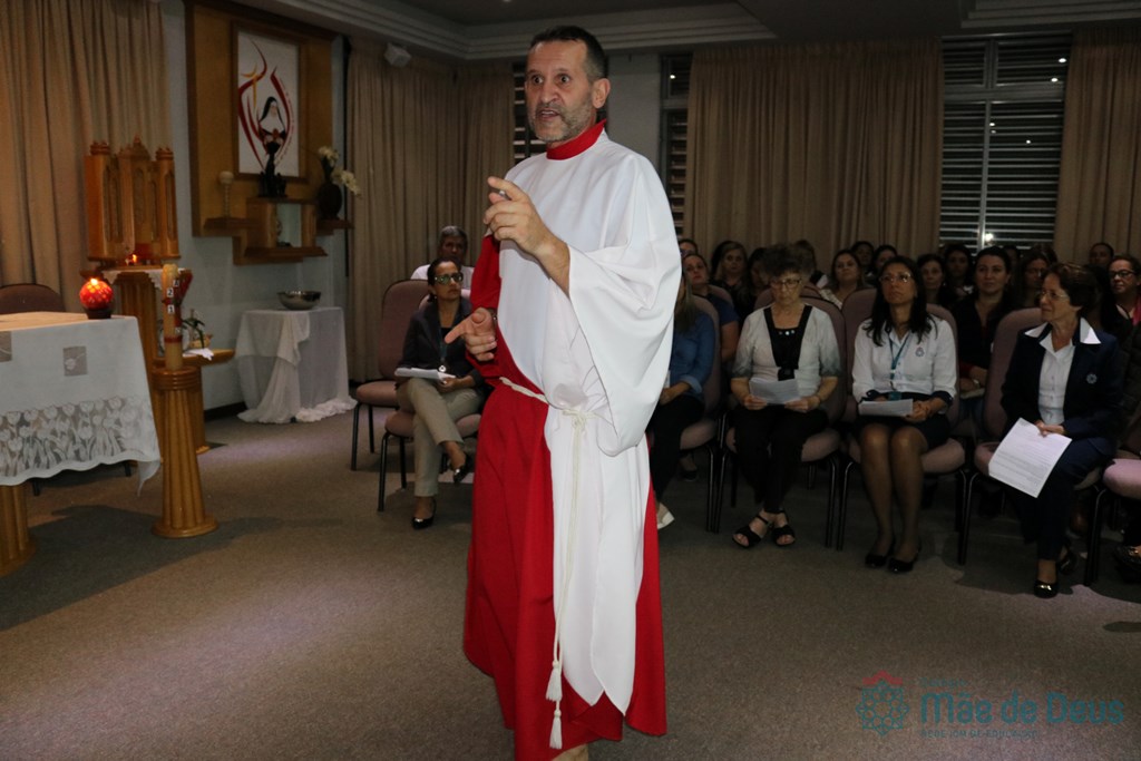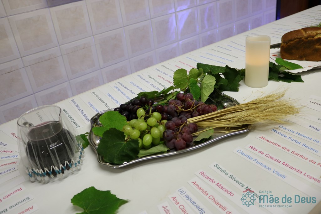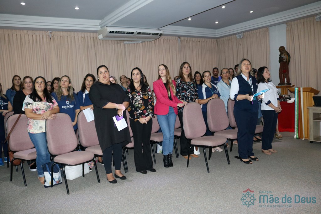 Após a celebração e a palavra da diretora Ir. Sueli Rosane Gonzatti, o grupo confraternizou com comes e bebes e recebeu um pequeno mimo da escola e da AprofuMD (Associação de Professores e Funcionários do Colégio Mãe de Deus).