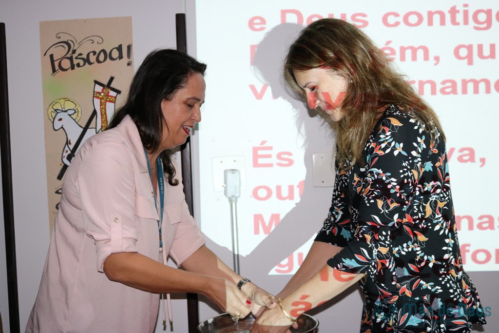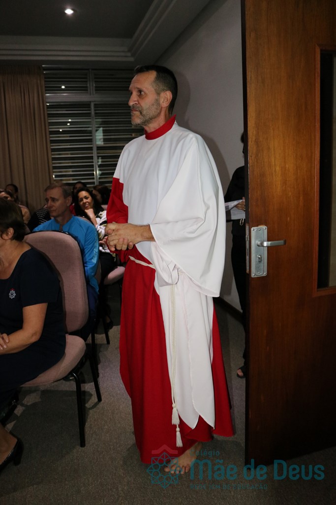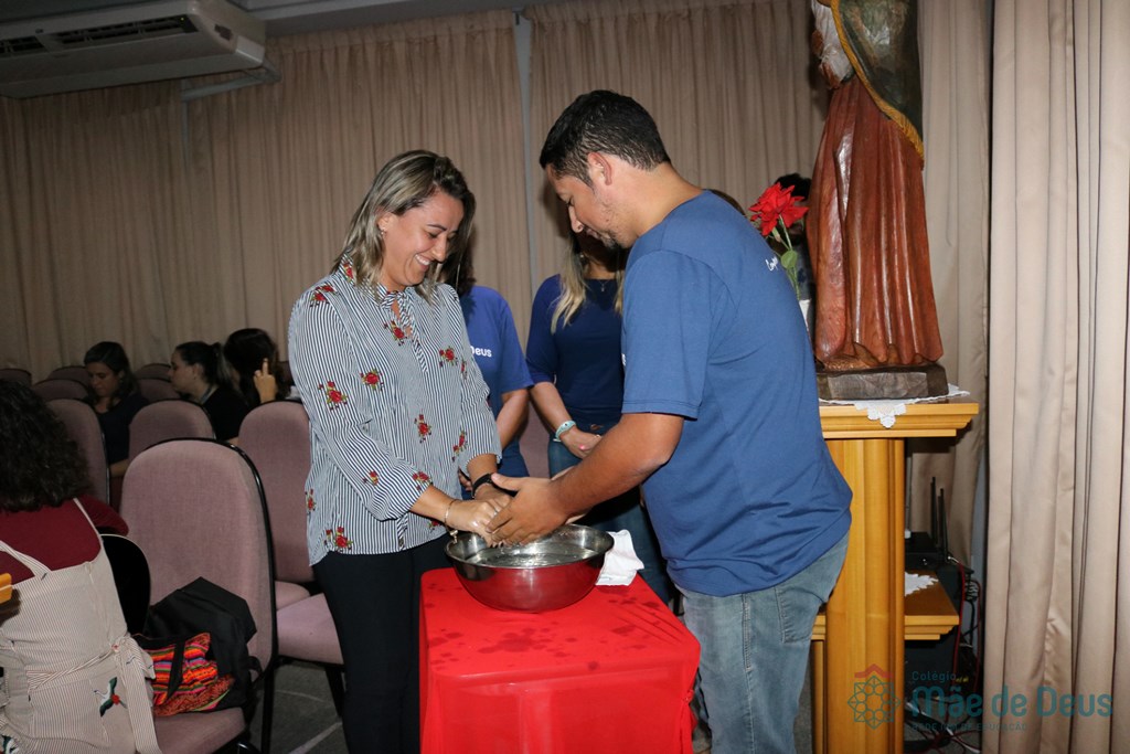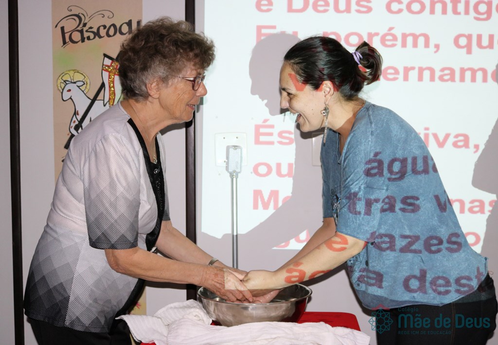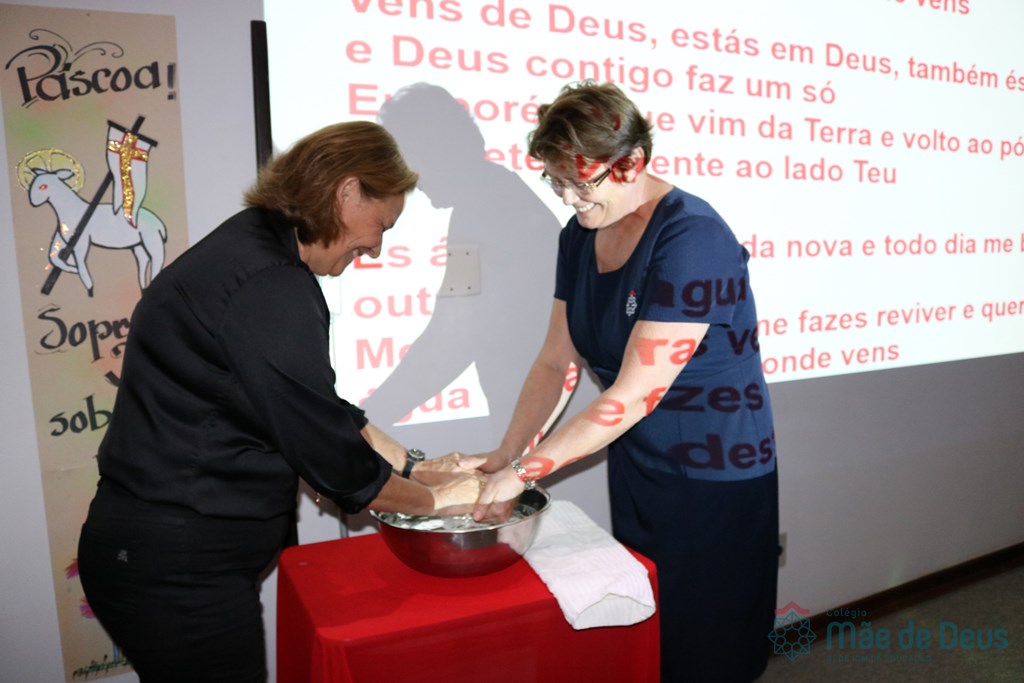 No último dia 17, foi realizada uma bonita Celebração Eucarística com os educadores do nosso Colégio. Com grande fervor e alegria recordou-se a Instituição da Eucaristia e o grande mandamento do amor. Os educadores foram convidados a lavarem as mãos uns dos outros, refletindo que ao lavar as mãos, nos dispomos a caminhar e trabalhar juntos pelo Reino de Deus, Reino de fraternidade, justiça e comunhão. Somente quem serve consegue compreender que o Reino de Deus é diferente de qualquer outro reino. Ao final da celebração todos se abraçaram, desejando uma Feliz Páscoa e a Paz de Jesus.