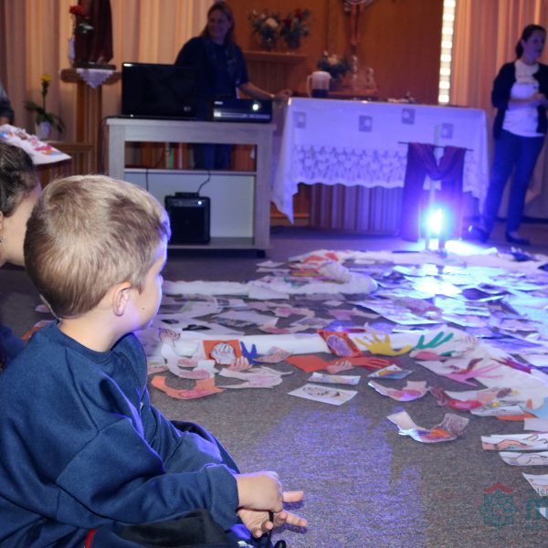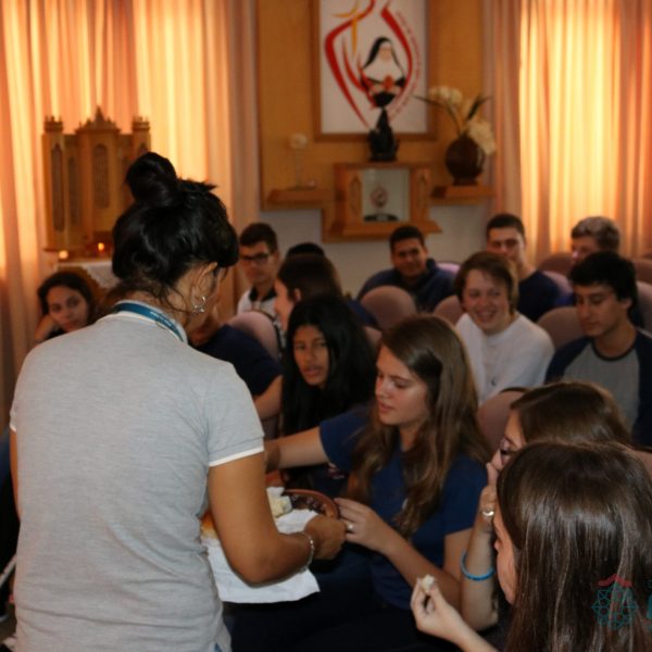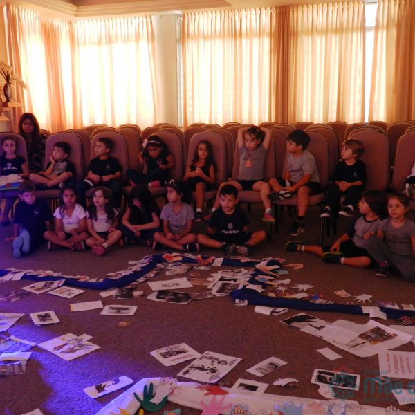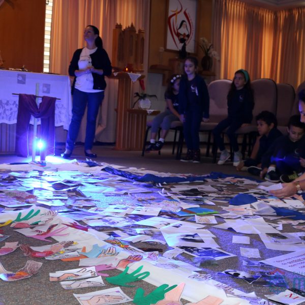 Todos os alunos receberam o símbolo de uma mão, em que registraram sinais de vida e de paz que desejam aos colegas e a todas as pessoas. Algumas turmas fizeram a troca das mãos entre os colegas e outras as depositaram na Capela, ao redor da cruz.