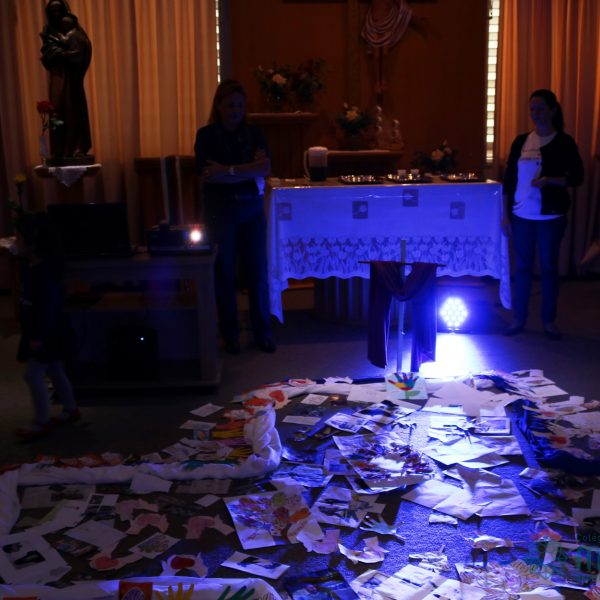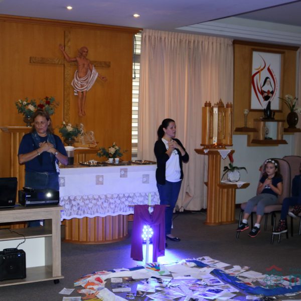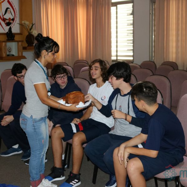Nos Anos Finais do Ensino Fundamental e Ensino Médio realizou-se a Celebração Penitencial, com recortes de situações de violência, com os quais formou-se uma grande cruz. A Superação da Violência é o tema da Campanha da Fraternidade 2018. Também realizou-se a partilha do pão, trazido pelos alunos.
