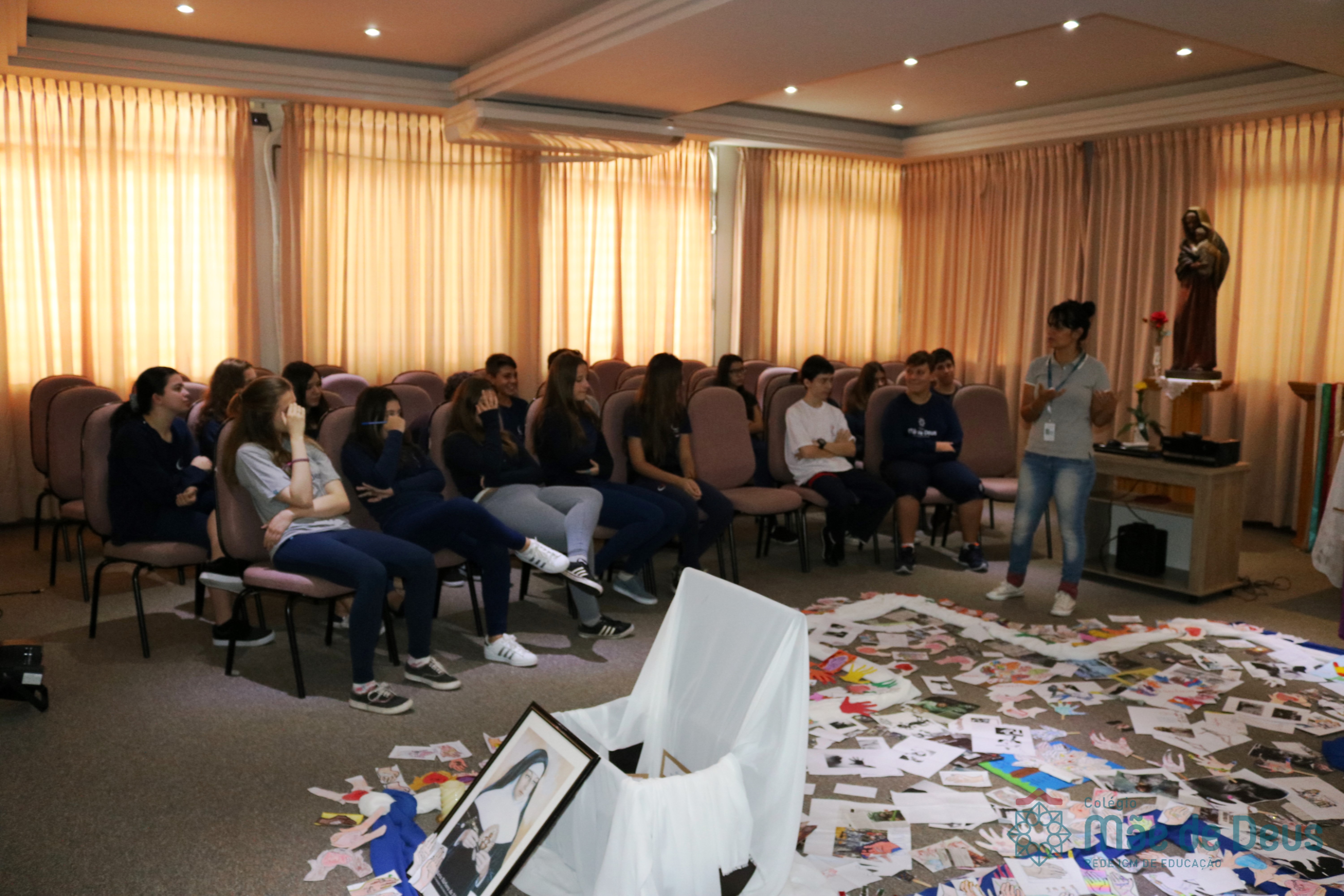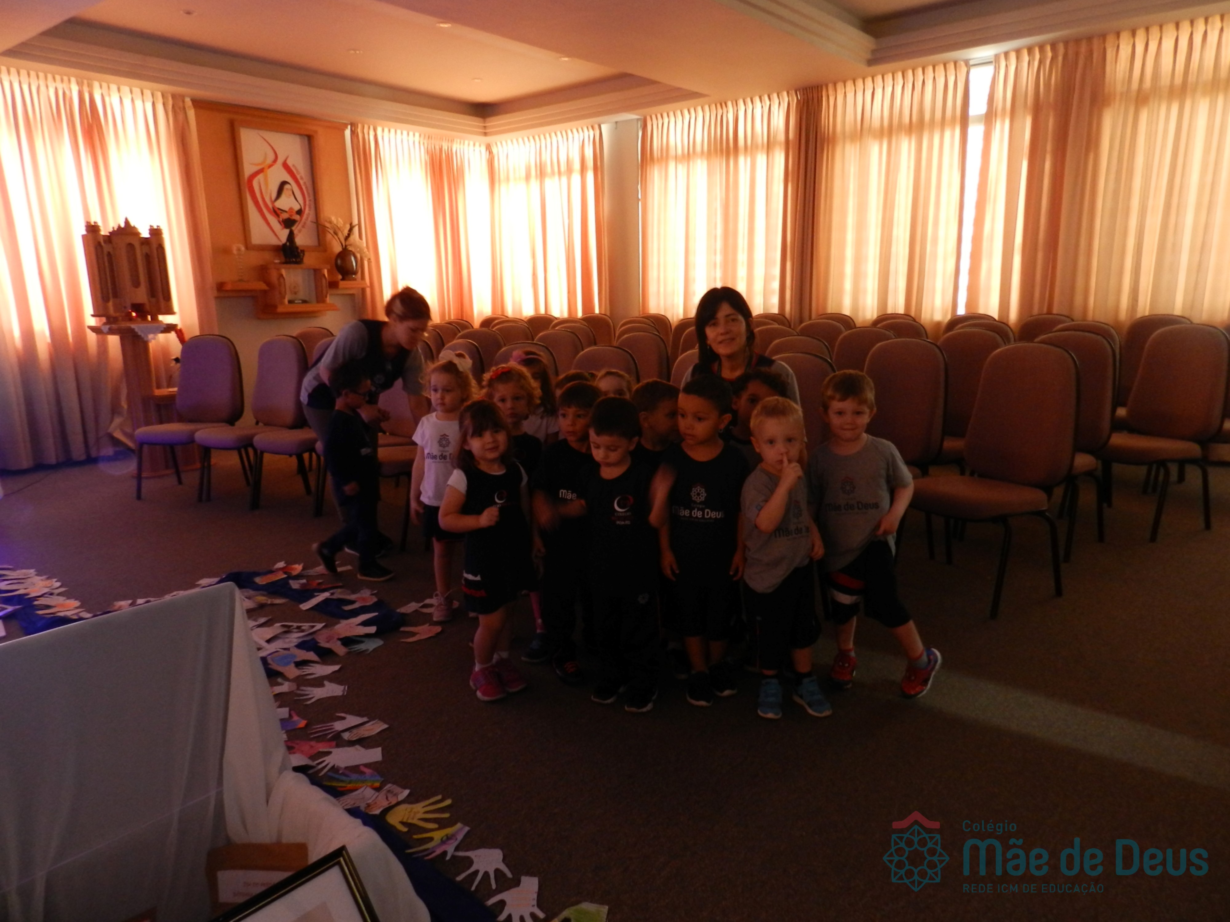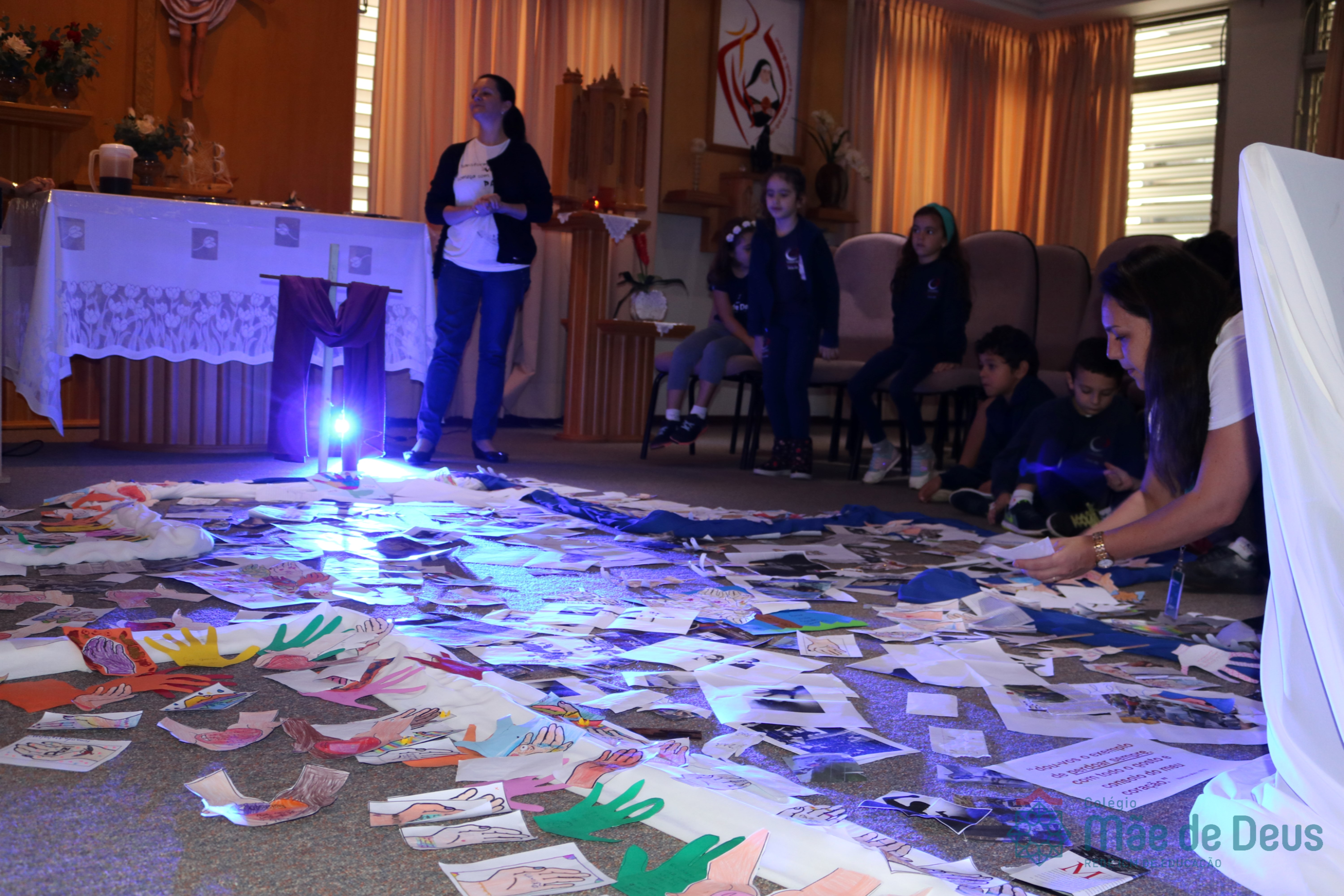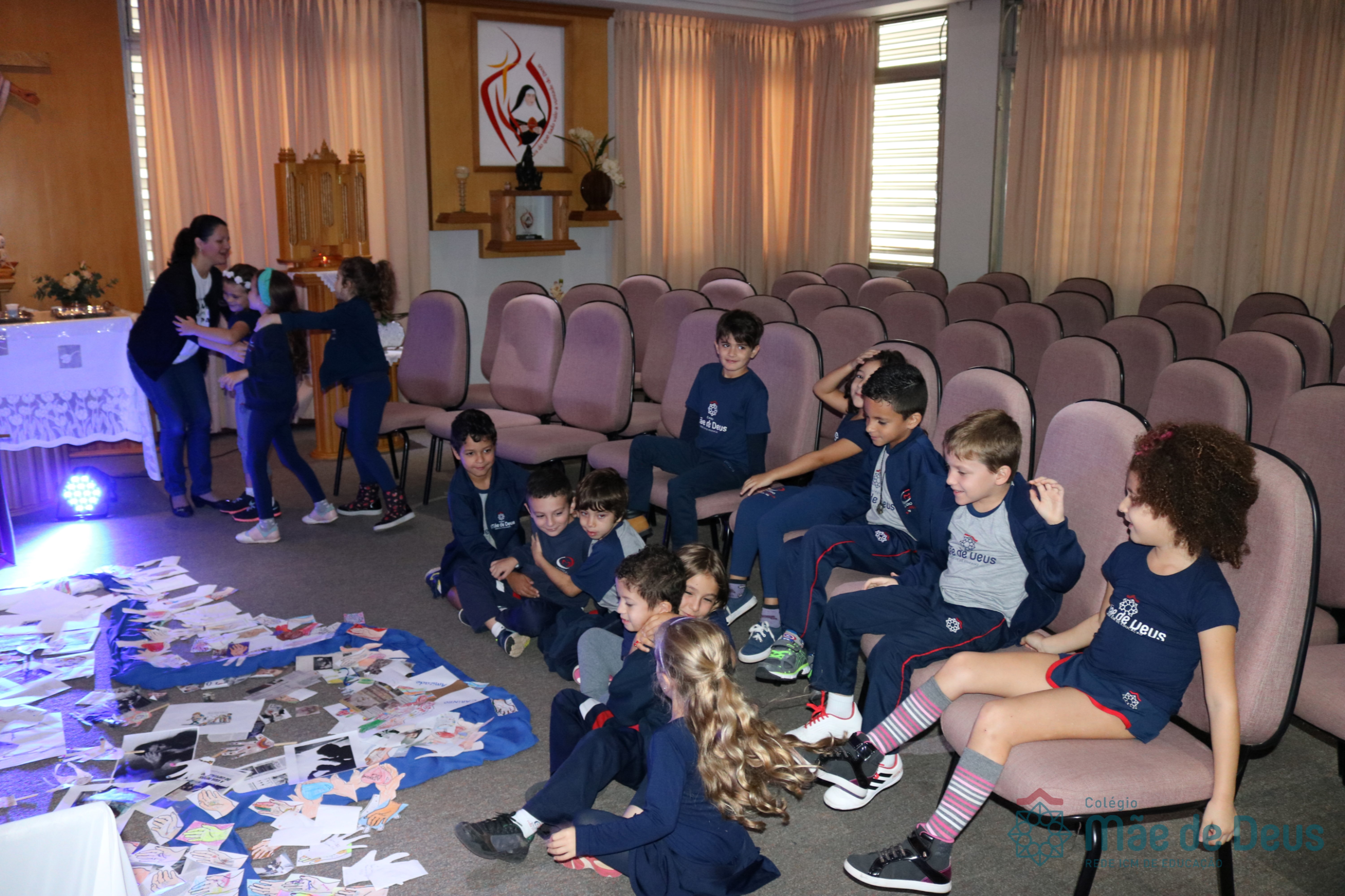 Todos os alunos receberam o símbolo de uma mão, em que registraram sinais de vida e de paz que desejam aos colegas e a todas as pessoas. Algumas turmas fizeram a troca das mãos entre os colegas e outras as depositaram na Capela, ao redor da cruz.