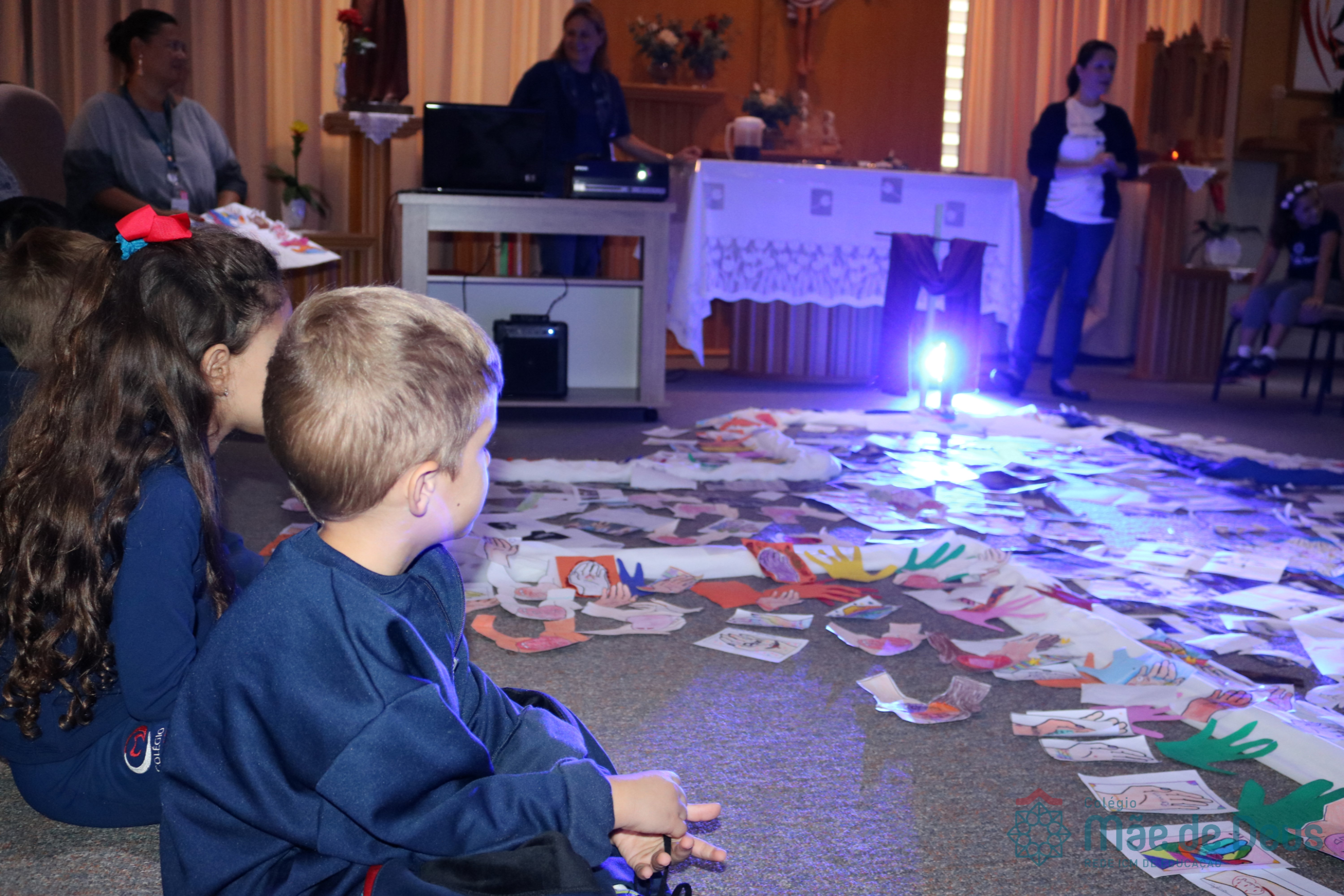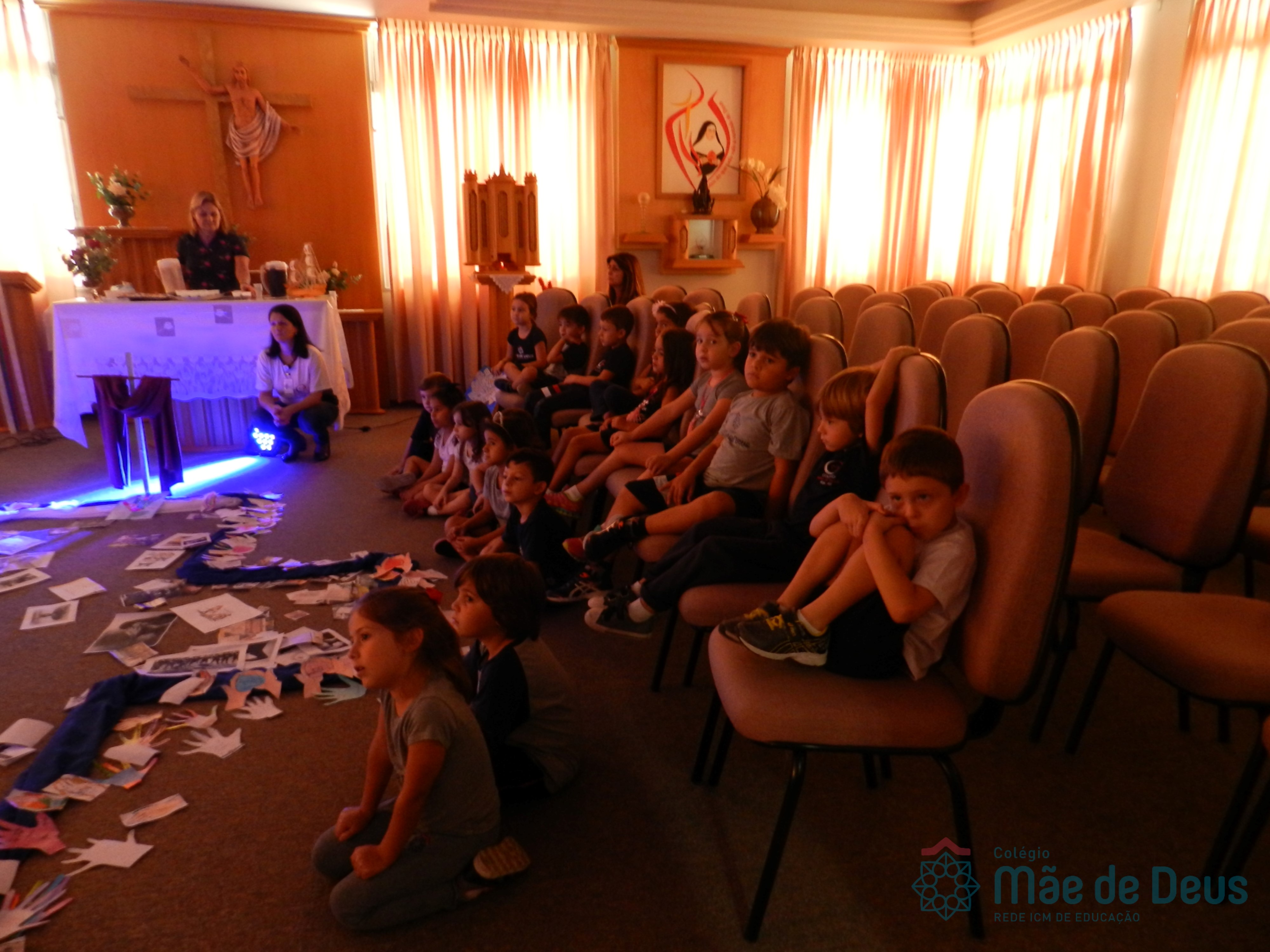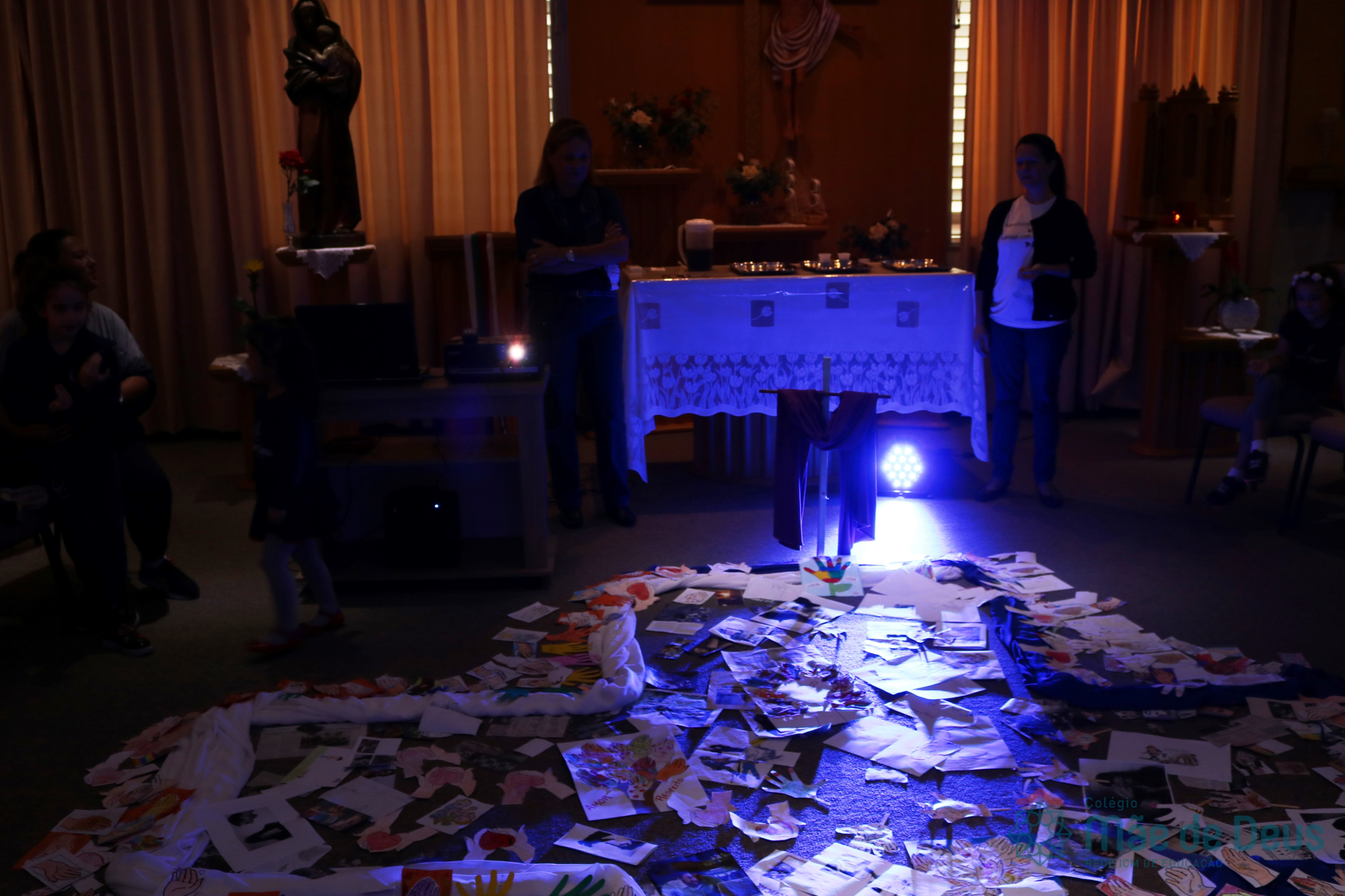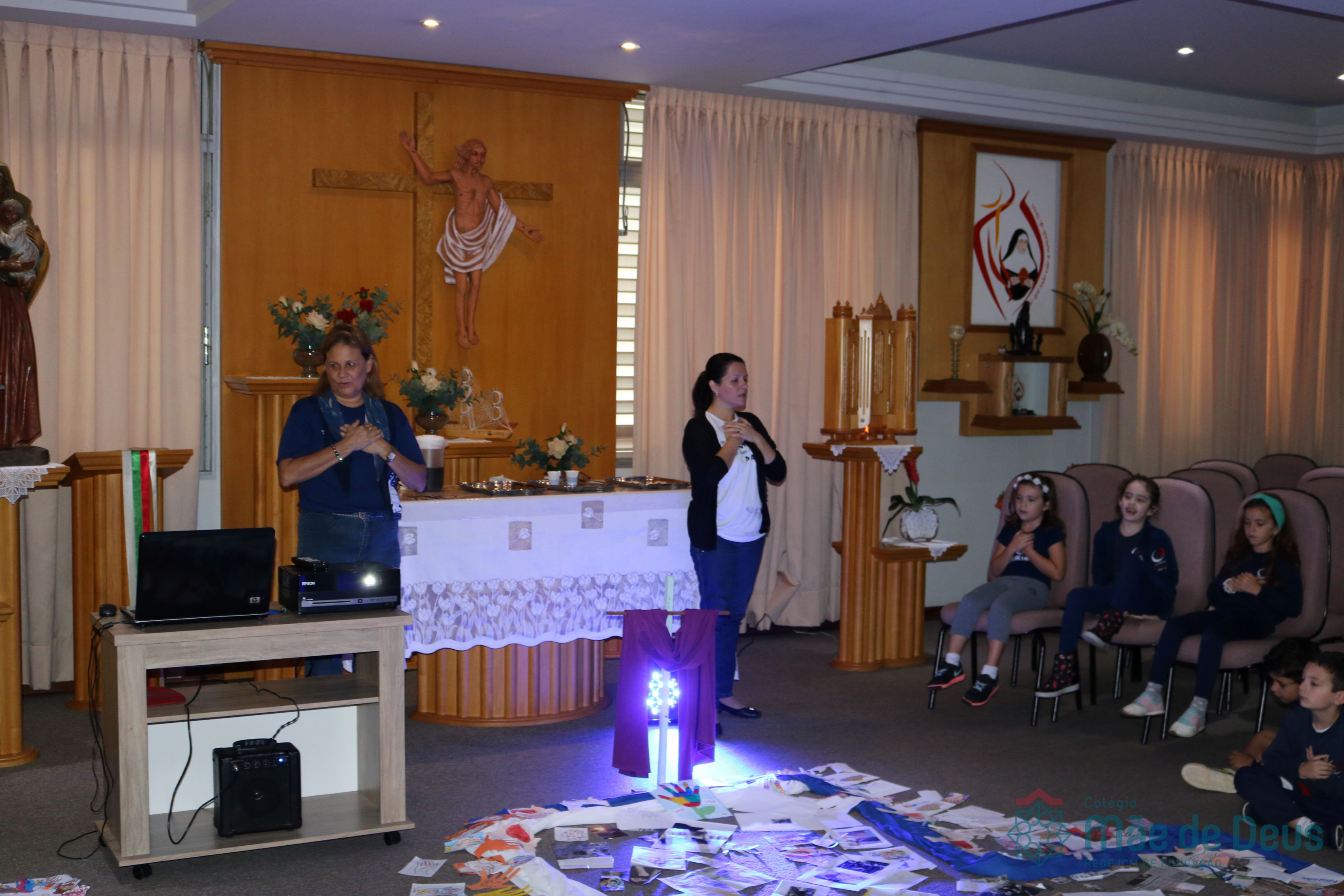 Todos os alunos receberam o símbolo de uma mão, em que registraram sinais de vida e de paz que desejam aos colegas e a todas as pessoas. Algumas turmas fizeram a troca das mãos entre os colegas e outras as depositaram na Capela, ao redor da cruz.