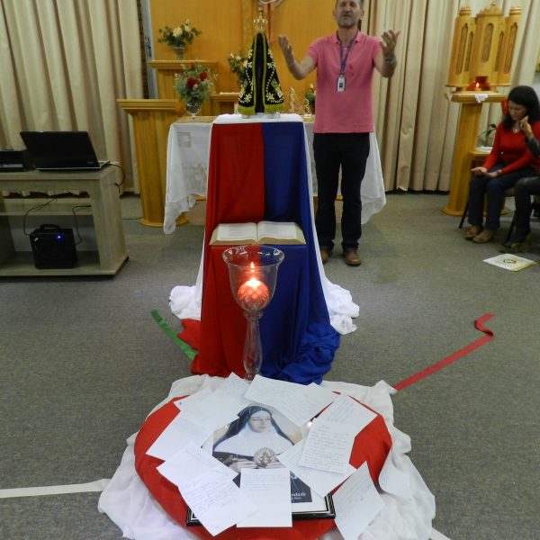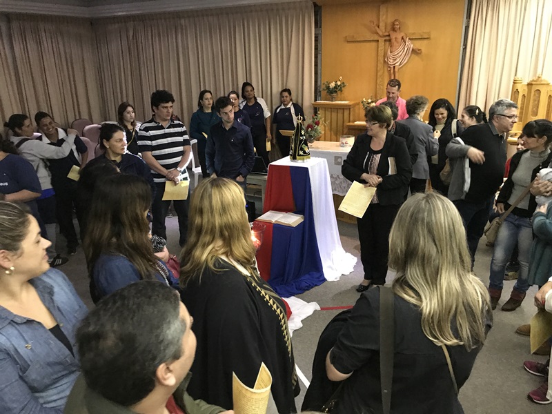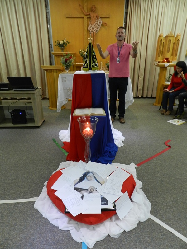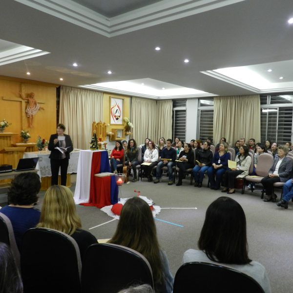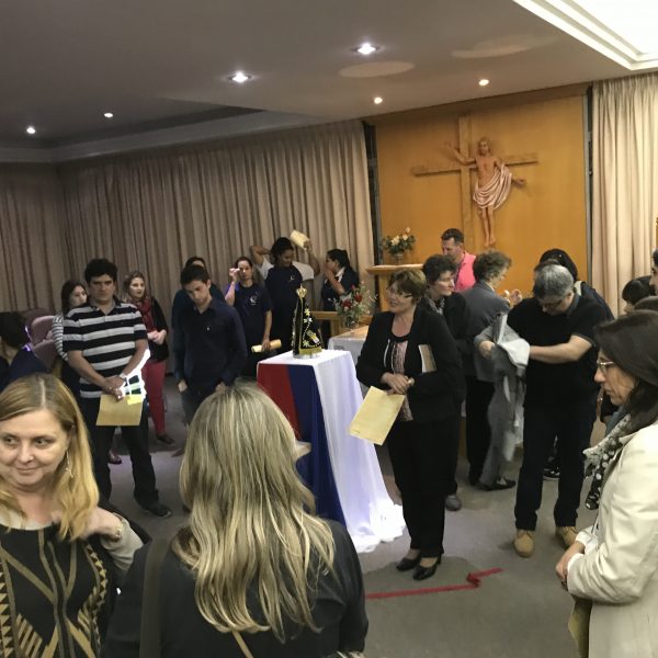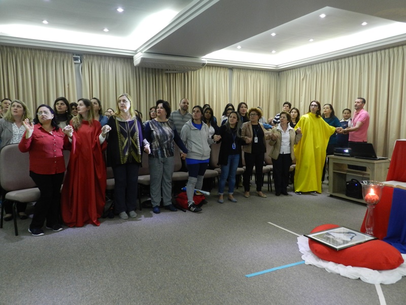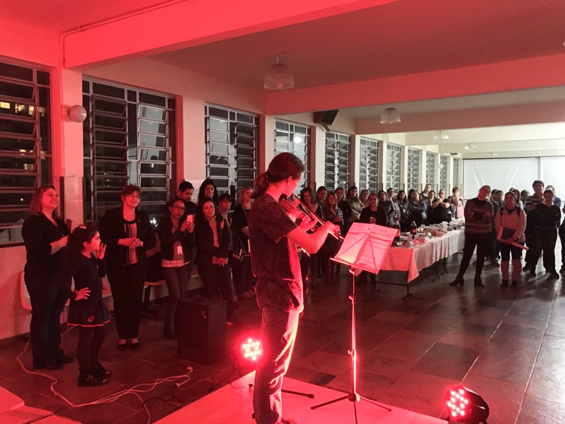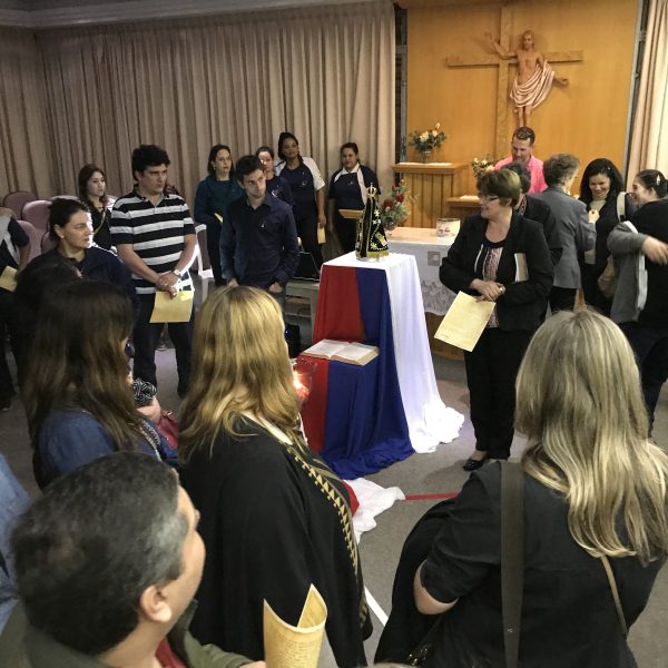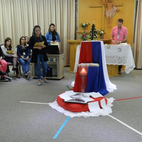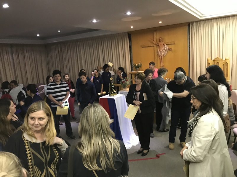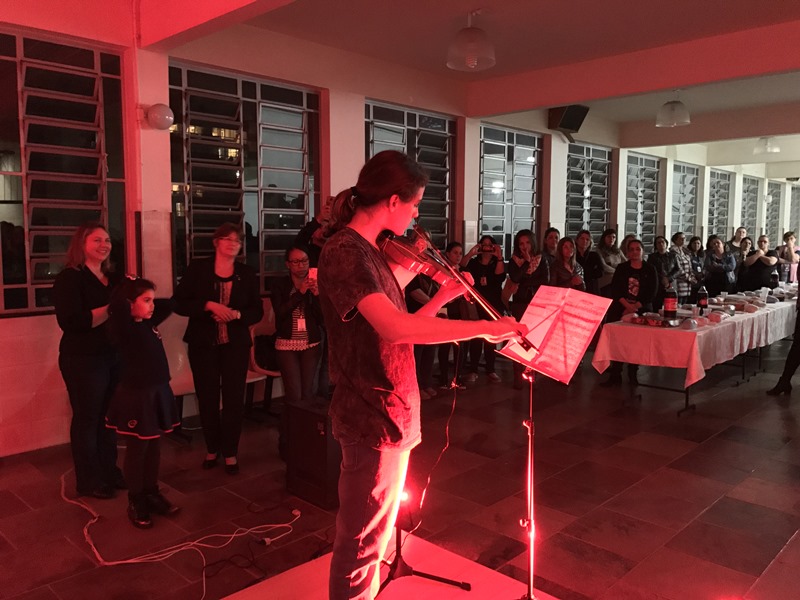 A equipe diretiva do Colégio Mãe de Deus, celebrou o dia do professor, no dia 11 de outubro. Com muito carinho, preparou uma linda celebração e após, acolheu os educadores no saguão do Colégio ao som do violino entoado pelo aluno Samuel Zinni, da turma 81. Além de um saboroso coquetel, cada educador recebeu uma cadeira personalizada como presente.