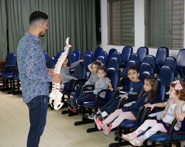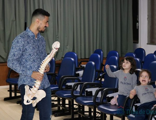 Os nossos pequenos cientistas ouviram com atenção e interesse sobre os cuidados que devemos ter, desde cedo, com a nossa coluna. Foi um momento de muito aprendizado e interação!