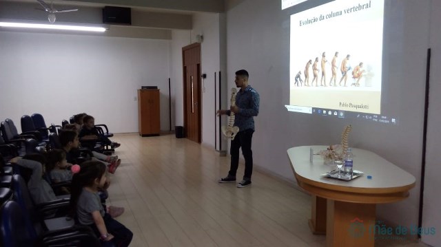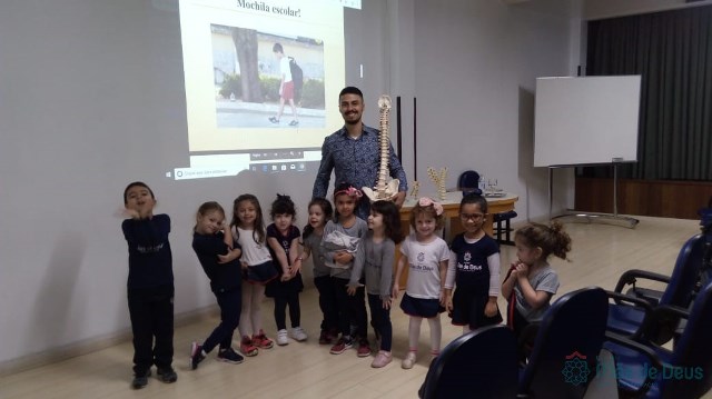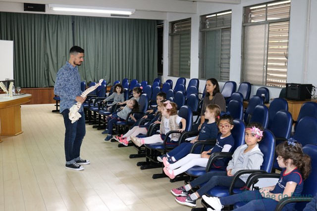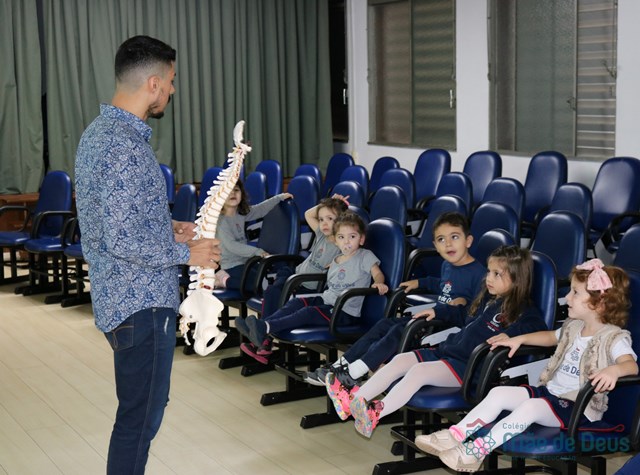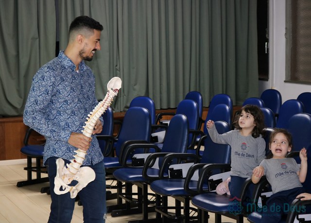 Os nossos pequenos cientistas ouviram com atenção e interesse sobre os cuidados que devemos ter, desde cedo, com a nossa coluna. Foi um momento de muito aprendizado e interação!