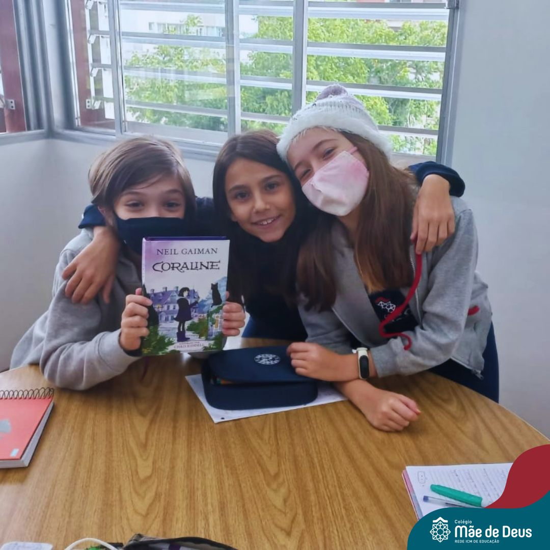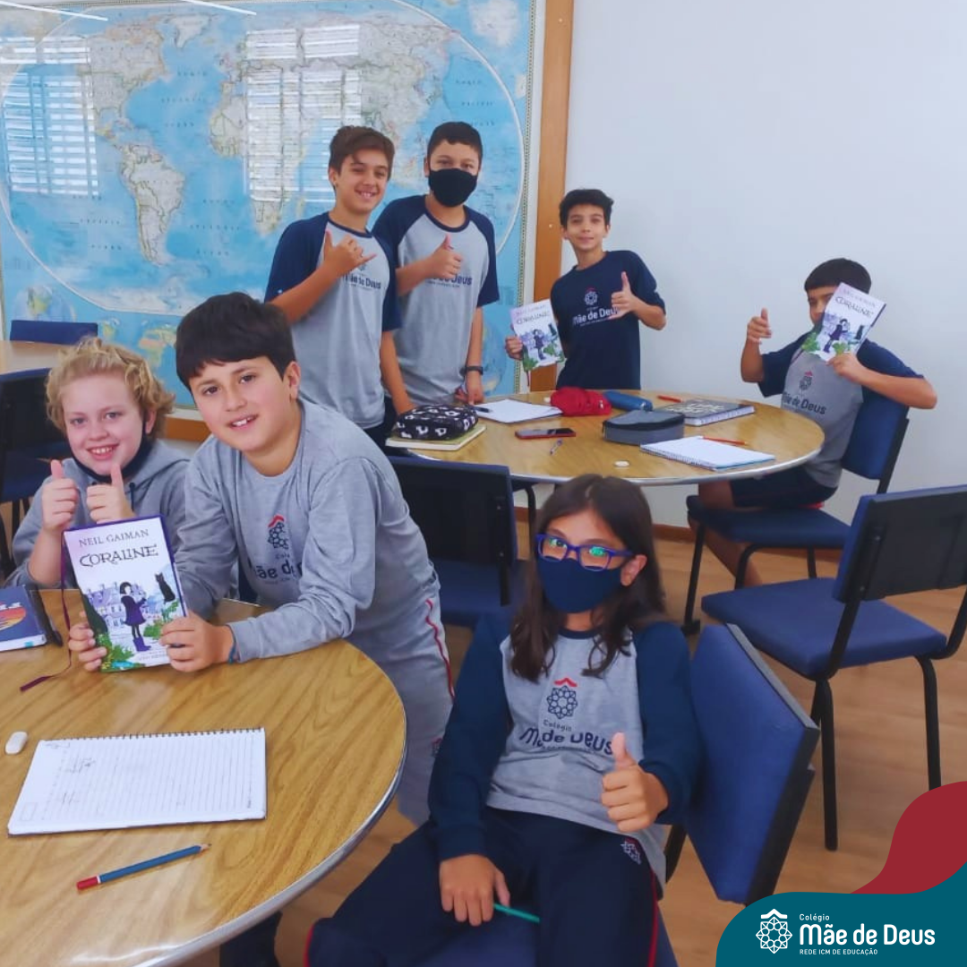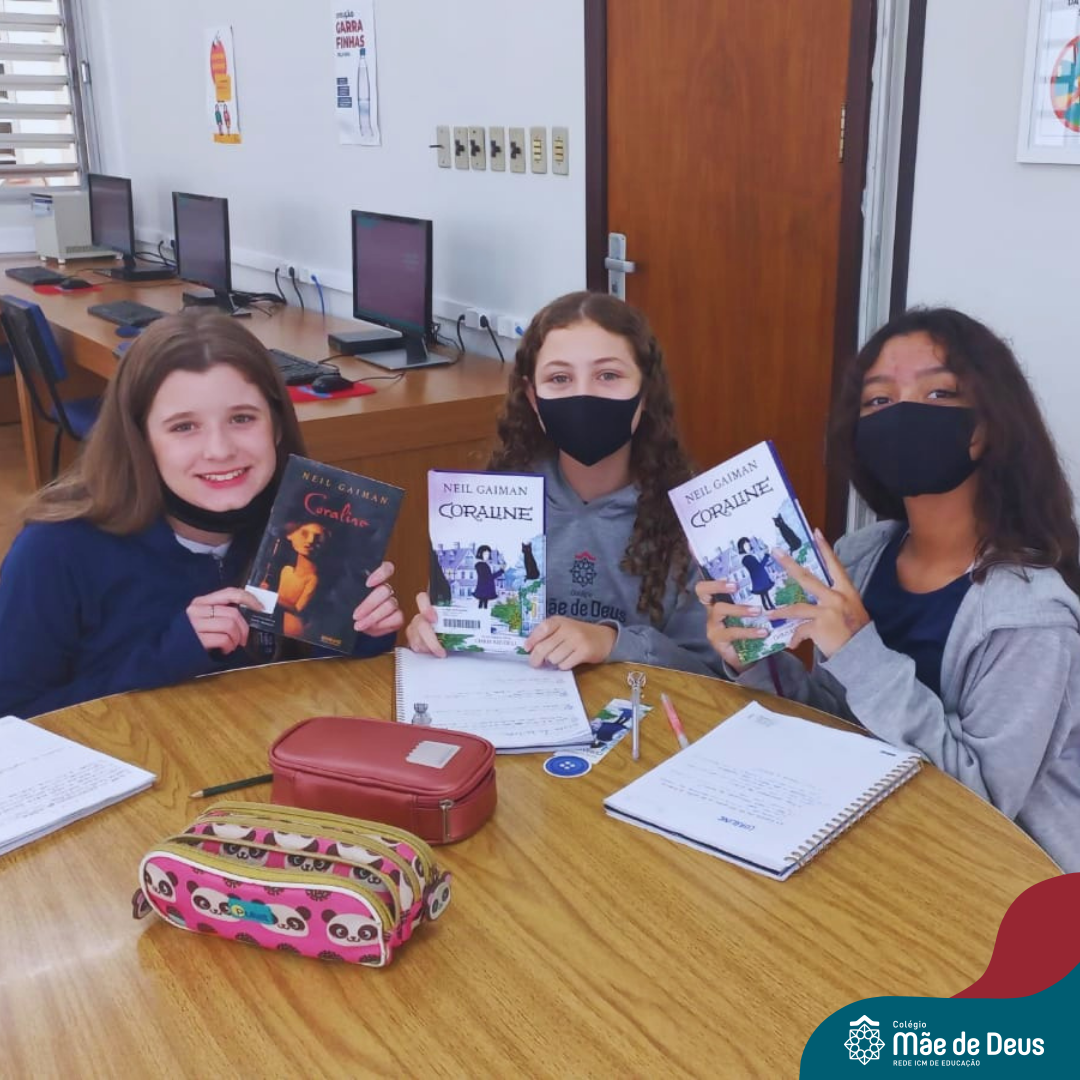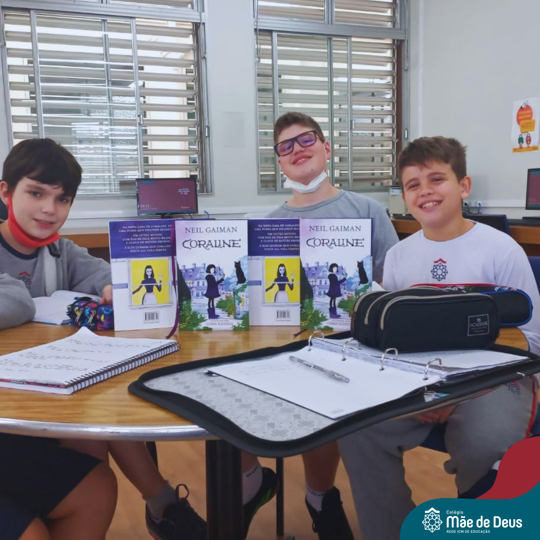 As turmas do 6º Ano do Ensino Fundamental foram à biblioteca do Colégio para debater o livro Coraline, a história de uma menina corajosa.