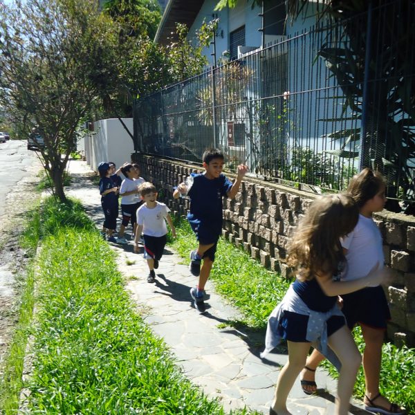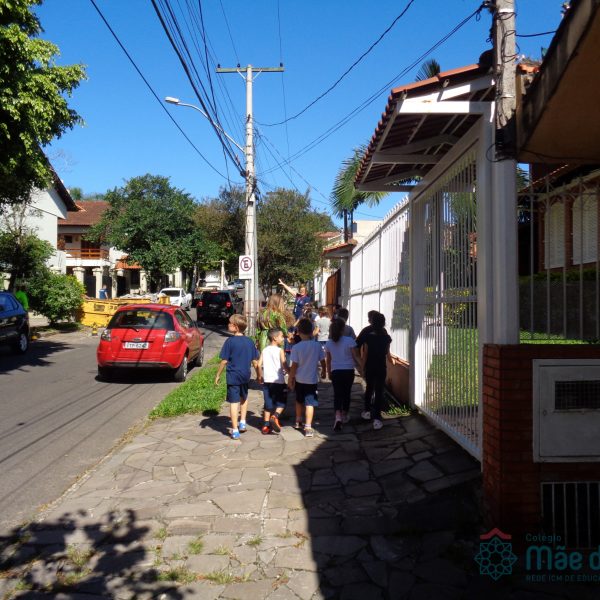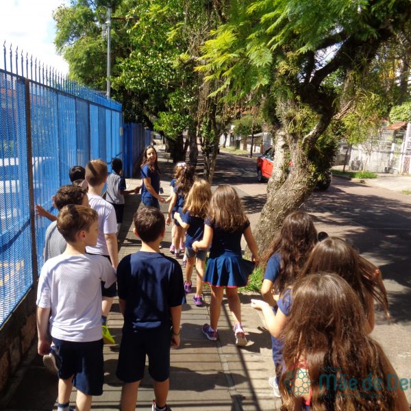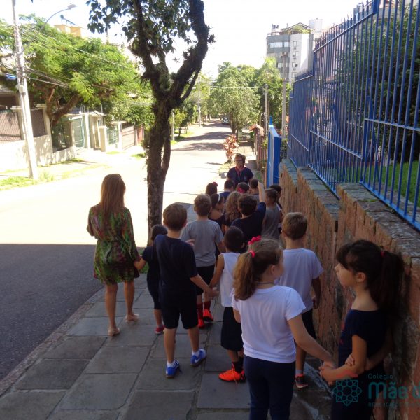 As turmas do 2º ano do Ensino Fundamental, caminharam pelo quarteirão do Colégio para vivenciar o estudo que está sendo realizado sobre o Bairro Tristeza. Conheceram as ruas do entorno do Colégio e posteriormente fizeram um registro cartográfico sobre esta experiência, dando continuidade ao projeto em aula.Foi um experiência animada de muitas descobertas!