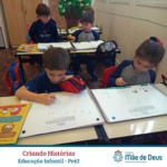 A partir da história “Perdidos na Mata”, as turmas do Pré2, da Educação Infantil, criaram suas próprias histórias. Desta forma, vivenciaram situações que as proporcionaram sentir alegria, medo, tristeza, ajudando-as a resolverem conflitos e criando expectativas e estratégias para as ações criadas.
