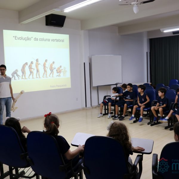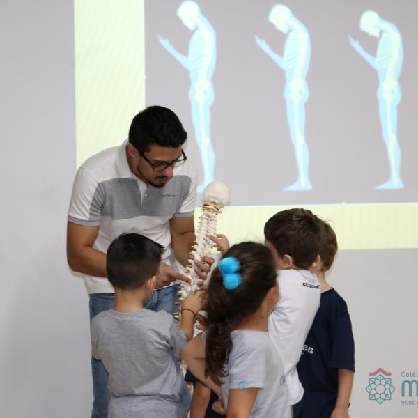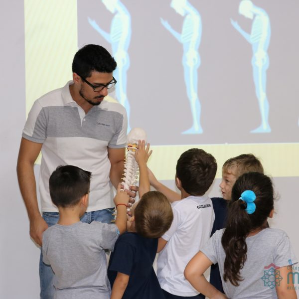 Durante o mês de abril, o Clubinho de Ciências (TuiMD) contou com uma presença muito especial. O quiropraxista Pablo Pasqualotti, ex aluno da nossa Escola, falou sobre a importância e os cuidados que devemos ter com a coluna vertebral desde cedo. O uso do celular, tablet e computador, a postura ao sentar ou caminhar, assim como carregar a mochila foram alguns dos aspectos abordados que instigaram os nossos pequenos cientistas!