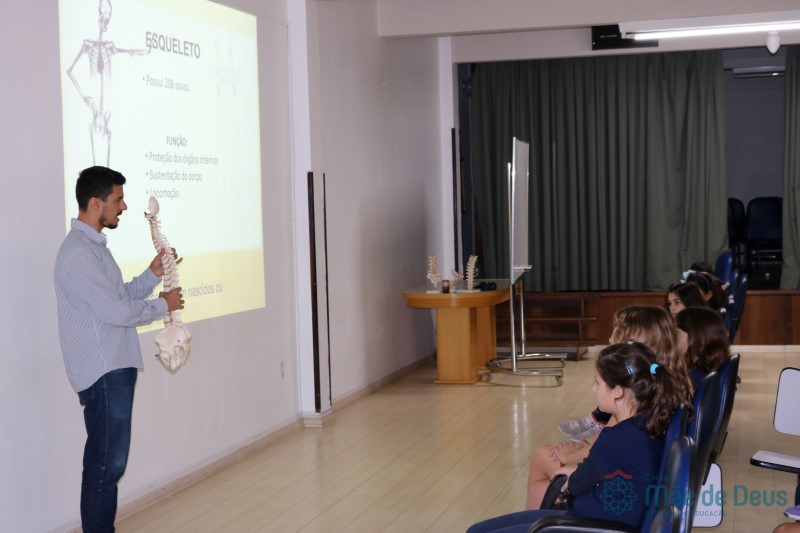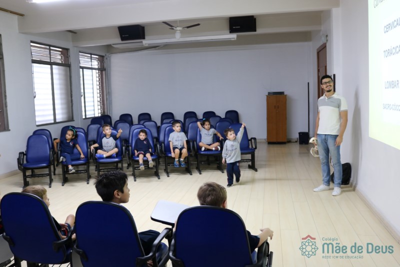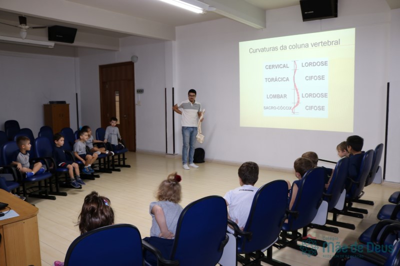 Durante o mês de abril, o Clubinho de Ciências (TuiMD) contou com uma presença muito especial. O quiropraxista Pablo Pasqualotti, ex aluno da nossa Escola, falou sobre a importância e os cuidados que devemos ter com a coluna vertebral desde cedo. O uso do celular, tablet e computador, a postura ao sentar ou caminhar, assim como carregar a mochila foram alguns dos aspectos abordados que instigaram os nossos pequenos cientistas!