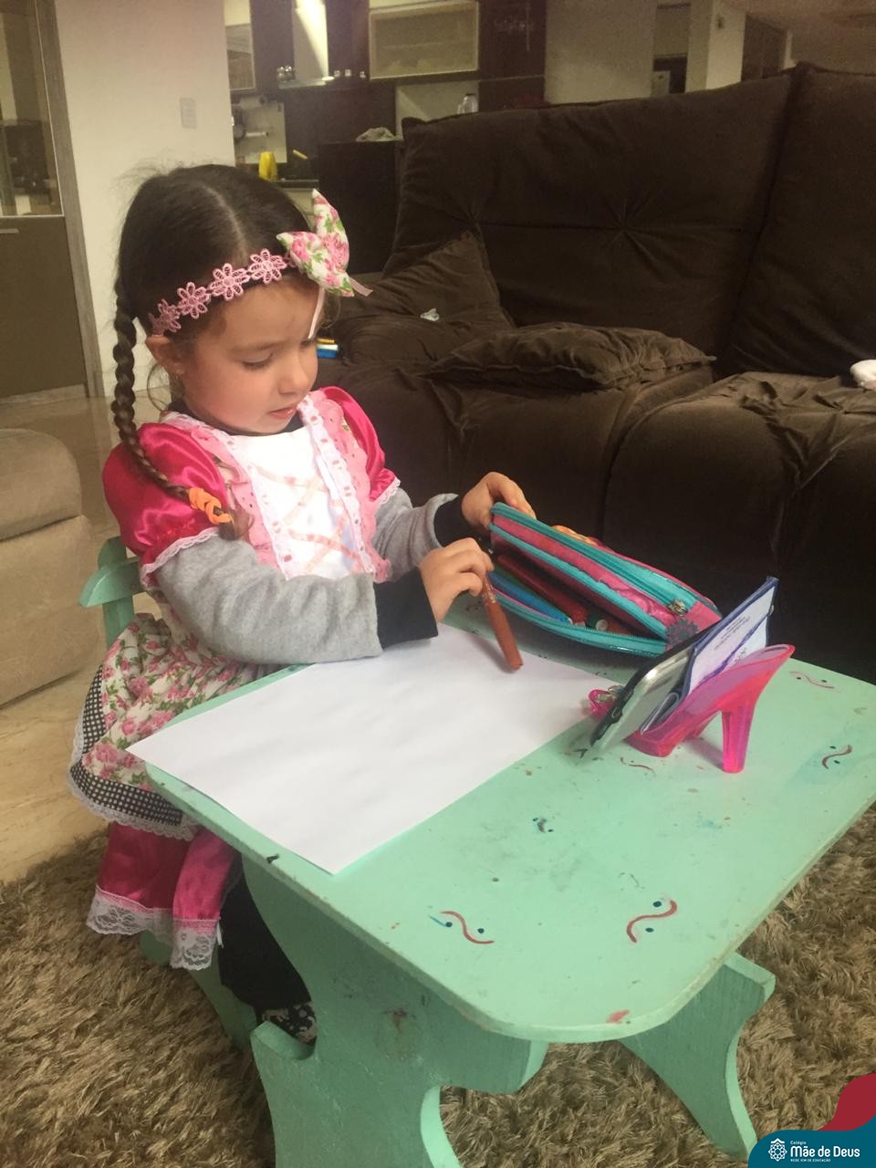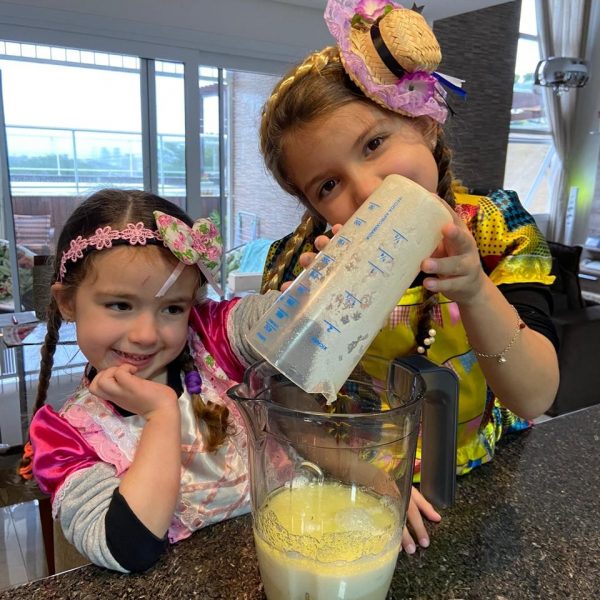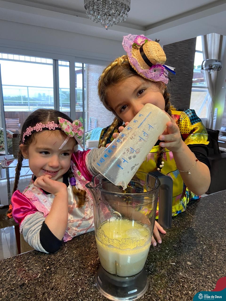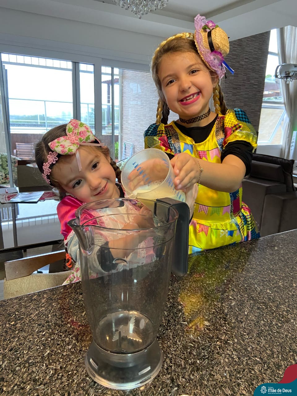 As alunas Catarina e Isabel do Maternal, a partir da proposta das atividades domiciliares, preparam um bolo de milho com sua família e compartilharam toda a gostosura desse prato típico.