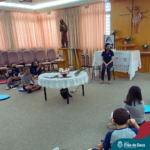 As turmas da Educação Infantil e dos Anos Iniciais do Ensino Fundamental participaram, na capela do colégio, do cultivo mensal, celebrando a preparação para a Páscoa. As crianças compreenderam melhor o sentido da morte e Ressurreição de Jesus e o significado do pão e do vinho partilhados entre os cristãos. A Páscoa é uma oportunidade de vivenciarmos gestos de partilha e solidariedade, na perspectiva de um mundo pleno de vida, esperança e paz.