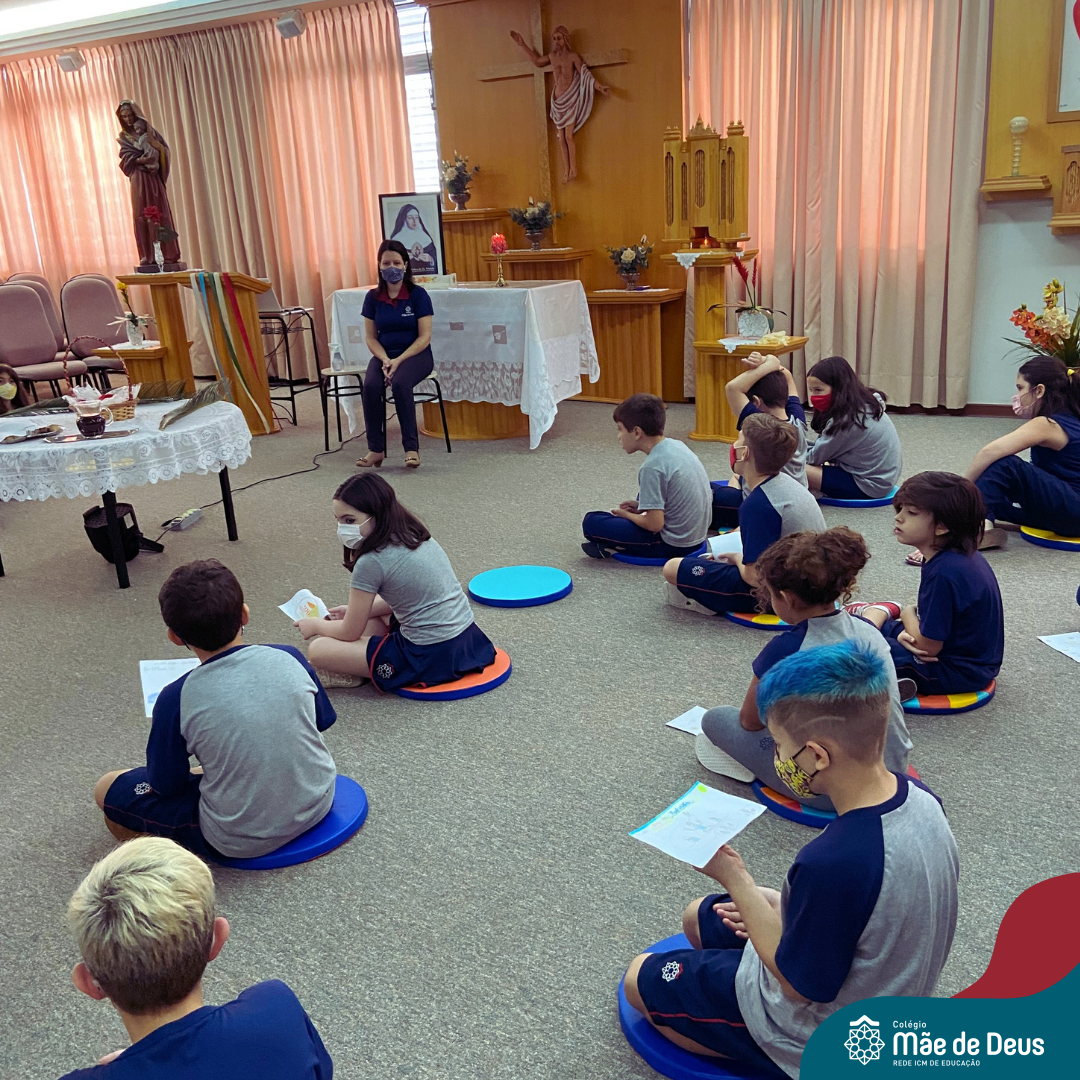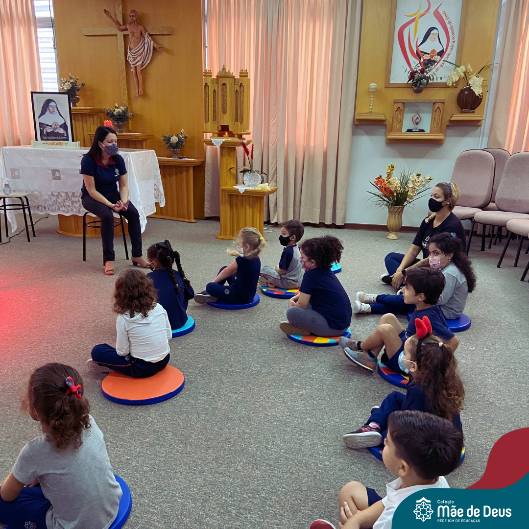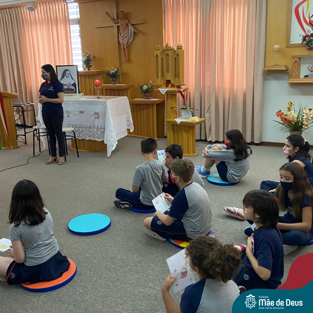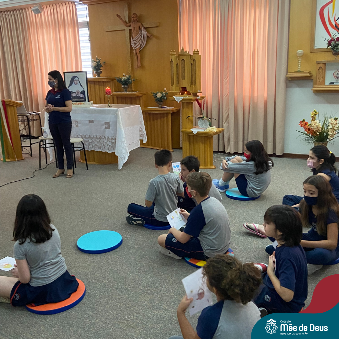 As turmas da Educação Infantil e dos Anos Iniciais do Ensino Fundamental participaram, na capela do colégio, do cultivo mensal, celebrando a preparação para a Páscoa. As crianças compreenderam melhor o sentido da morte e Ressurreição de Jesus e o significado do pão e do vinho partilhados entre os cristãos. A Páscoa é uma oportunidade de vivenciarmos gestos de partilha e solidariedade, na perspectiva de um mundo pleno de vida, esperança e paz.