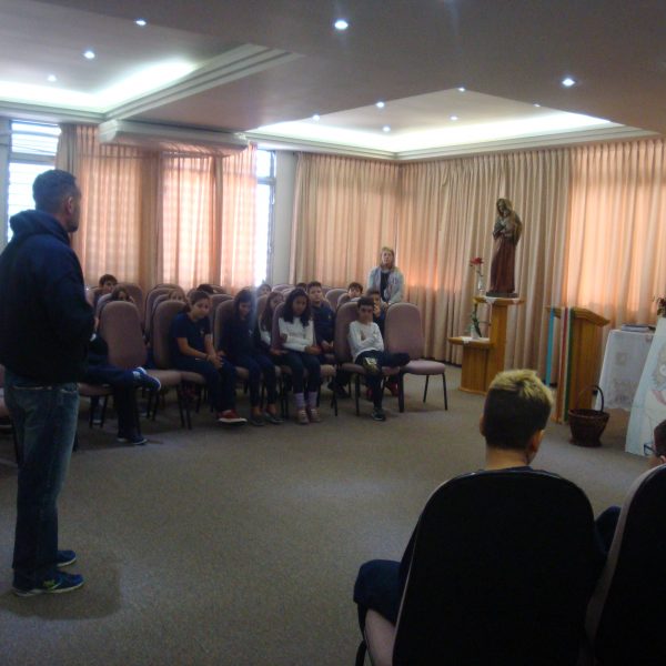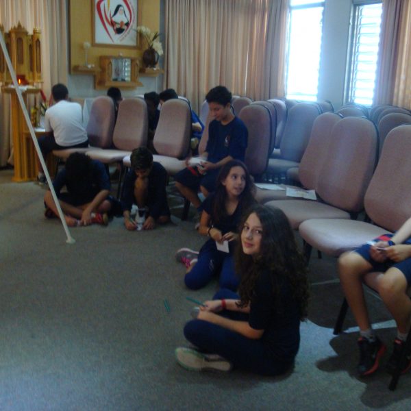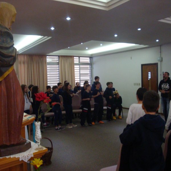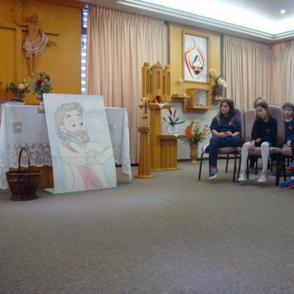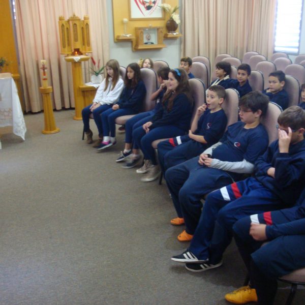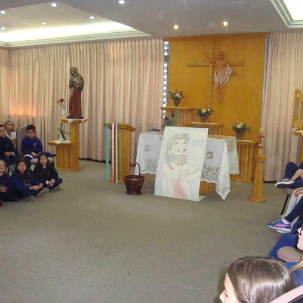 Foi com a certeza da presença do amigo Jesus que as crianças agradeceram por todas as alegrias presentes no dia a dia. O momento de celebração aconteceu na capela do colégio, ressaltando a presença acolhedora de Jesus e a importância de reconhecermos as alegrias que sustentam e encantam o próprio viver.
