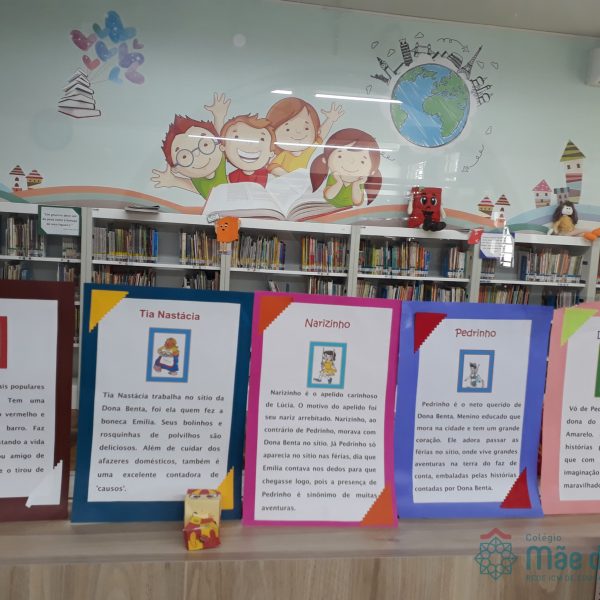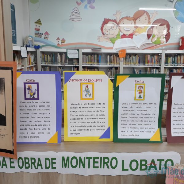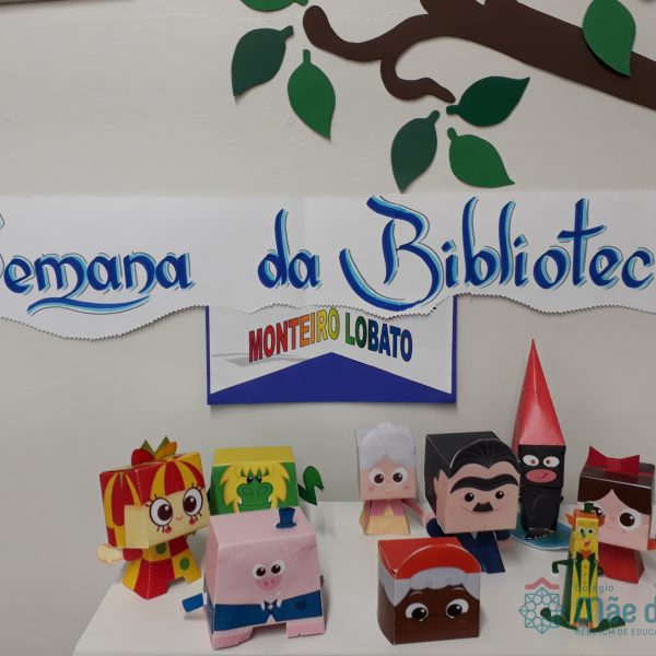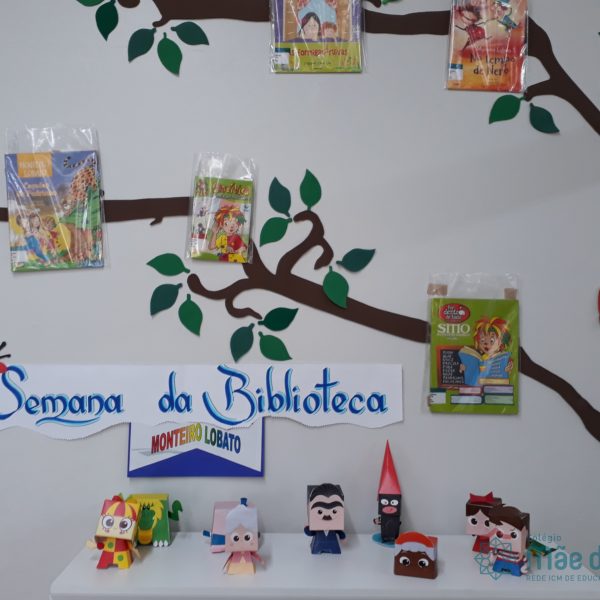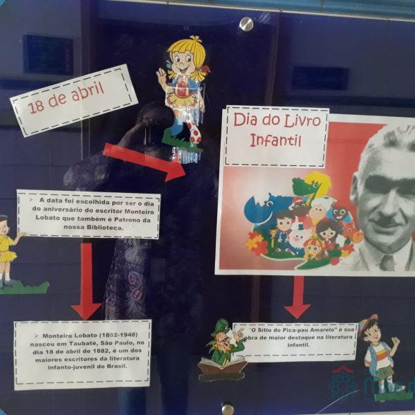 Durante o período de 08 a 18 de abril, preparamos mais uma homenagem a Monteiro Lobato, patrono da nossa Biblioteca. O ambiente está todo decorado com temas relacionados ao escritor e muitas de suas obras estão penduradas em uma linda árvore feita em E.V.A fixada na parede da Biblioteca. Há também exposição de frases escritas pelo autor, uma breve biografia, diferentes fontes de leitura, música, teatro de fantoches e personagens do Sítio do Pica-Pau Amarelo confeccionados em MINECRAFT.