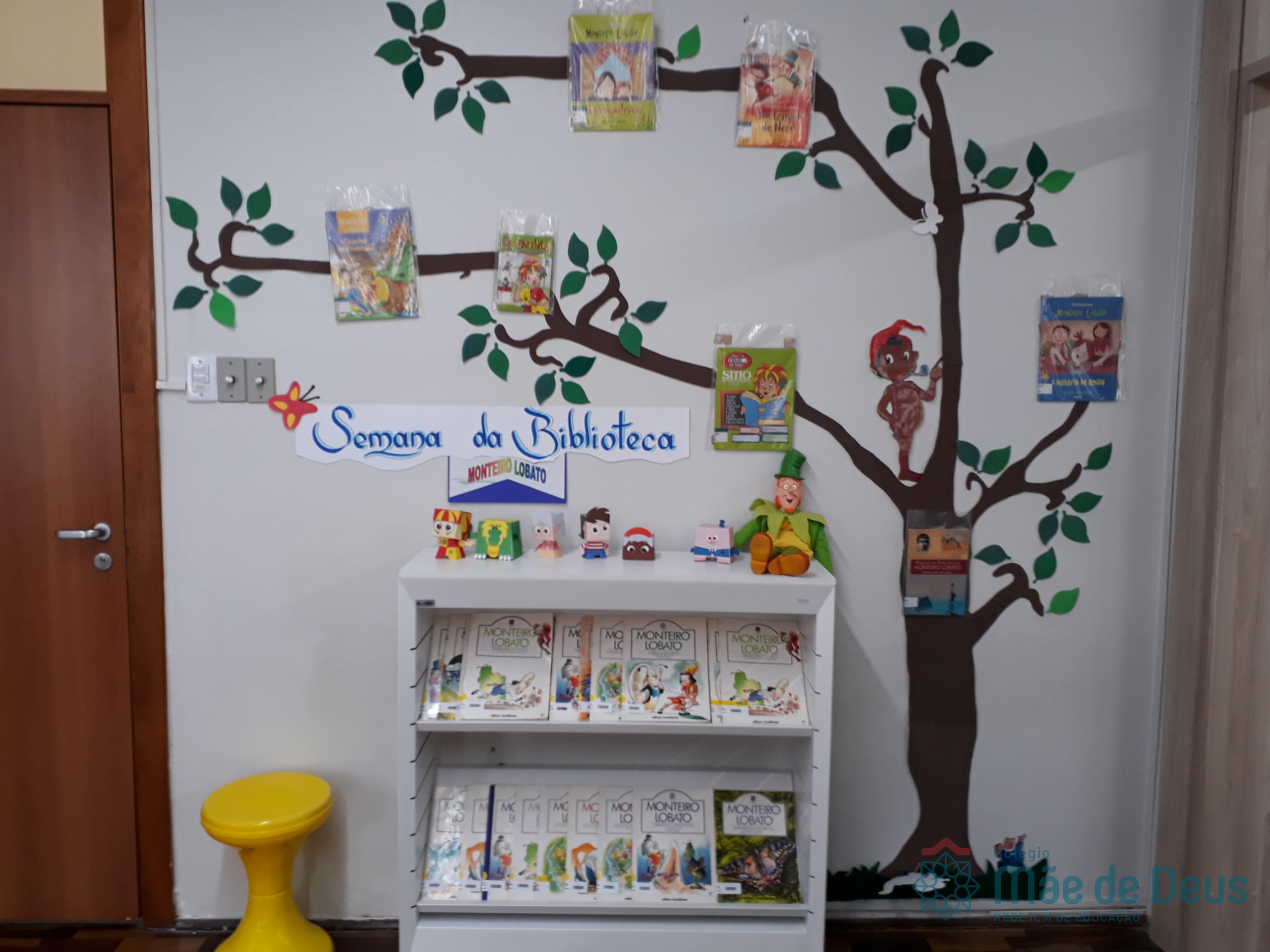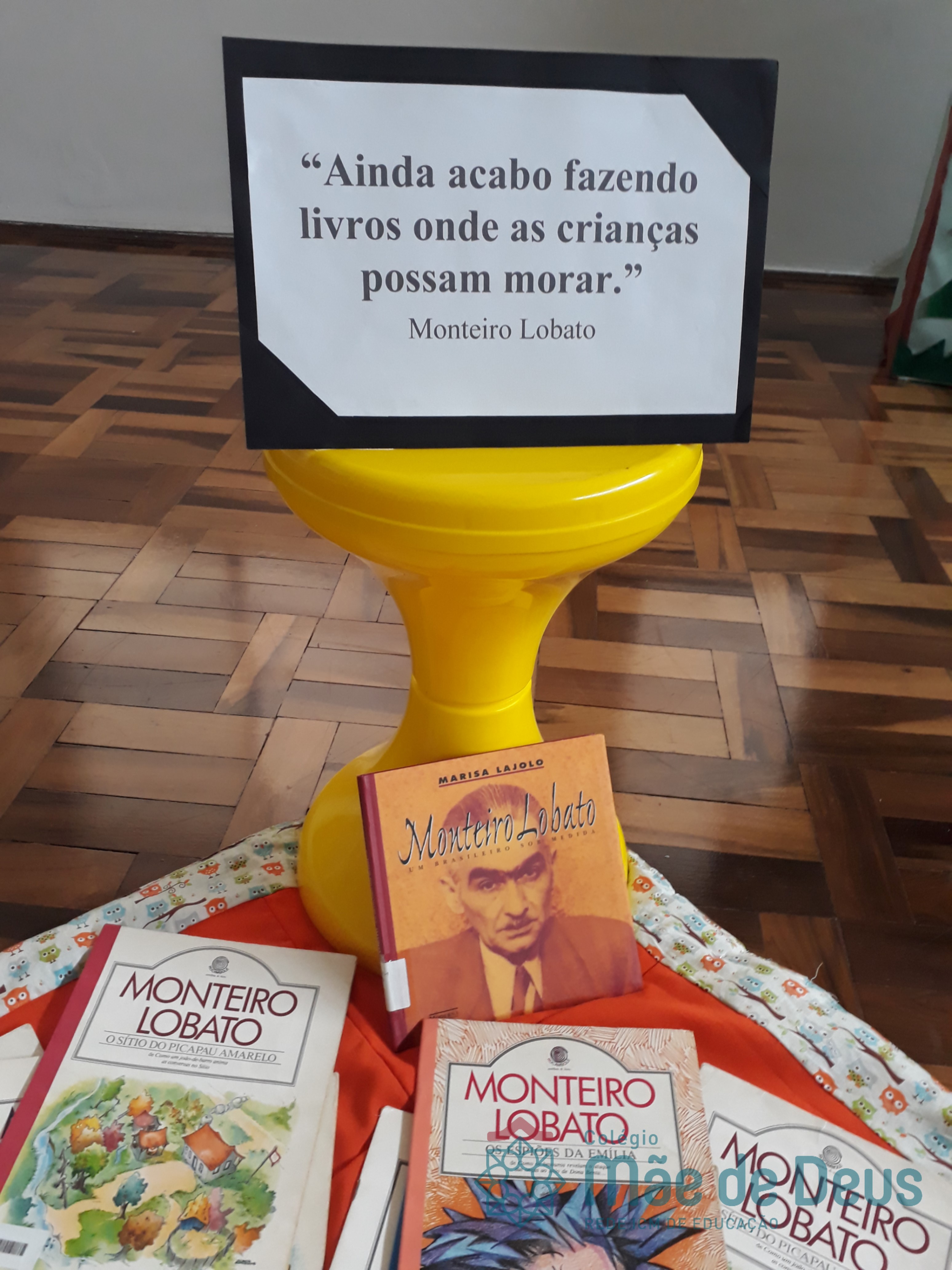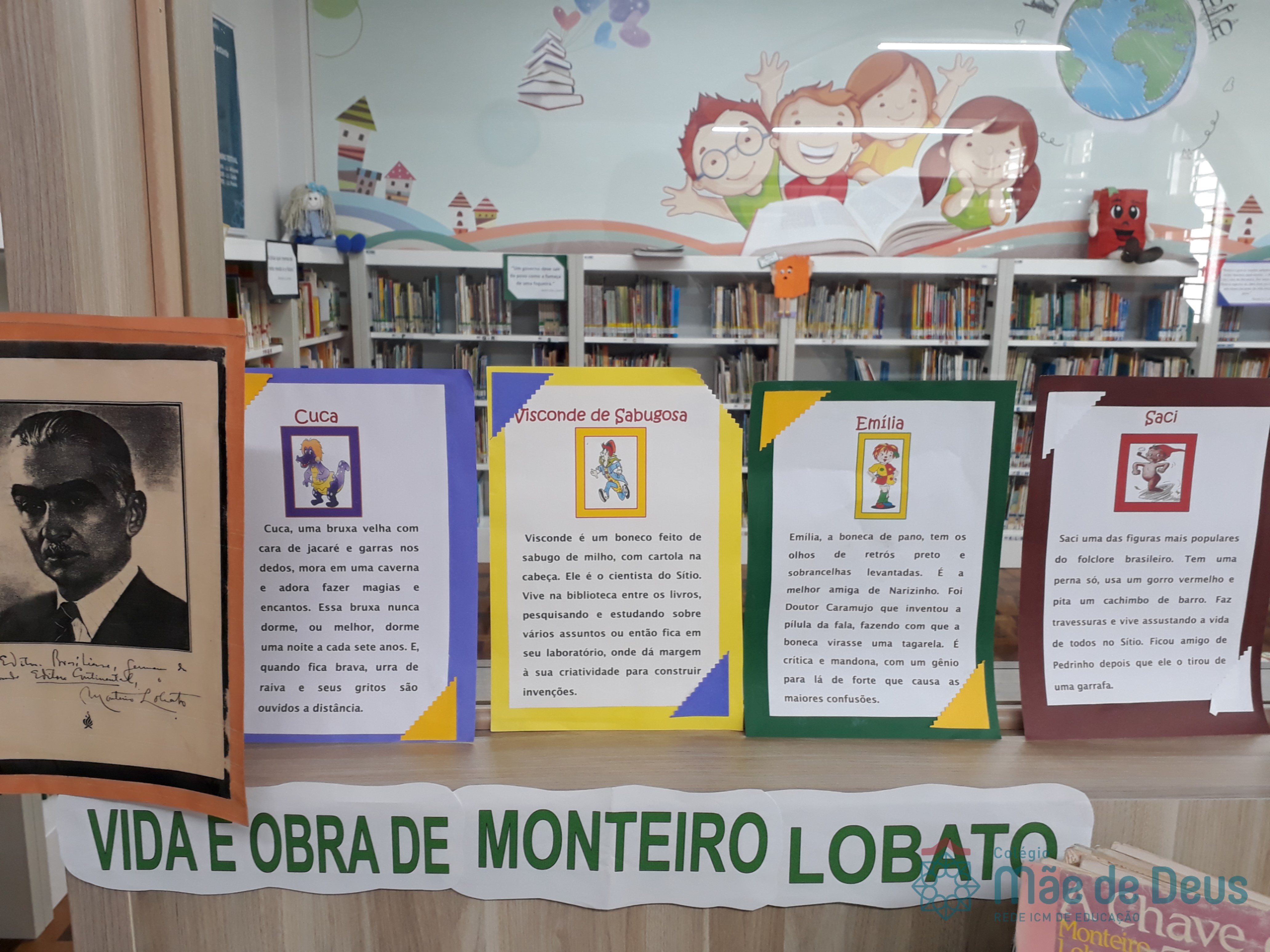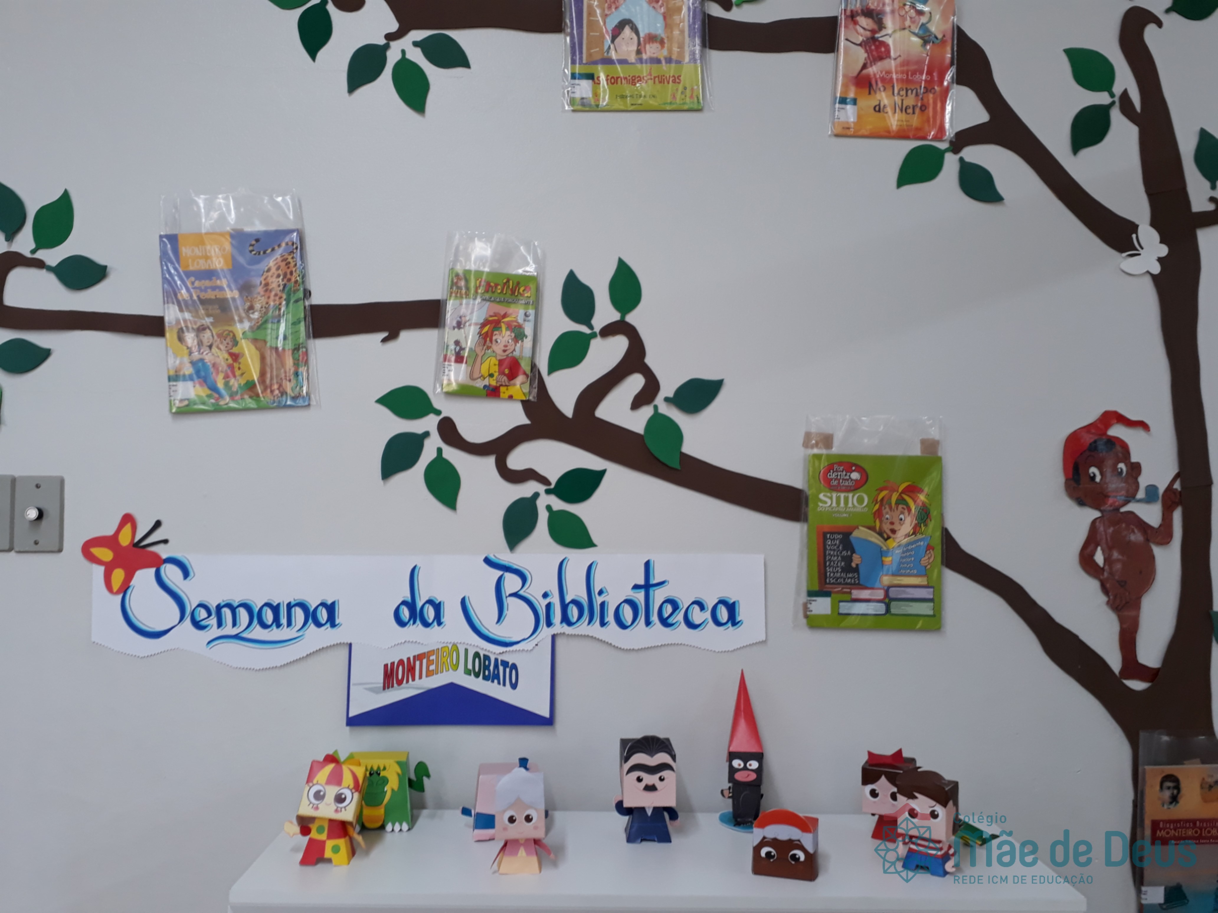 Durante o período de 08 a 18 de abril, preparamos mais uma homenagem a Monteiro Lobato, patrono da nossa Biblioteca. O ambiente está todo decorado com temas relacionados ao escritor e muitas de suas obras estão penduradas em uma linda árvore feita em E.V.A fixada na parede da Biblioteca. Há também exposição de frases escritas pelo autor, uma breve biografia, diferentes fontes de leitura, música, teatro de fantoches e personagens do Sítio do Pica-Pau Amarelo confeccionados em MINECRAFT.