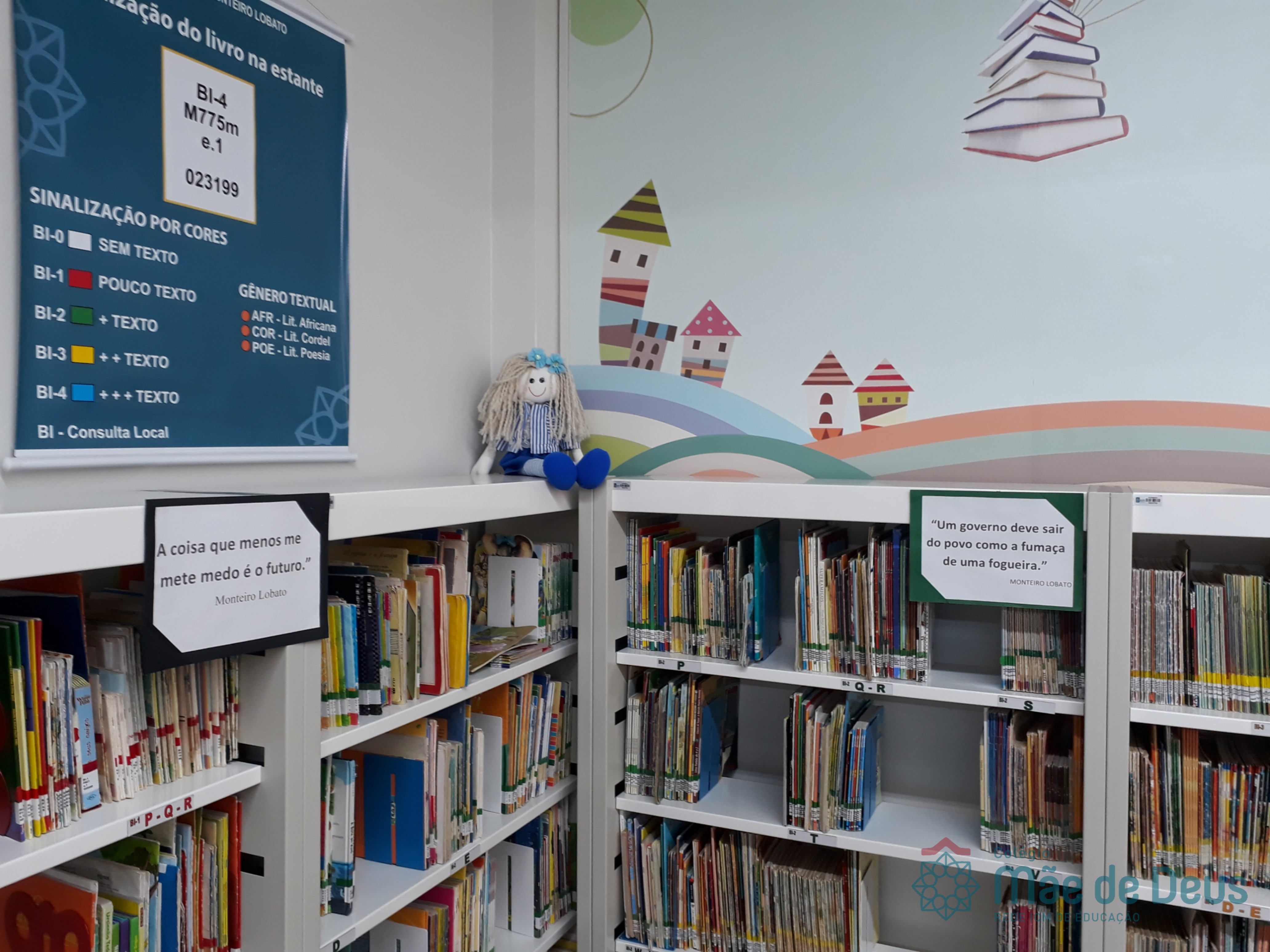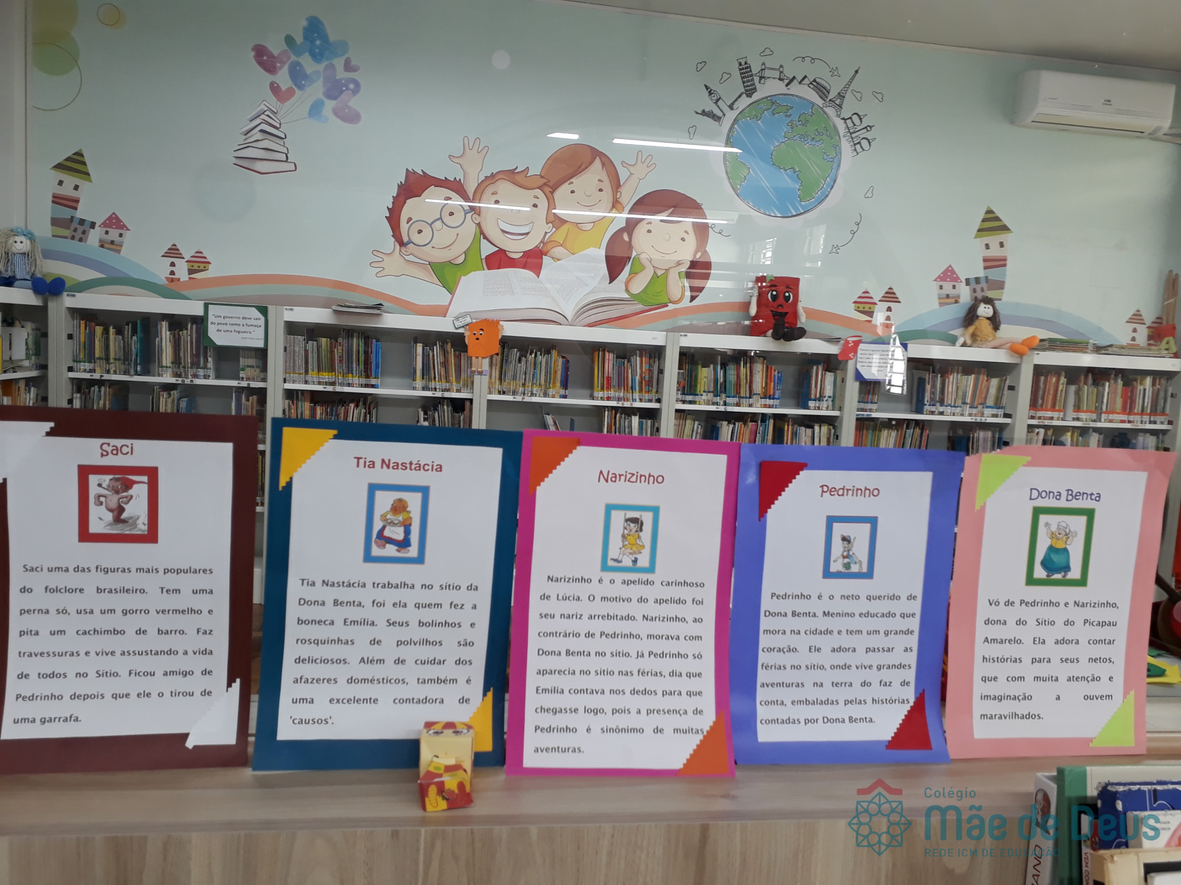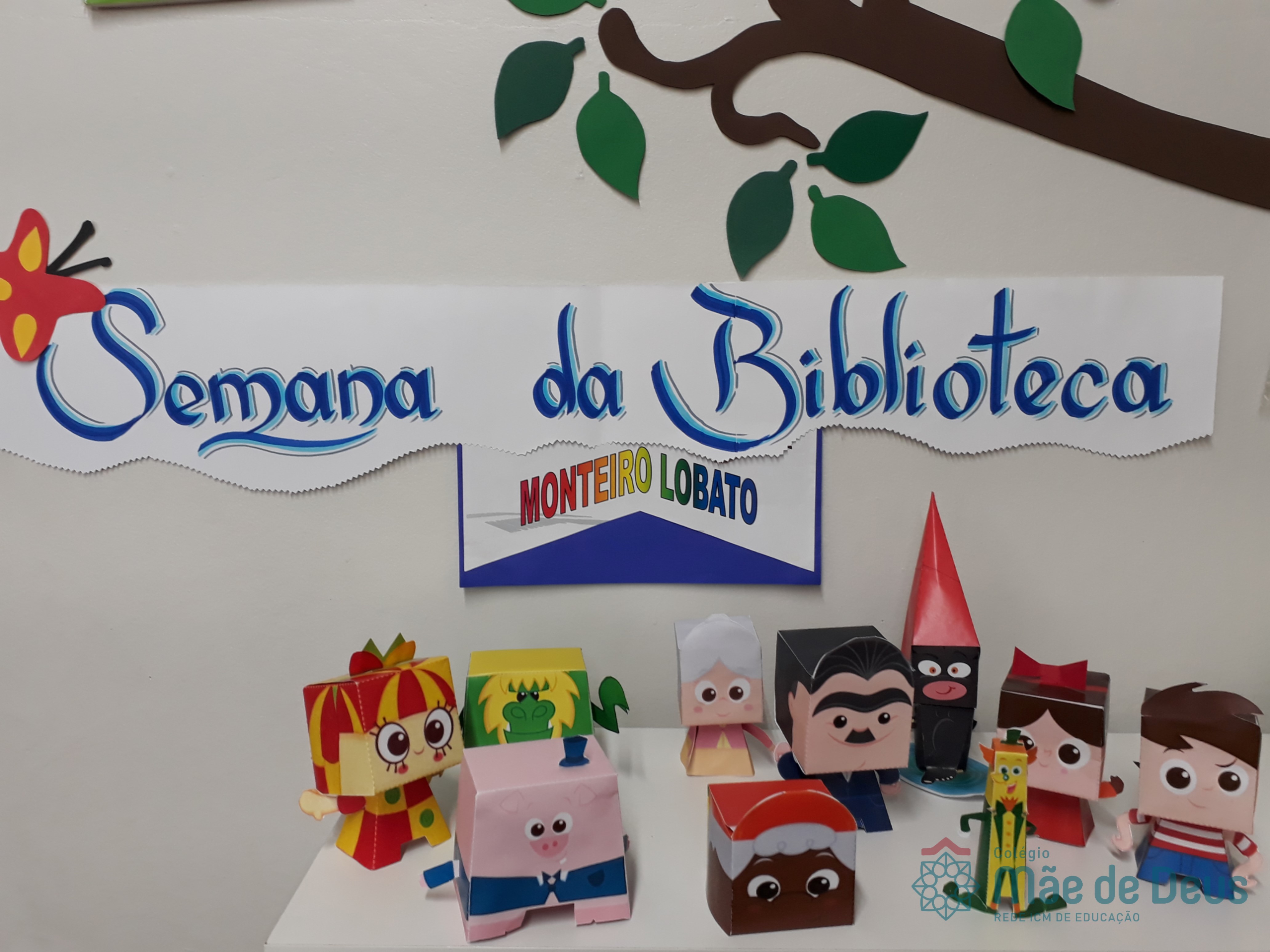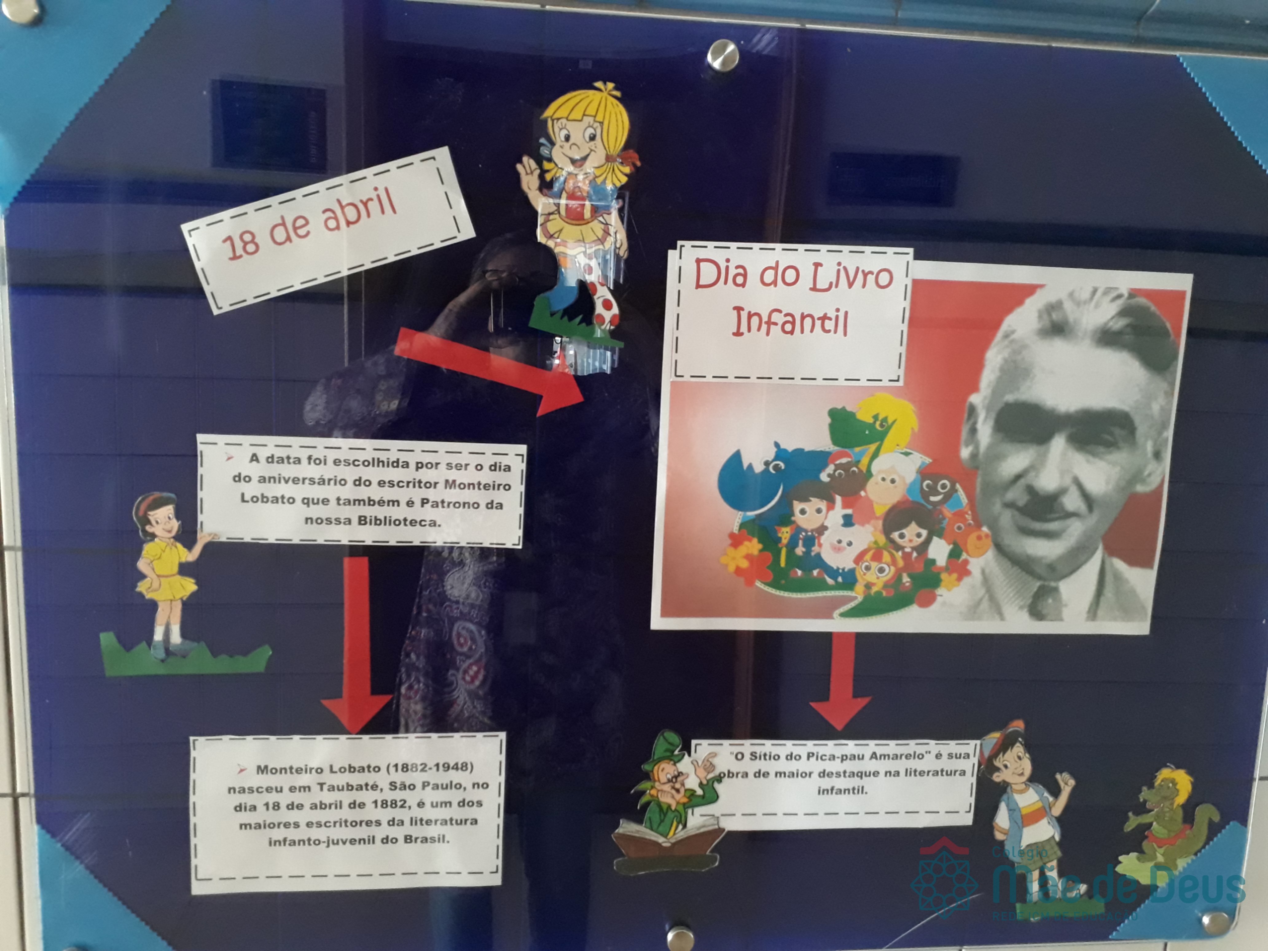 Durante o período de 08 a 18 de abril, preparamos mais uma homenagem a Monteiro Lobato, patrono da nossa Biblioteca. O ambiente está todo decorado com temas relacionados ao escritor e muitas de suas obras estão penduradas em uma linda árvore feita em E.V.A fixada na parede da Biblioteca. Há também exposição de frases escritas pelo autor, uma breve biografia, diferentes fontes de leitura, música, teatro de fantoches e personagens do Sítio do Pica-Pau Amarelo confeccionados em MINECRAFT.