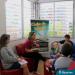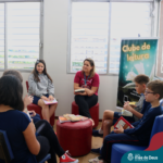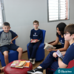 Os encontros do Clubinho acontecem uma vez por semana na biblioteca do Colégio. Durante o recreio, os alunos inscritos no projeto, participam de uma roda de conversa, momento em que aproveitam para compartilhar suas leituras e também indicar aos colegas.