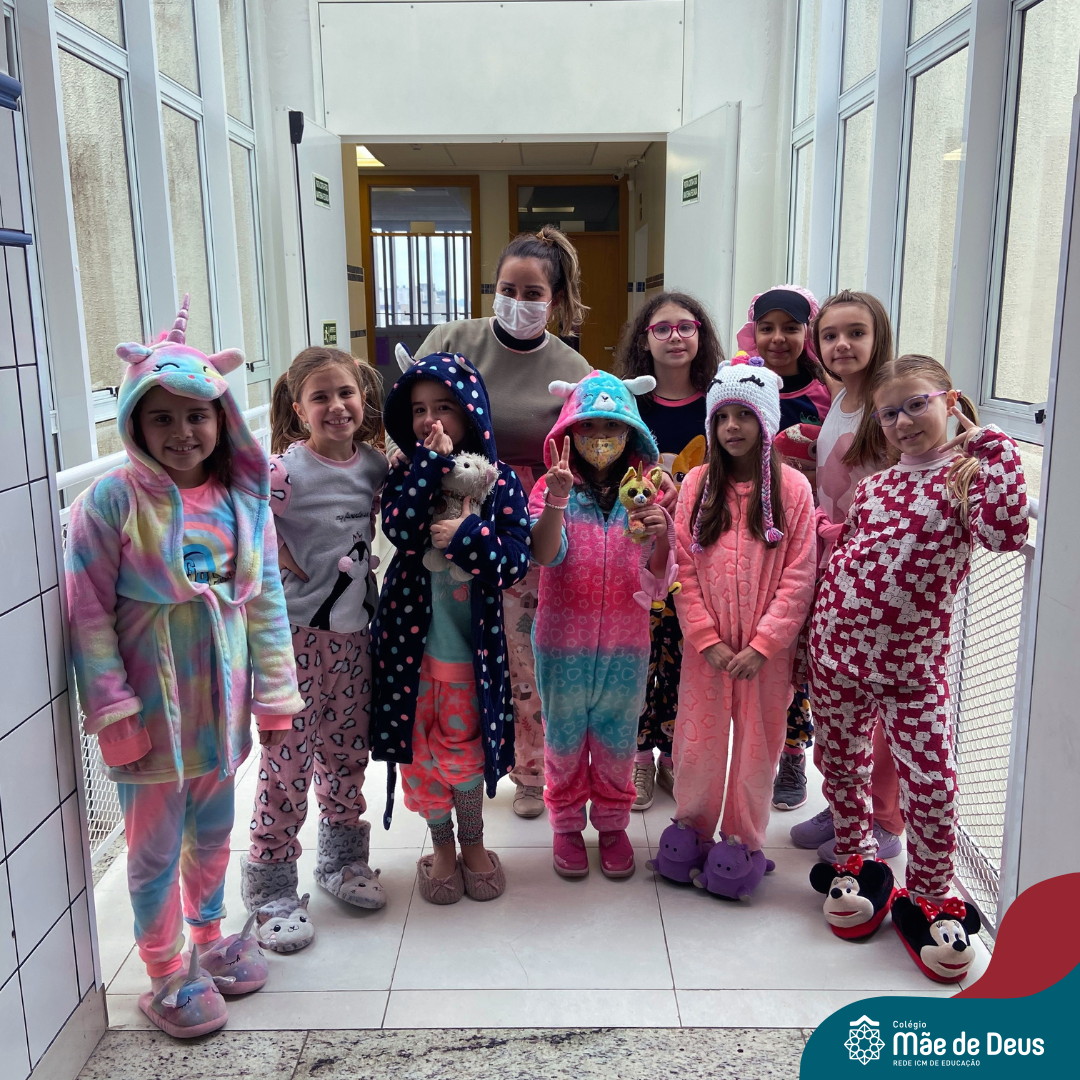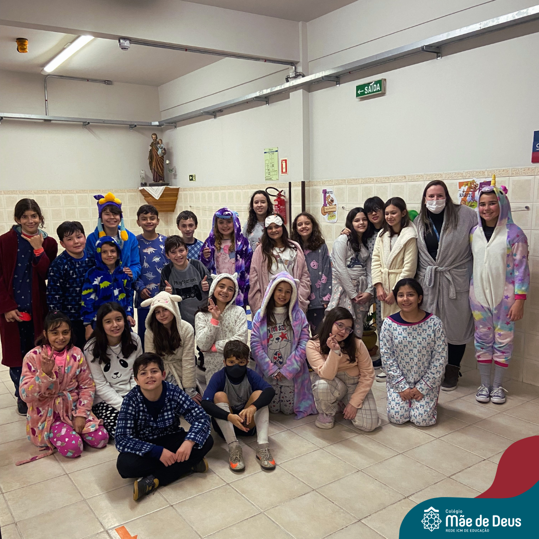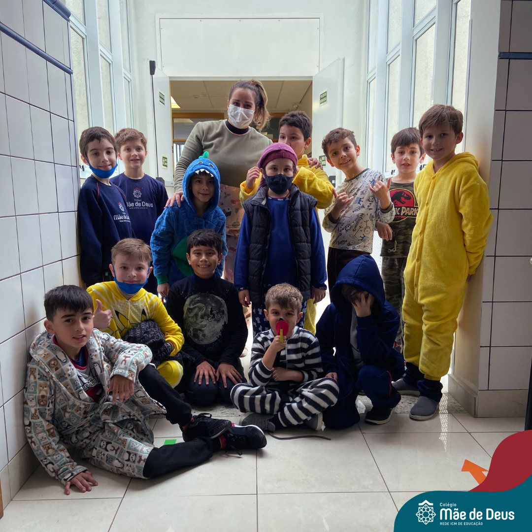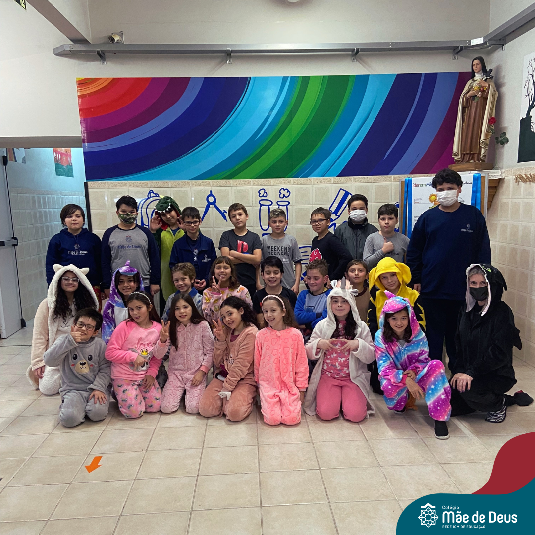 Os alunos das turmas do 3º, 4º e 5º Ano do Ensino Fundamental, aproveitaram o último dia de aula antes do recesso escolar, em junho, para vir ao Colégio com os seus pijamas favoritos e confraternizar com os colegas.