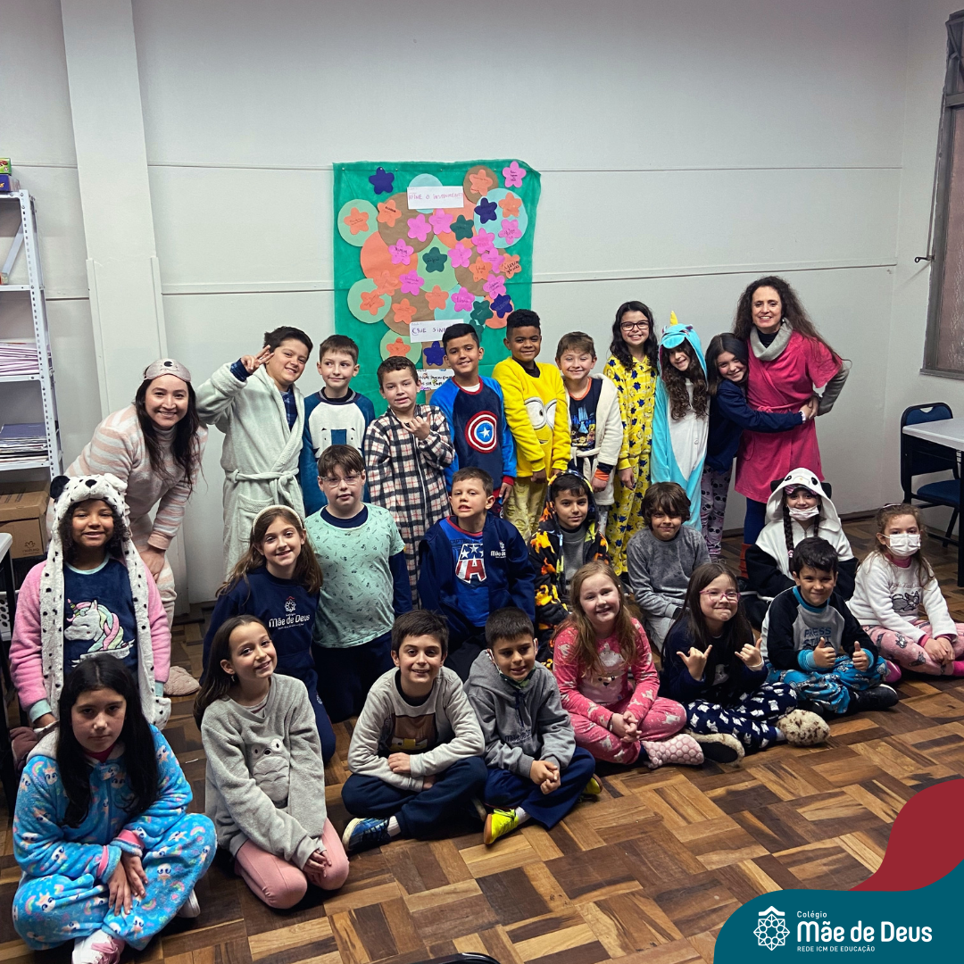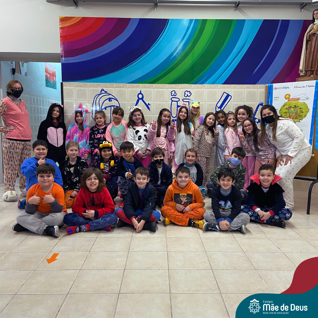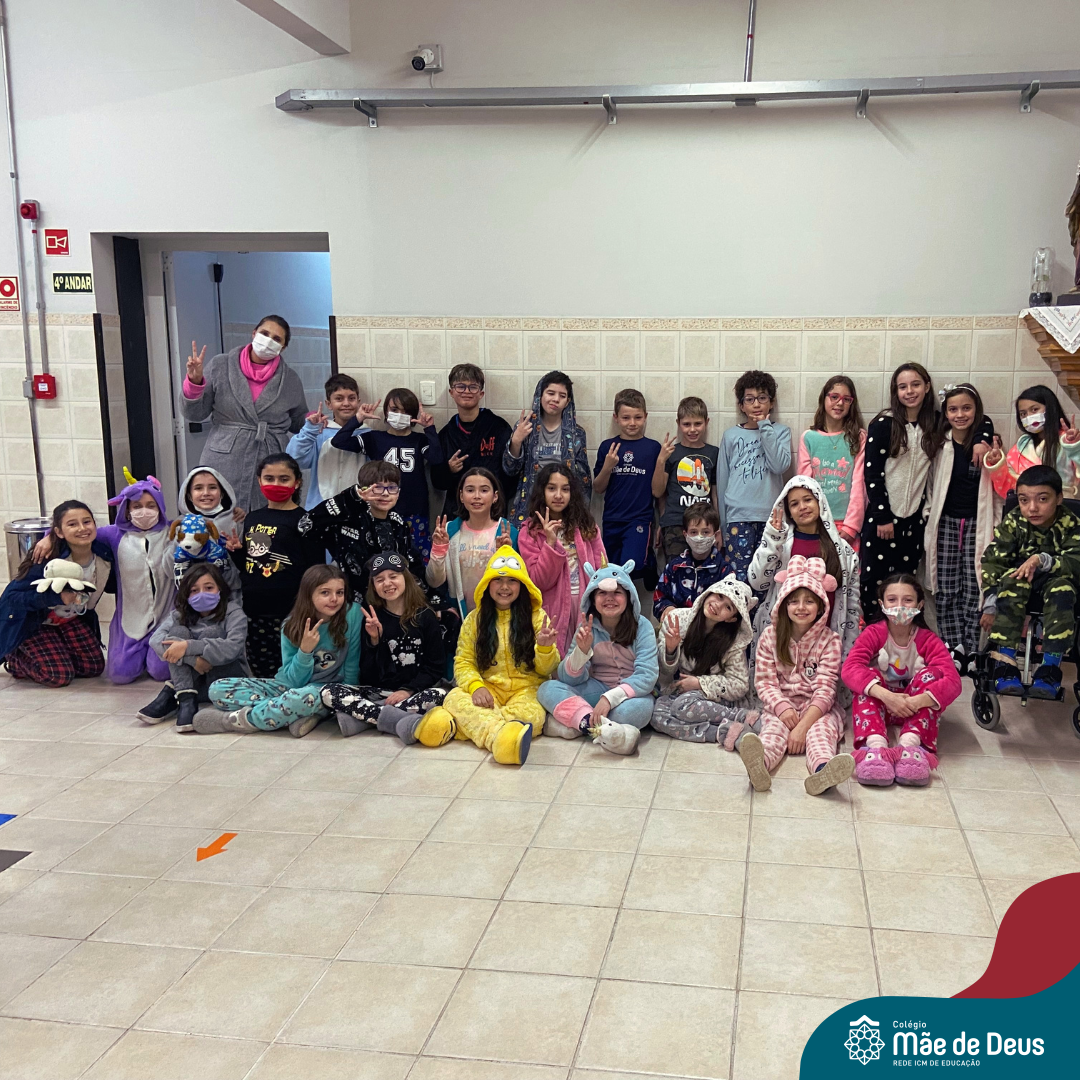 Os alunos das turmas do 3º, 4º e 5º Ano do Ensino Fundamental, aproveitaram o último dia de aula antes do recesso escolar, em junho, para vir ao Colégio com os seus pijamas favoritos e confraternizar com os colegas.