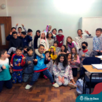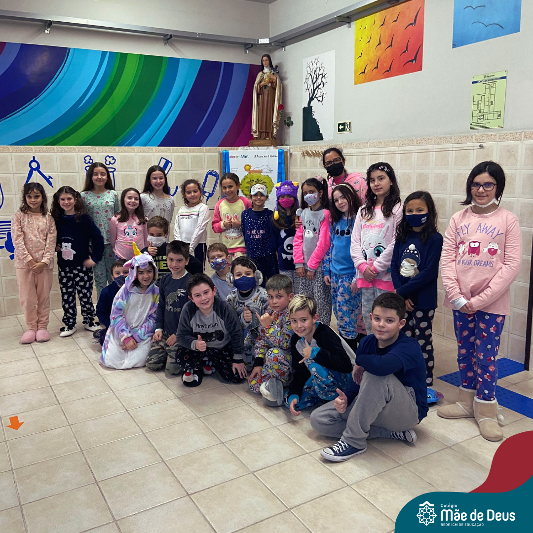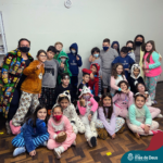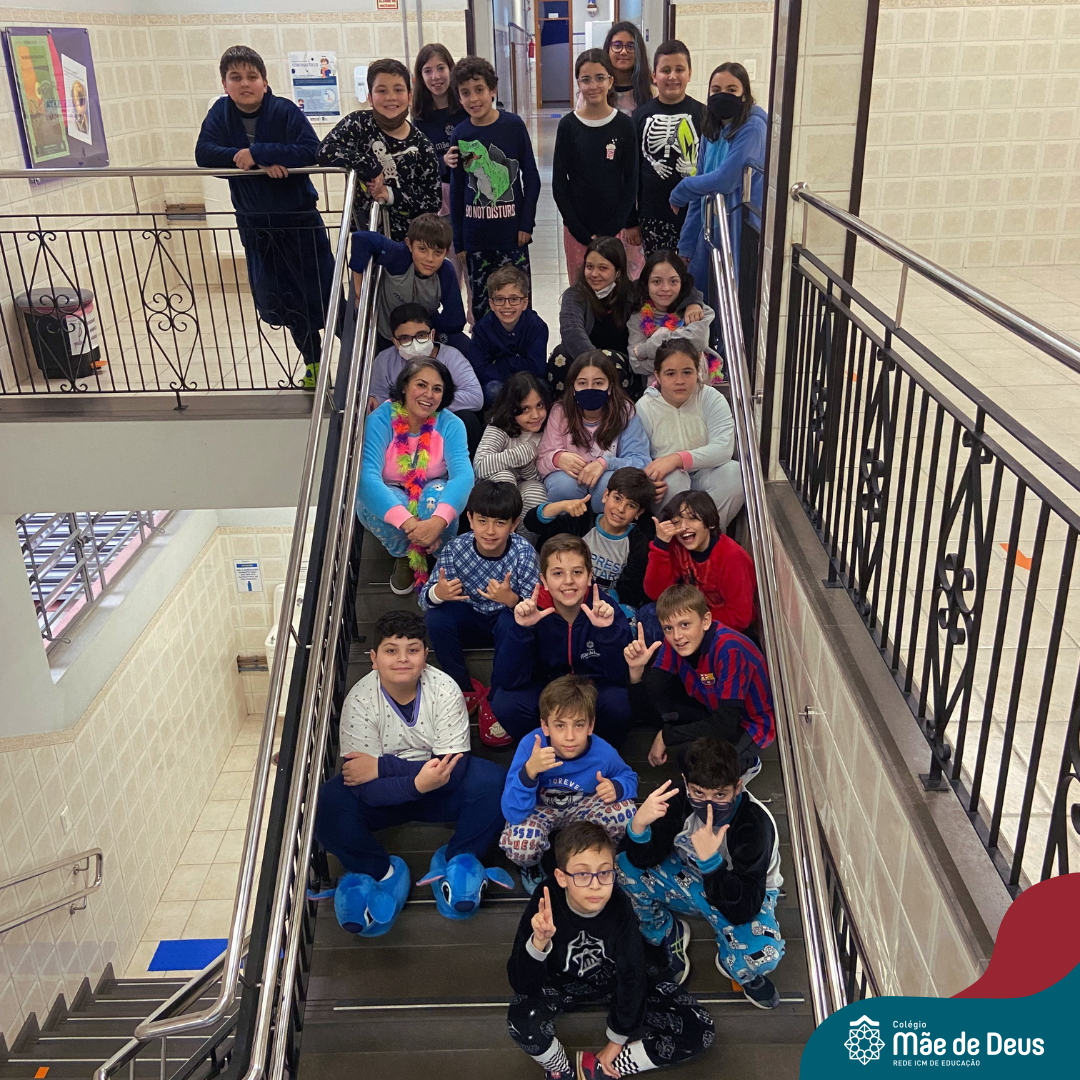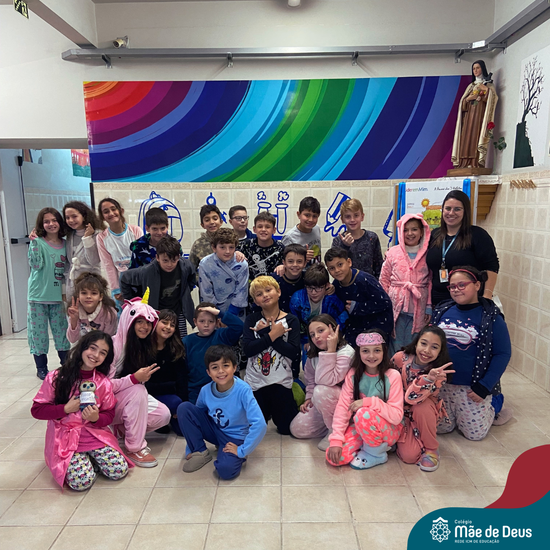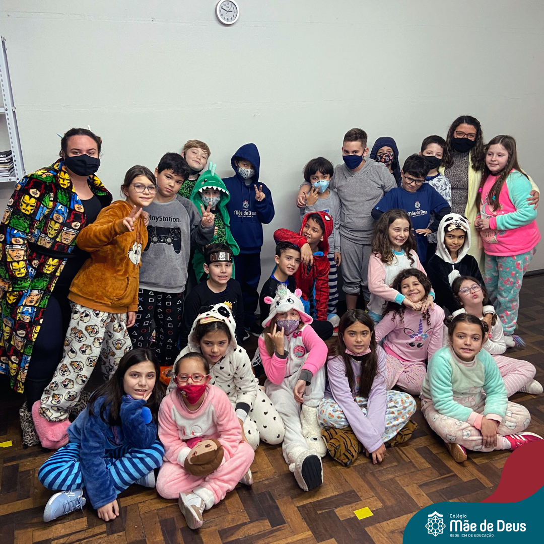 Os alunos das turmas do 3º, 4º e 5º Ano do Ensino Fundamental, aproveitaram o último dia de aula antes do recesso escolar, em junho, para vir ao Colégio com os seus pijamas favoritos e confraternizar com os colegas.