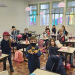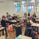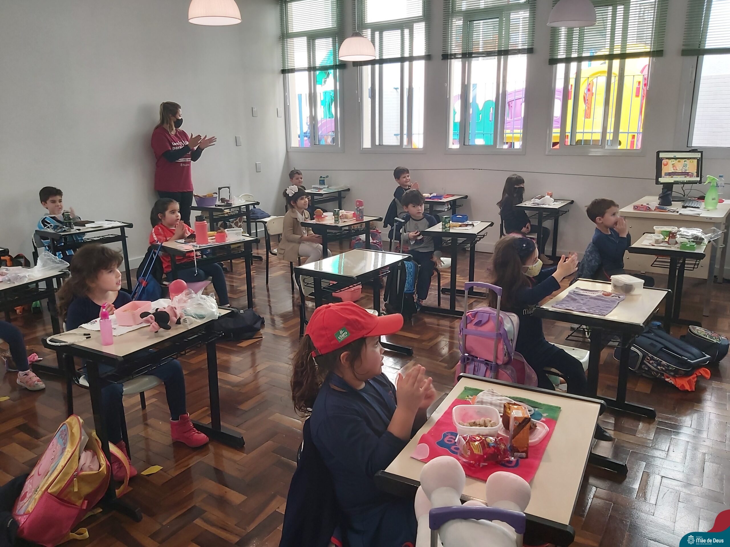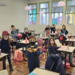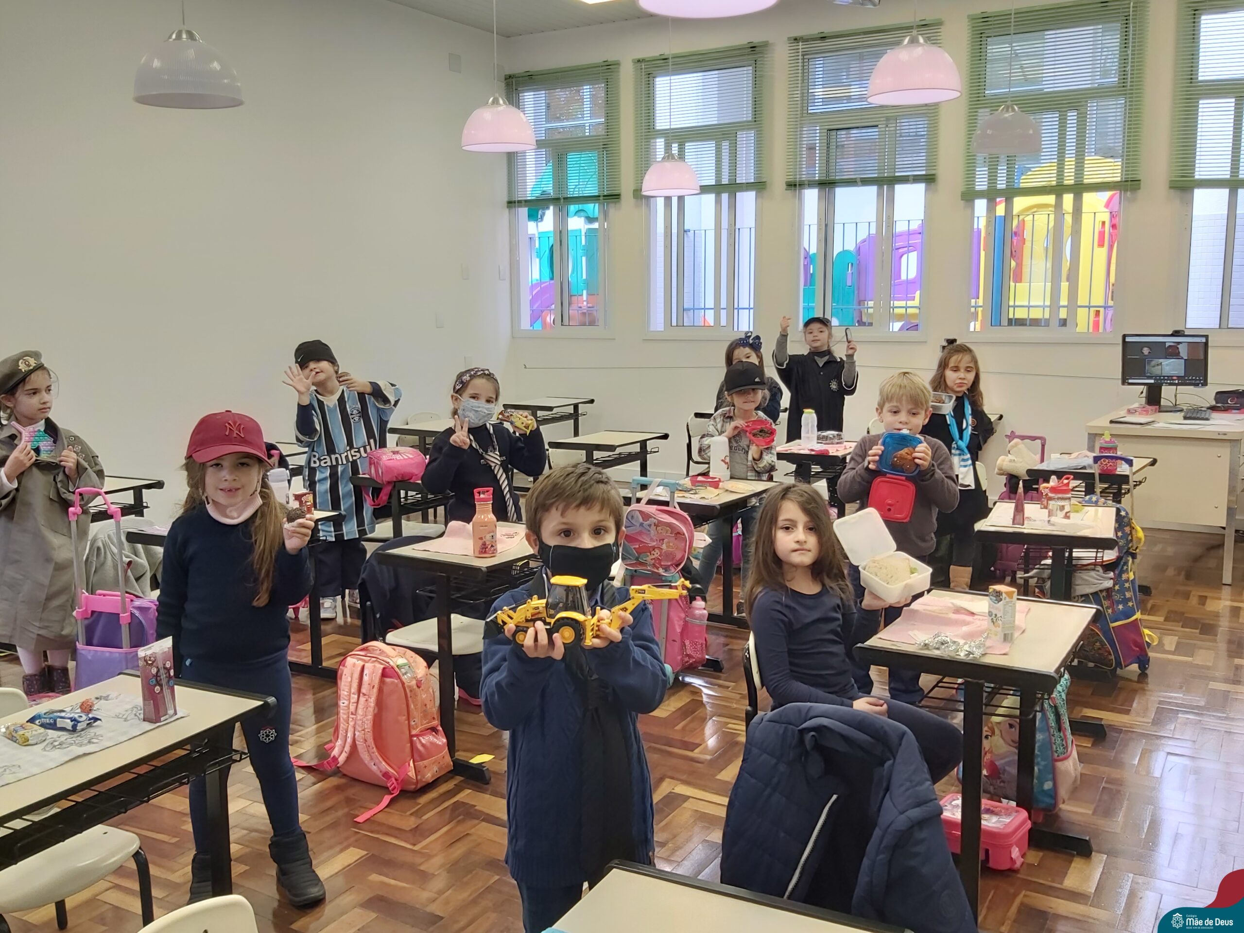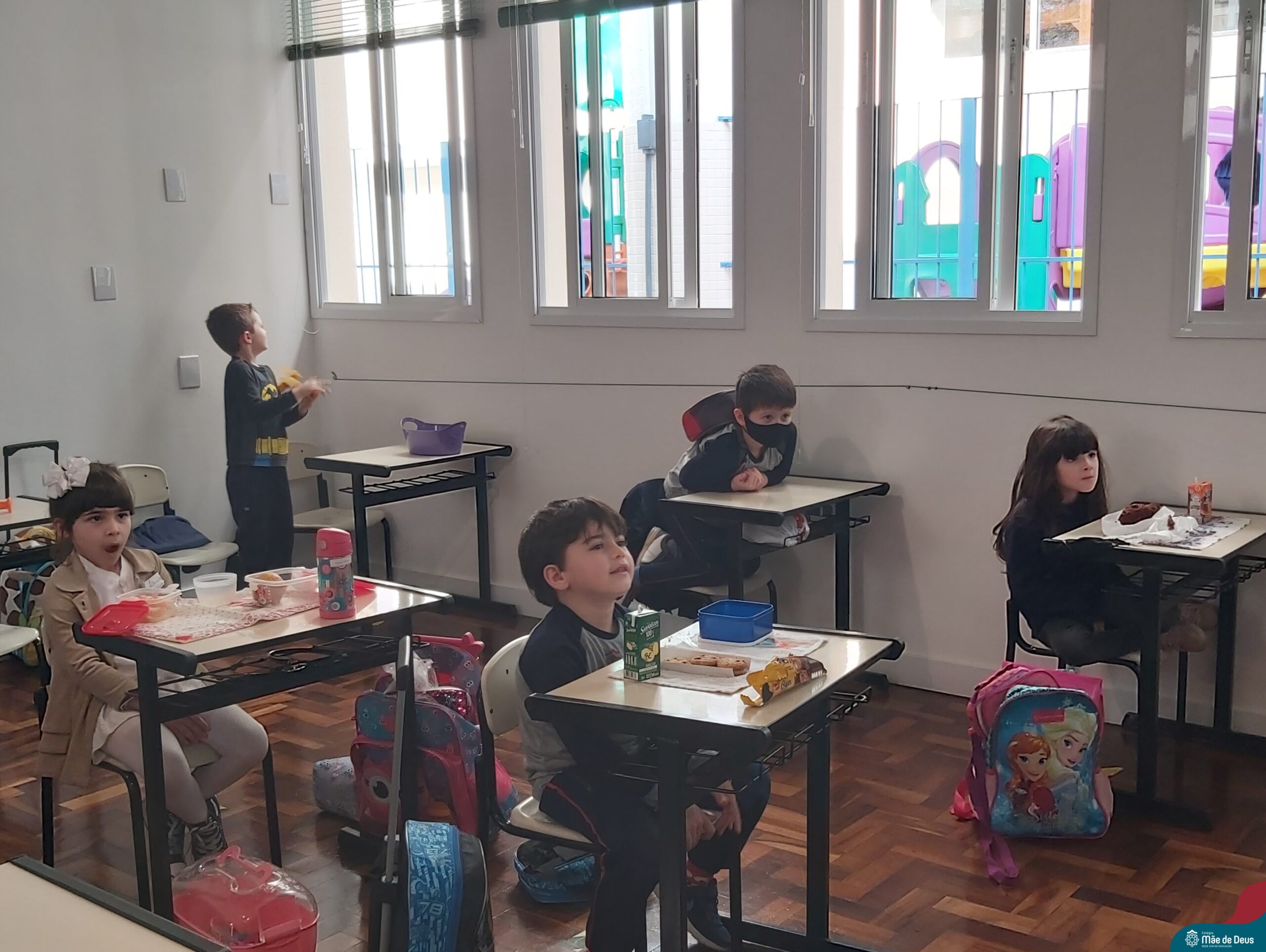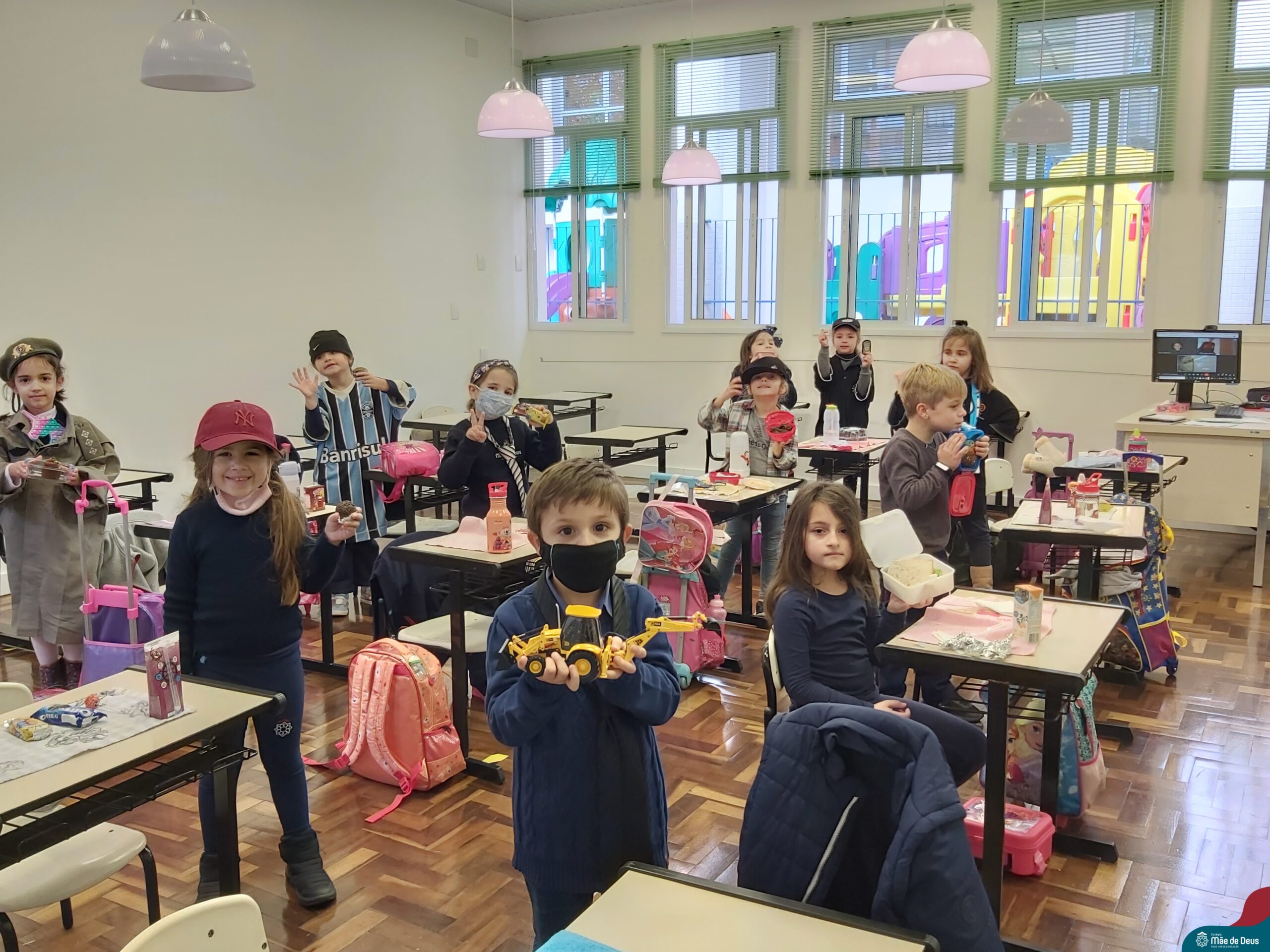 As turmas do Pré 2A e 2B da Educação Infantil, encerraram a semana dos pais comemorando essa data com um lanche especial, cantando parabéns e caracterizados de Papai!