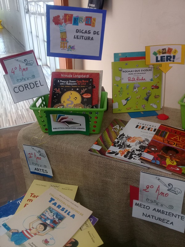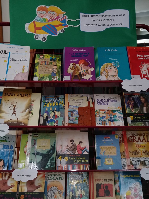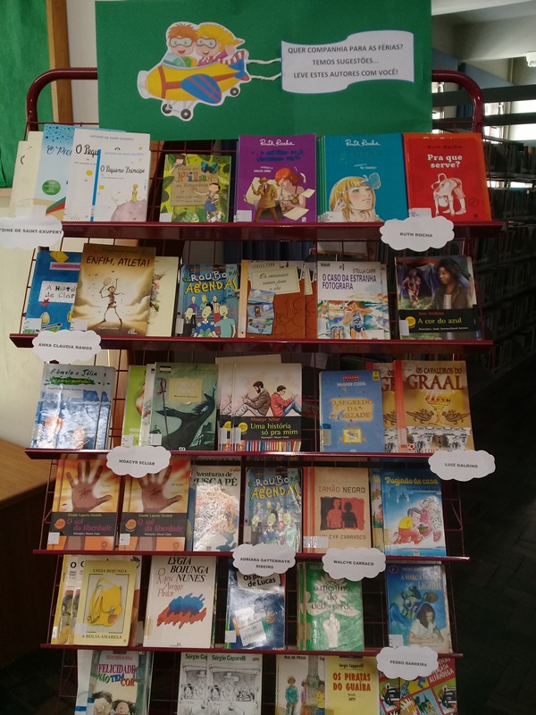A biblioteca selecionou algumas literaturas para que os alunos possam levar para ler em casa nas férias de julho. Os livros escolhidos abordam assuntos diversos, muitos dentro da temática estudada em sala de aula e outros de autores importantes da literatura brasileira.
