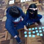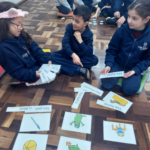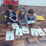 Os alunos do 1º Ano do Ensino Fundamental realizaram, com a teacher do bilíngue, uma dinâmica de letramento, a partir da metodologia da Rotação por Estação.